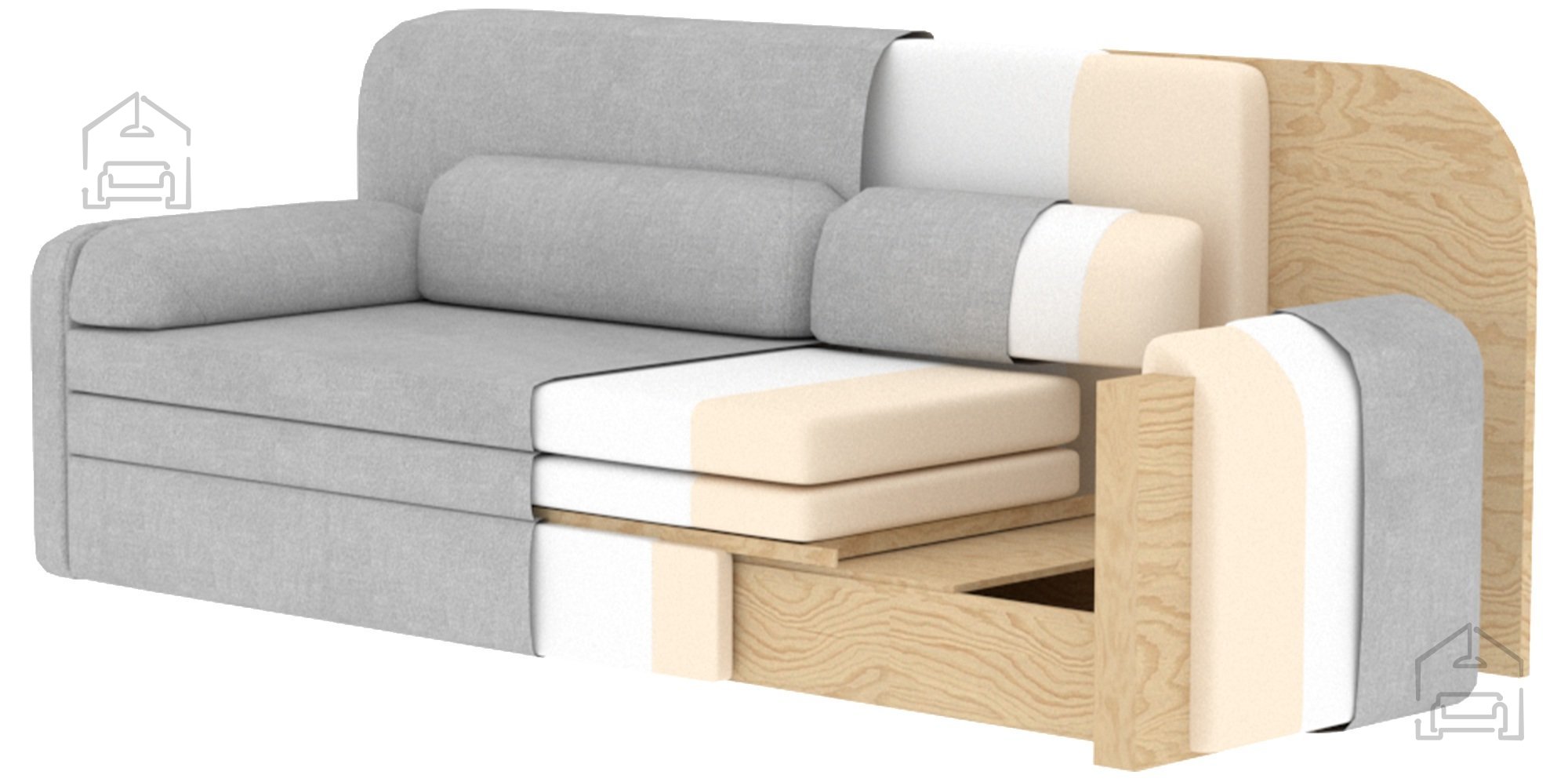 Posebnost zasnove je v tem, da je vsak detajl – od šivov do proporcev – premišljen tako, da zagotavlja harmonijo med obliko in funkcijo. Leseni okvir iz borovine poskrbi za trdnost, hkrati pa ohranja naravno toplino materiala. Pena T2540 nudi mehko, a podporno strukturo, zato je trosed primeren tako za sproščeno sedenje kot tudi za vsakodnevno spanje.