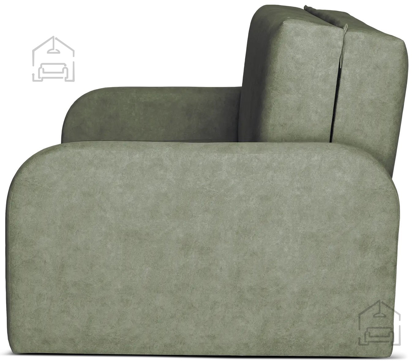Okvir kavča je izdelan iz lesa, kar zagotavlja stabilnost in dolgo življenjsko dobo. Model nima vzmetnega jedra in ni opremljen z latoflex letvenim dnom. Sedež in naslon sta zasnovana tako, da nudita ravno pravšnjo oporo za otroško uporabo ali občasno spanje odraslih. Tkanina, prikazana na sliki, je Quintana 05, prijeten in trpežen material, ki je primeren za vsakodnevno uporabo ter enostaven za vzdrževanje.