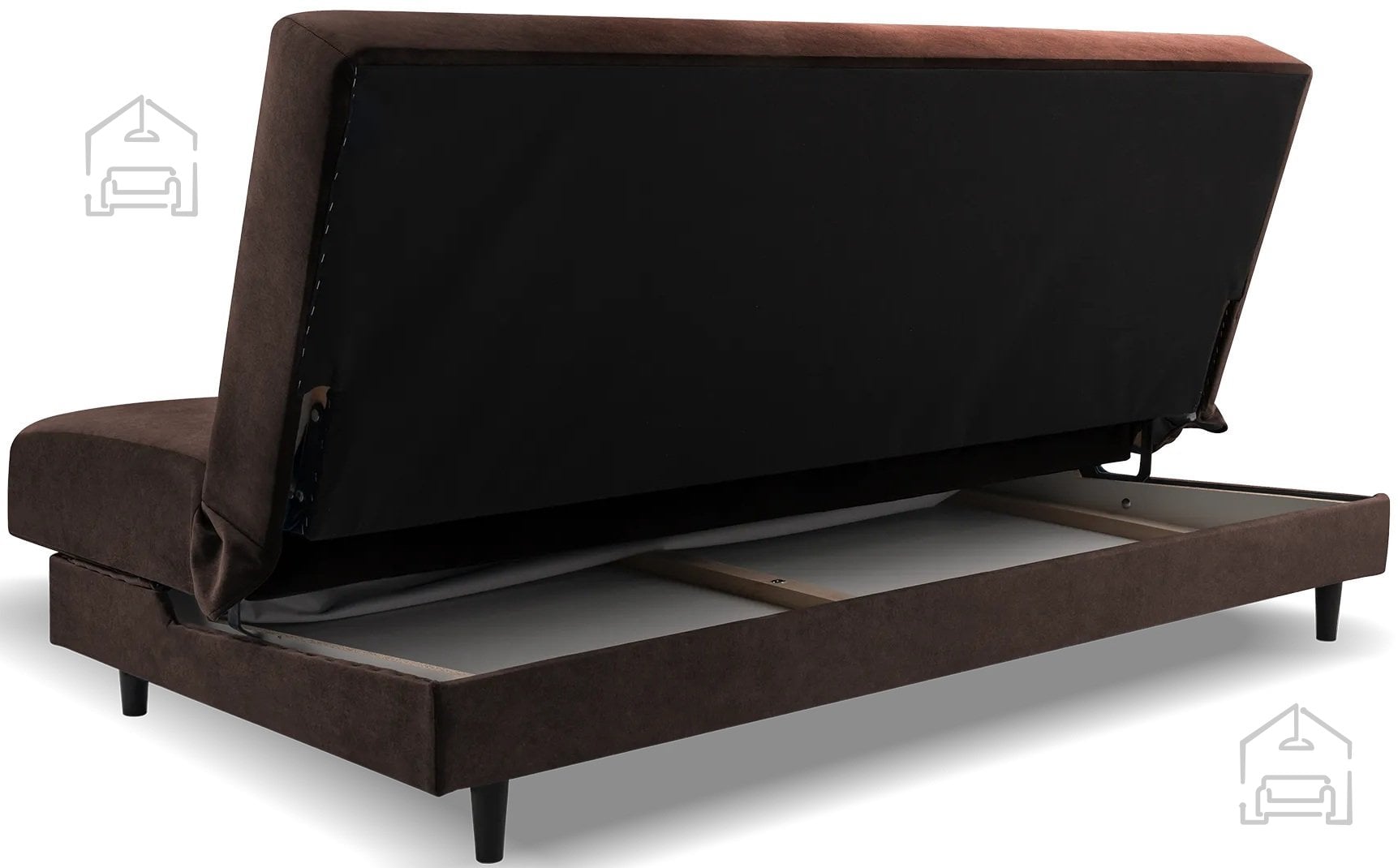 Okvir troseda Ira je izdelan iz lesa, kar zagotavlja stabilnost in dolgo življenjsko dobo. V notranjosti ni vzmetnega jedra niti latoflex podlage, zato je sedenje nekoliko bolj čvrsto, kar je pogosto zaželeno v otroških ali mladinskih sobah. Trosed vključuje tudi priročen predal za posteljnino, ki omogoča shranjevanje odej, vzglavnikov ali sezonskih tekstilij in s tem prihrani dragocen prostor v omari.
