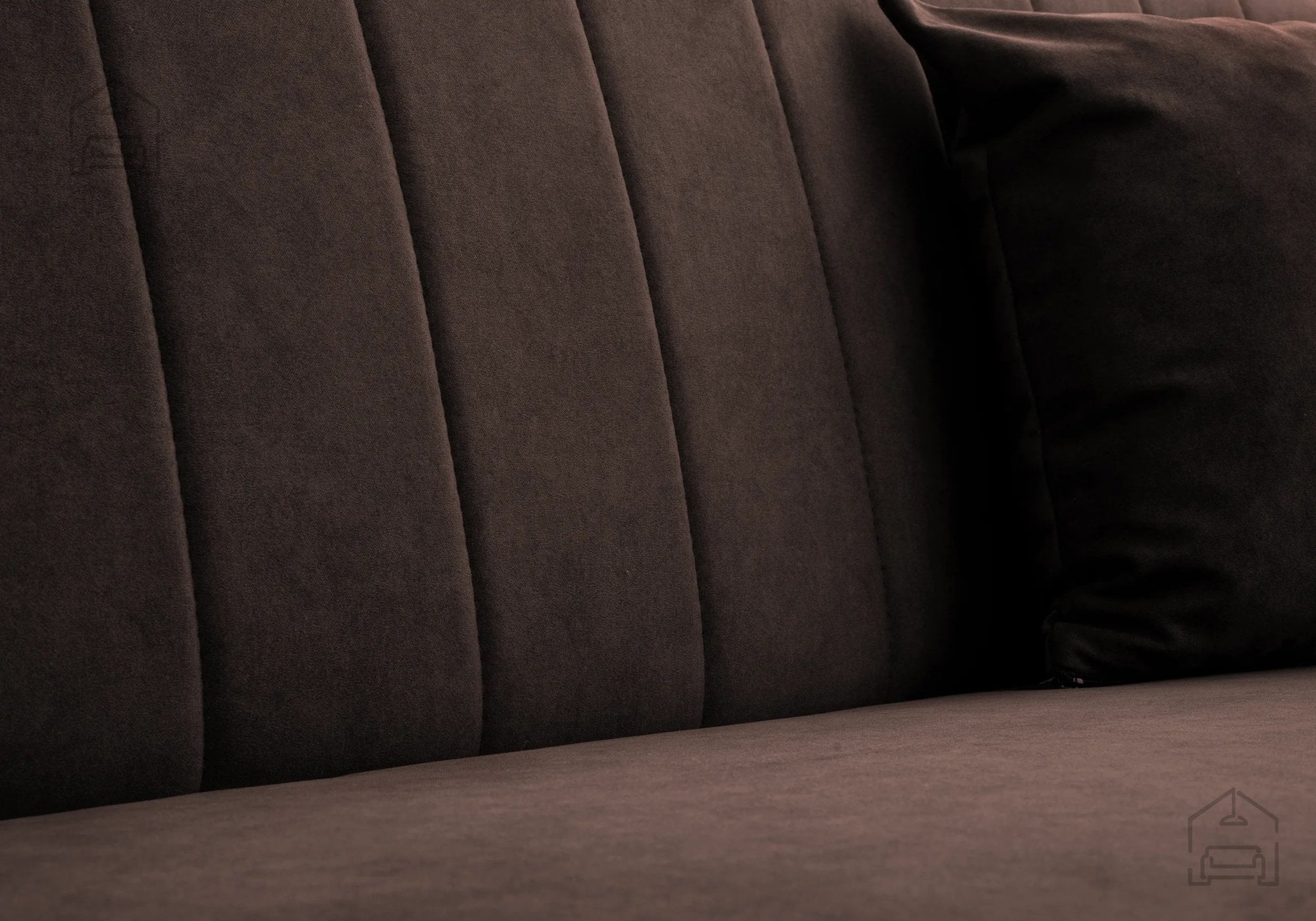 Na fotografiji je trosed oblečen v tkanino Queens 04, ki je znana po prijetni teksturi in enostavnem vzdrževanju. Zaradi kakovostnih materialov je prevleka odporna proti obrabi in primerna za vsakodnevno uporabo. Model je na voljo v več barvah, kar vam omogoča, da ga prilagodite obstoječemu pohištvu ali barvni paleti prostora.