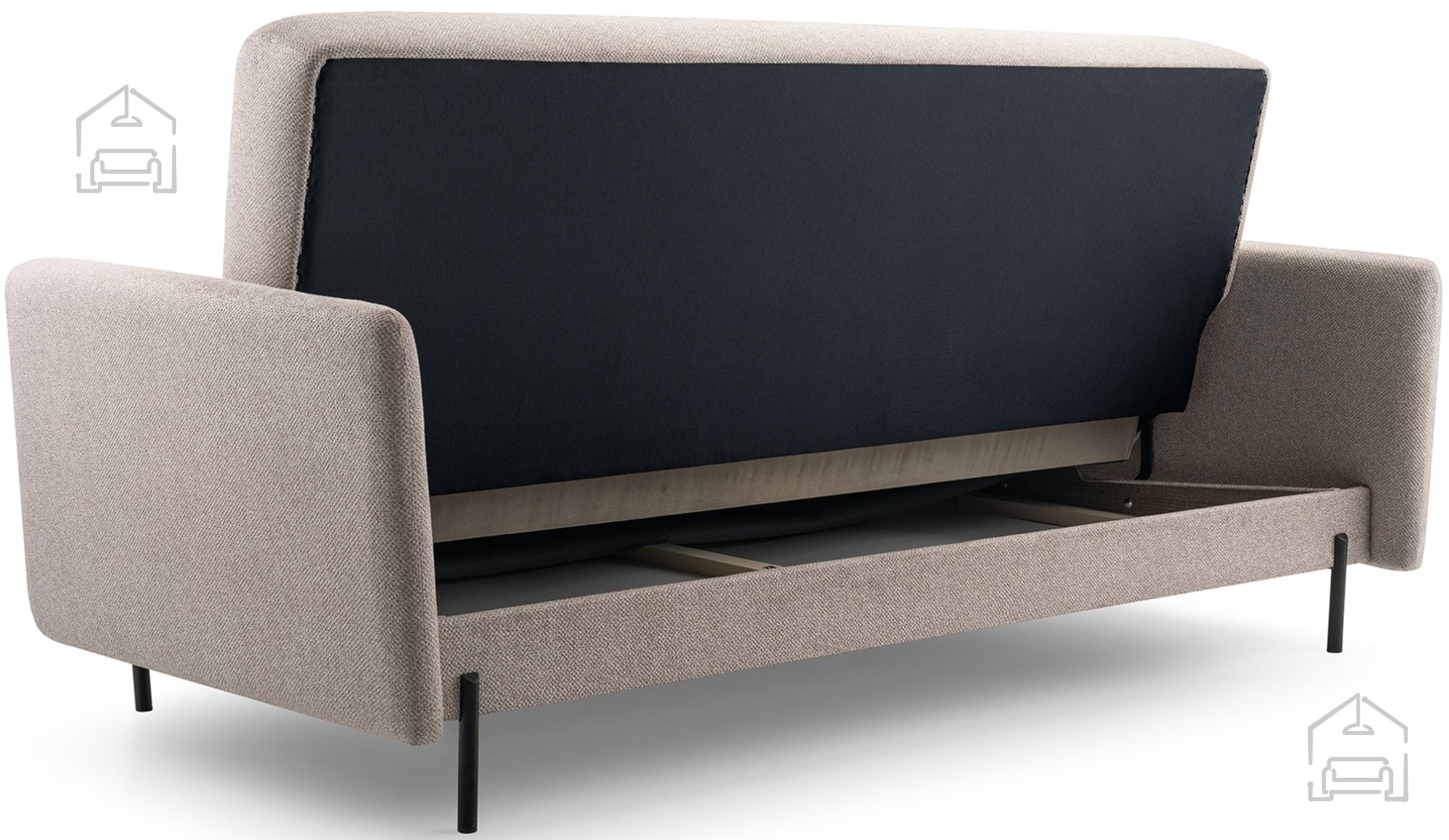 Vgrajen mehanizem klik-klak omogoča hitro in preprosto preoblikovanje troseda v posteljo. Sistem deluje z enostavnim dvigom in spustom naslonjala, kar pomeni, da ne potrebujete veliko moči ali dodatnega prostora za raztegovanje. Ta rešitev je idealna za vsakodnevno uporabo, saj zagotavlja hitro menjavo funkcije brez zapletenih postopkov.
