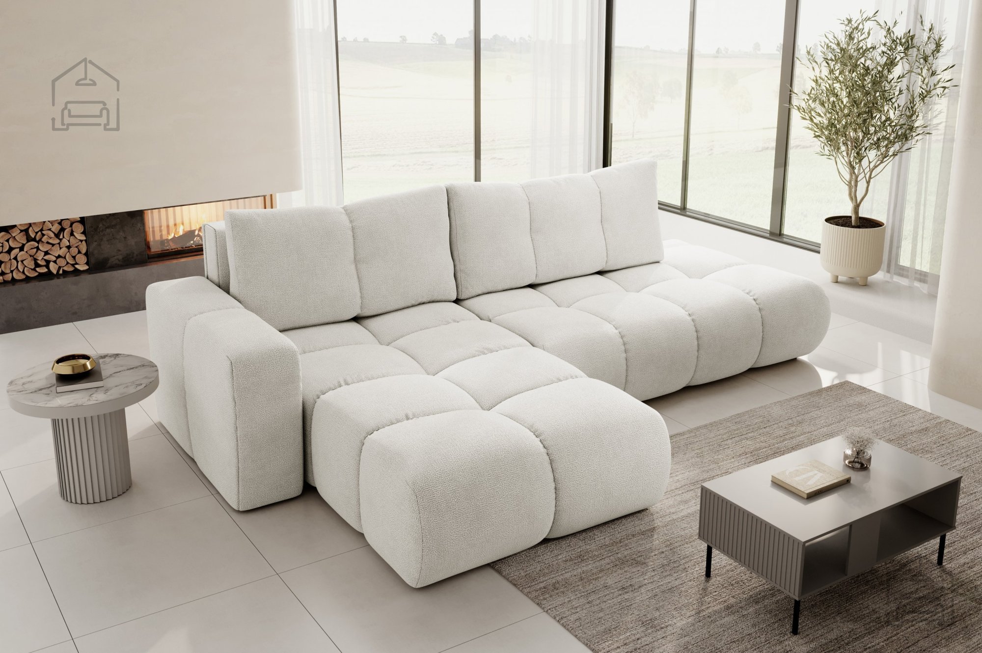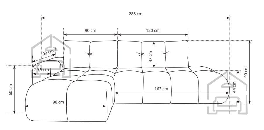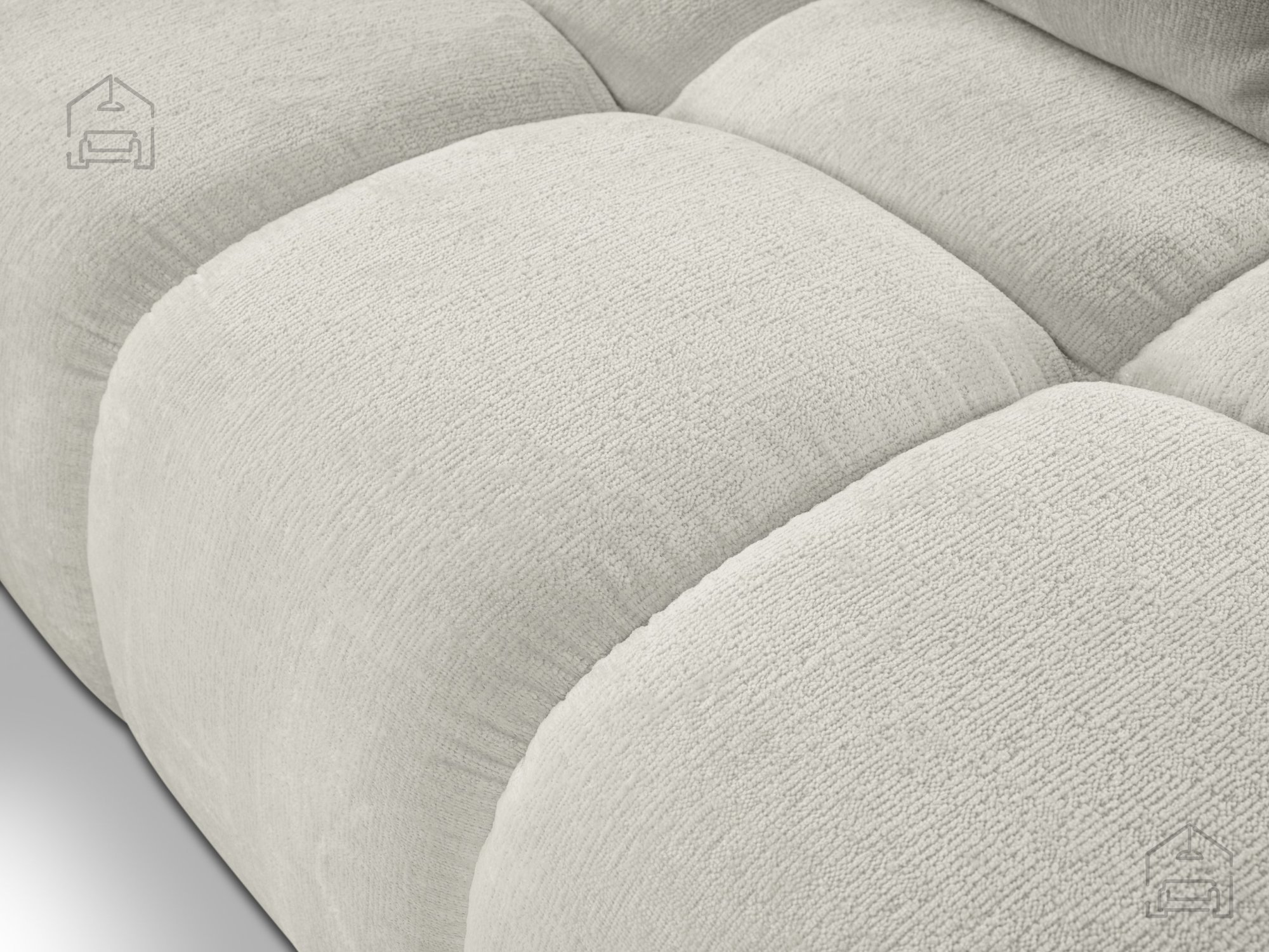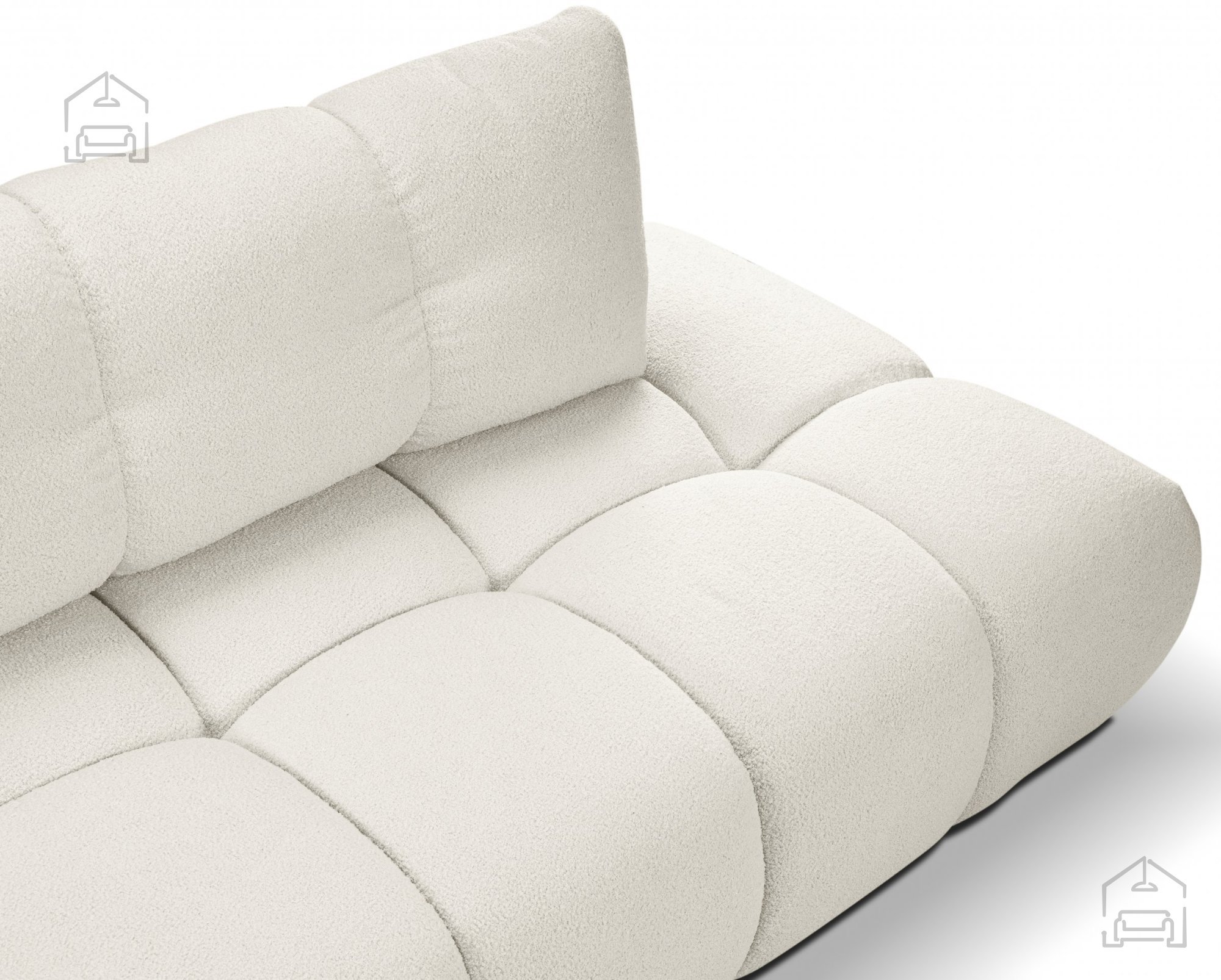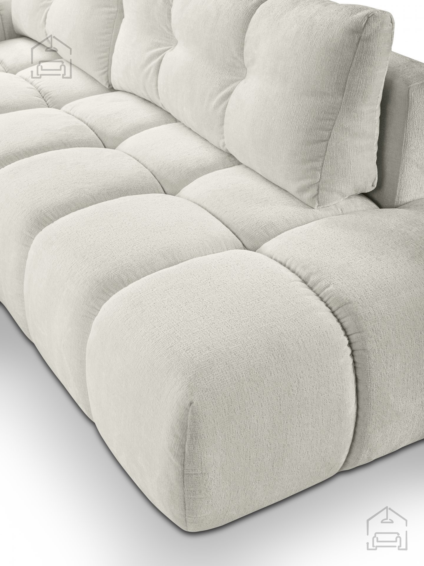 Kotna sedežna garnitura Soho prinaša sodobno vzdušje v vašo dnevno sobo s svojimi značilnimi okroglimi oblikami. Ta garnitura zagotavlja visoko udobje in edinstven značaj s svojimi okrasnimi šivi ter mehkimi blazinami za hrbet. Tukaj so njene ključne značilnosti: