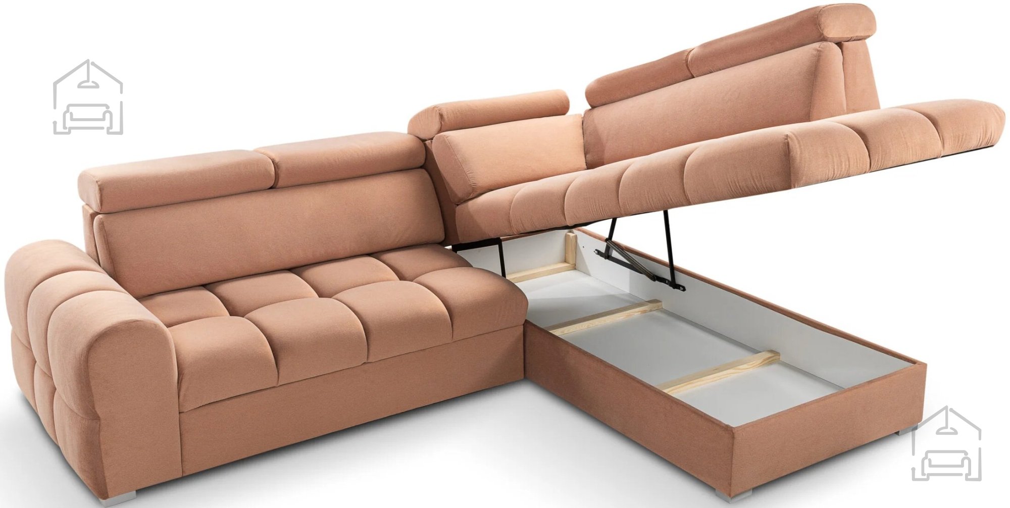 Kotna sedežna garnitura Paradiso je popolna izbira za tiste, ki cenijo preprosto eleganco, praktične rešitve in kakovostno izdelavo. Zaradi kombinacije udobja, sodobnega videza in zanesljivega mehanizma Dolphin se bo zlahka vključila v različne notranje stile – od minimalističnega do klasično toplega. S svojo funkcionalnostjo in možnostjo raztegovanja v ležišče vam bo služila tako podnevi kot ponoči, hkrati pa ohranila urejen in prijeten videz vašega doma.