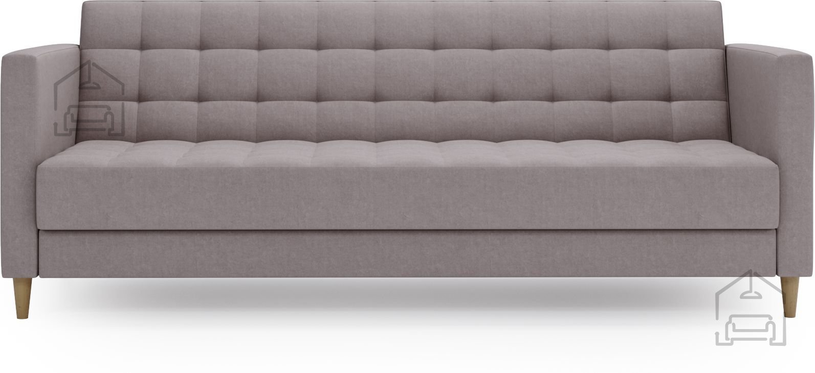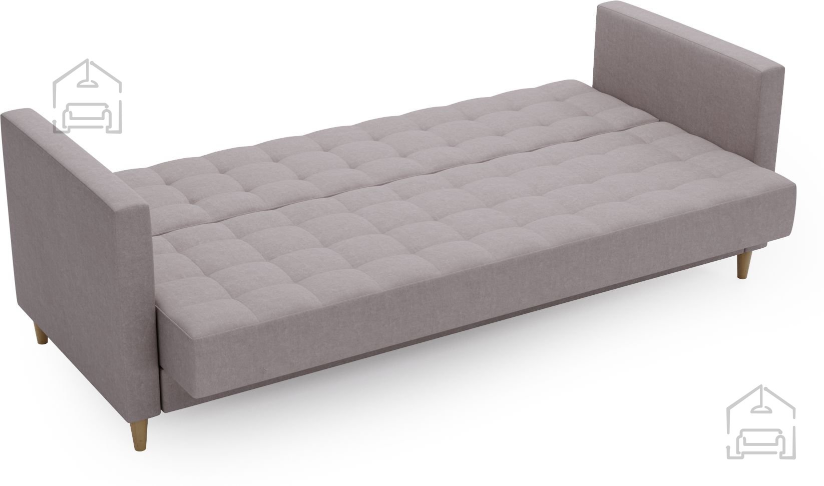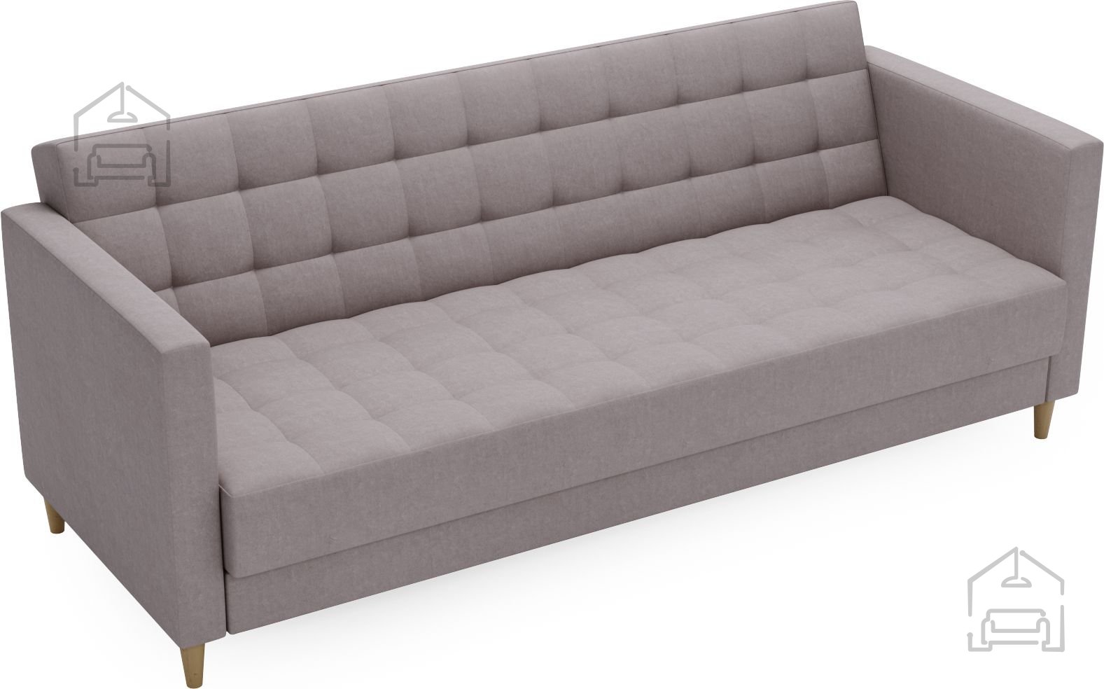 Trosed je izdelan iz trpežnega lesenega okvirja v kombinaciji s kovinskimi elementi, kar mu daje stabilnost in dolgo življenjsko dobo. Oblazinjenje iz tkanine Sawana 11 je prijetno na dotik, hkrati pa odporno na vsakodnevno uporabo. Mehka, a čvrsta struktura tkanine ohranja estetski videz tudi po daljšem času sedenja ali spanja. Lesene noge dopolnjujejo sodoben značaj kosa in prostoru dodajo občutek lahkotnosti.