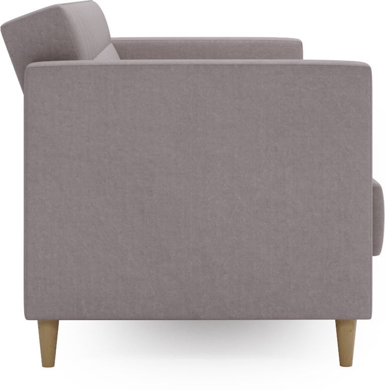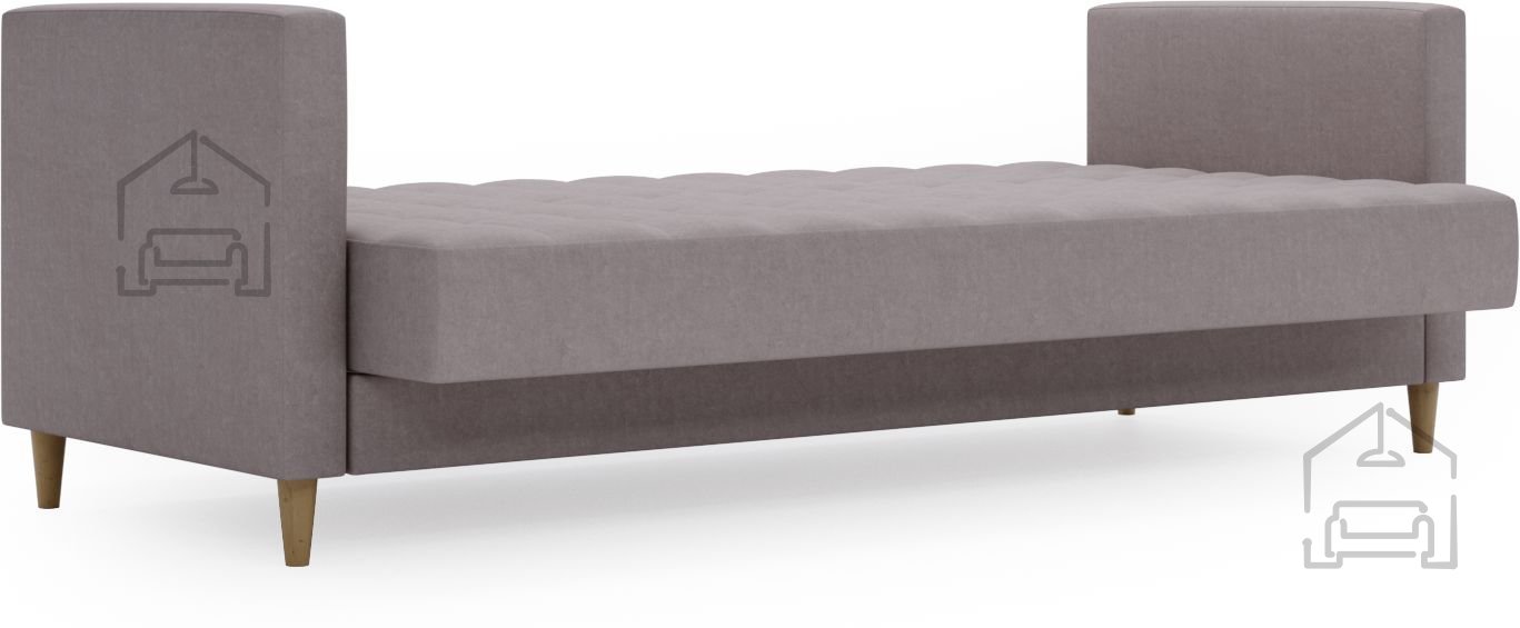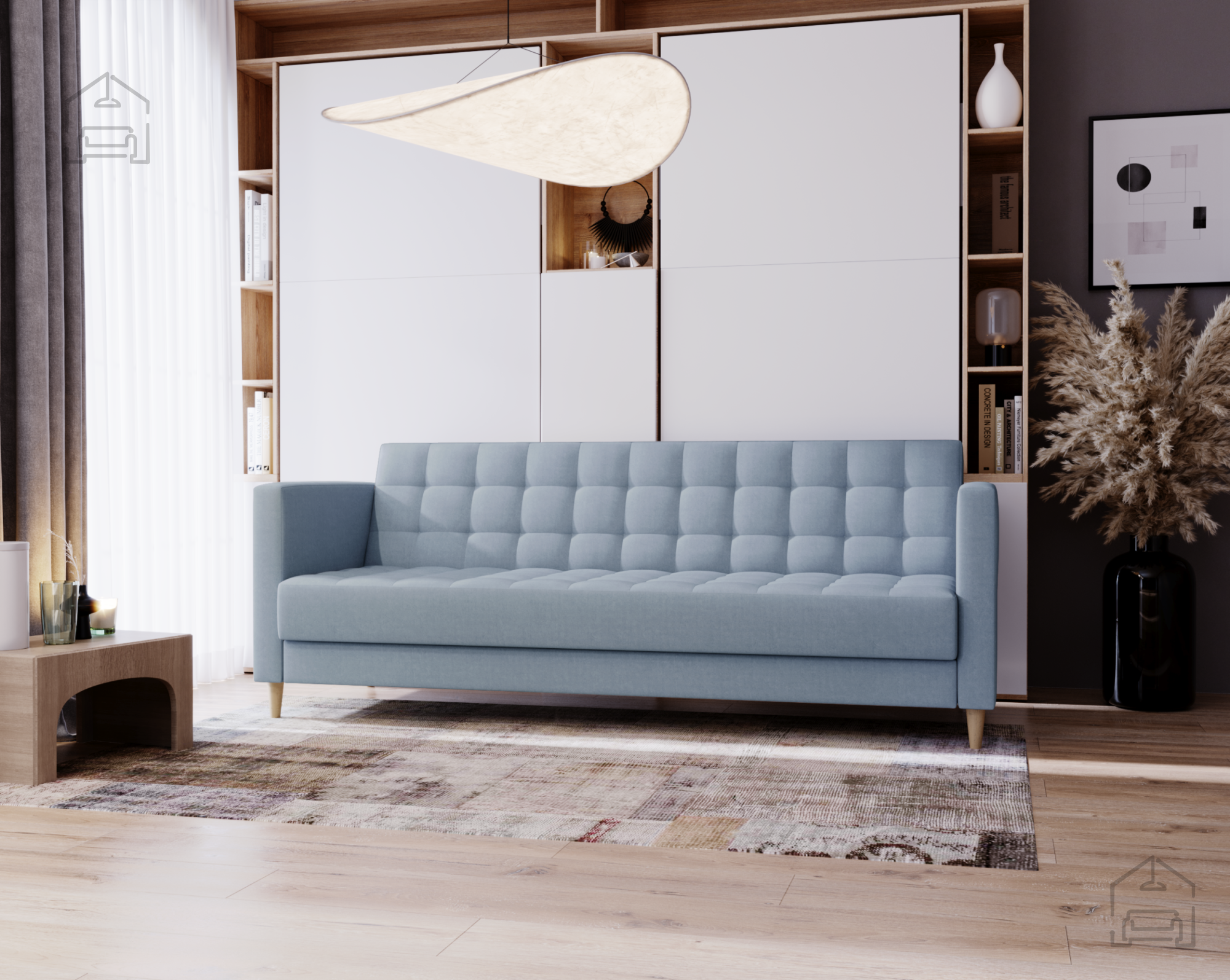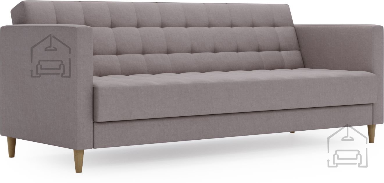Trosed je izdelan iz trpežnega lesenega okvirja v kombinaciji s kovinskimi elementi, kar mu daje stabilnost in dolgo življenjsko dobo. Oblazinjenje iz tkanine Sawana 11 je prijetno na dotik, hkrati pa odporno na vsakodnevno uporabo. Mehka, a čvrsta struktura tkanine ohranja estetski videz tudi po daljšem času sedenja ali spanja. Lesene noge dopolnjujejo sodoben značaj kosa in prostoru dodajo občutek lahkotnosti.