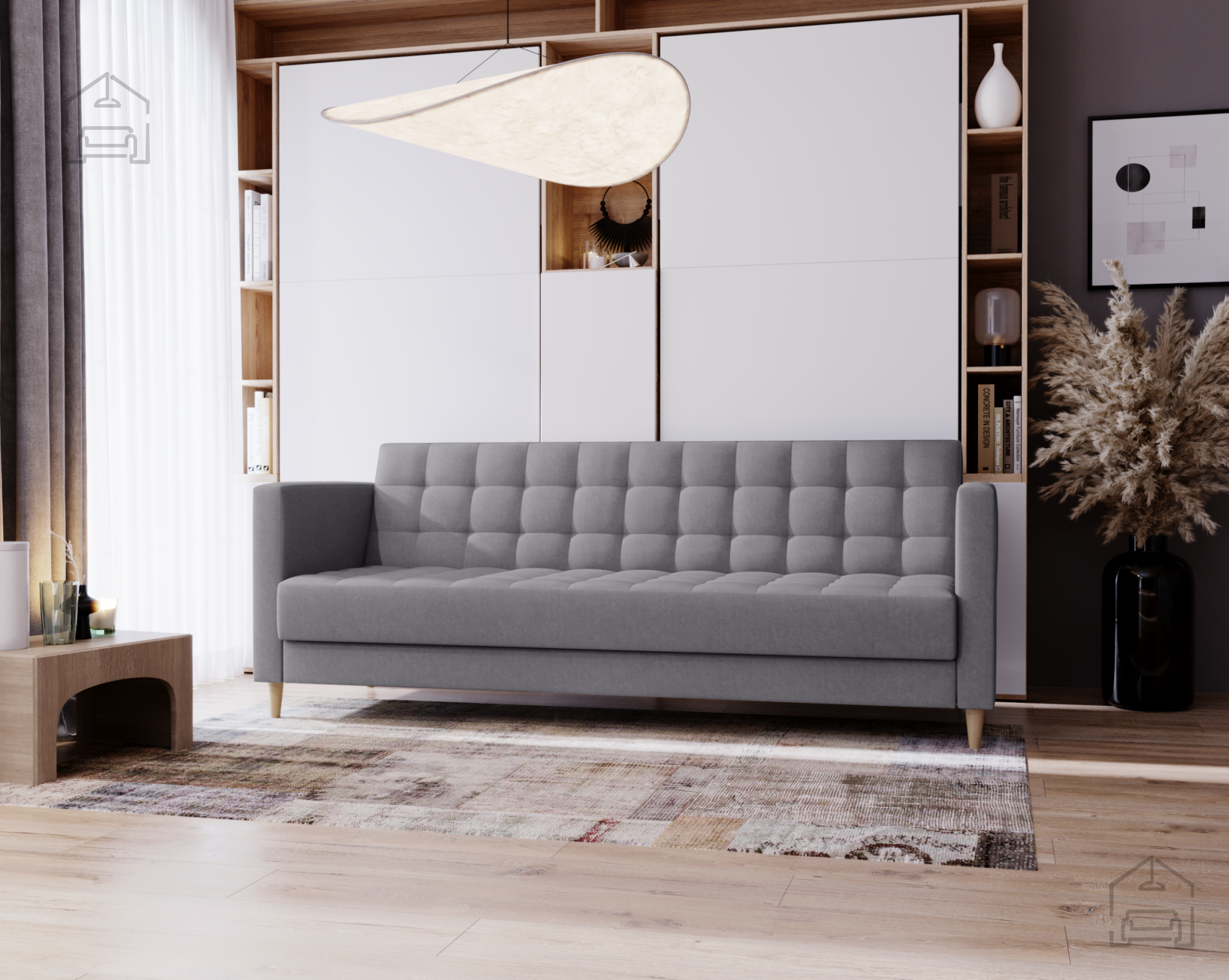 Trosed Fandy je opremljen z mehanizmom klik klak, ki omogoča hitro in enostavno preobrazbo iz sedežne garniture v ležišče. S preprostim gibom se naslon in sedalni del poravnata ter ustvarita udobno ležalno površino 190x122 cm. Takšna funkcija je še posebej praktična v manjših stanovanjih, kjer je vsak kvadratni meter dragocen, ali v prostorih za goste, kjer želite ponuditi kakovostno ležišče brez dodatnega pohištva.