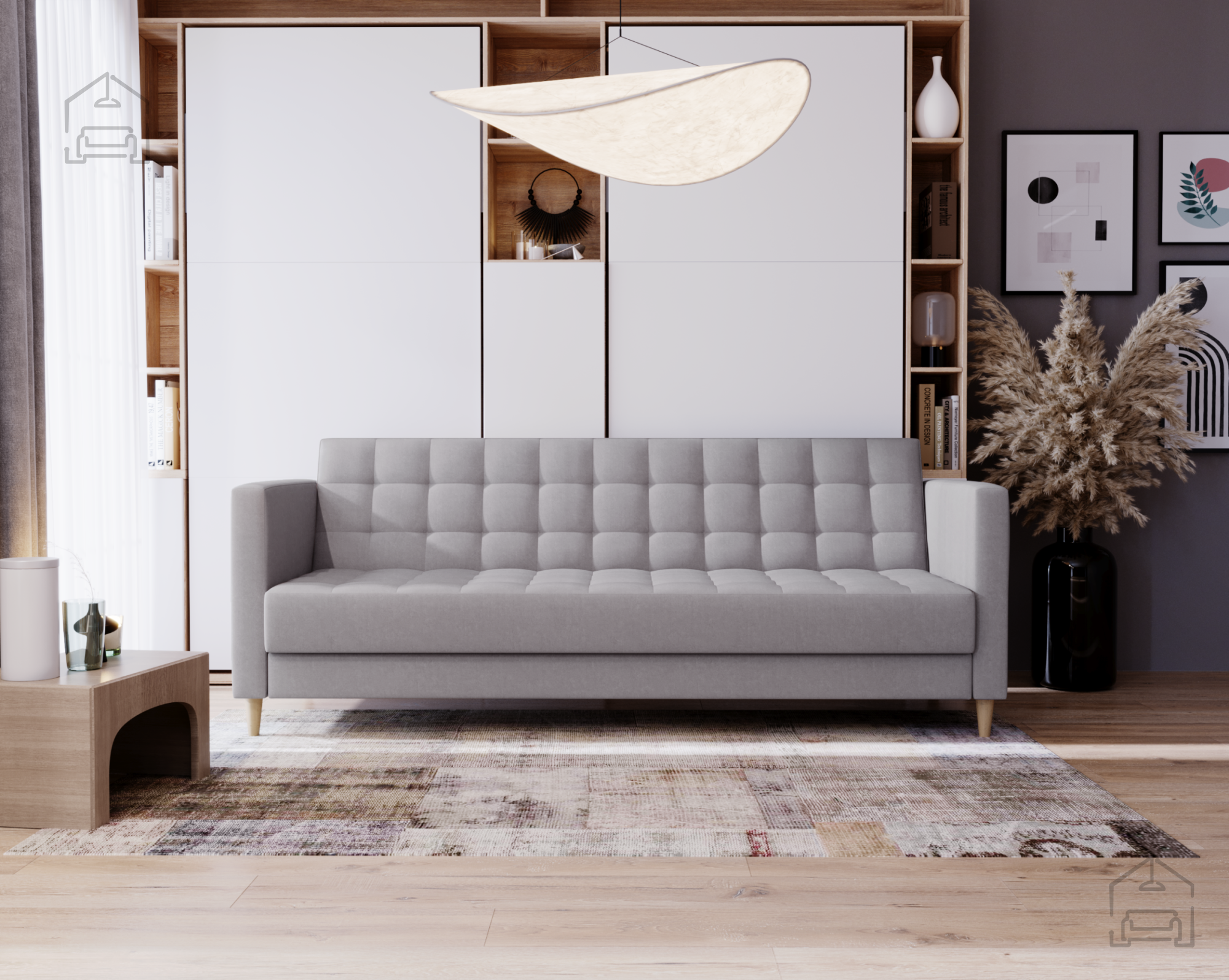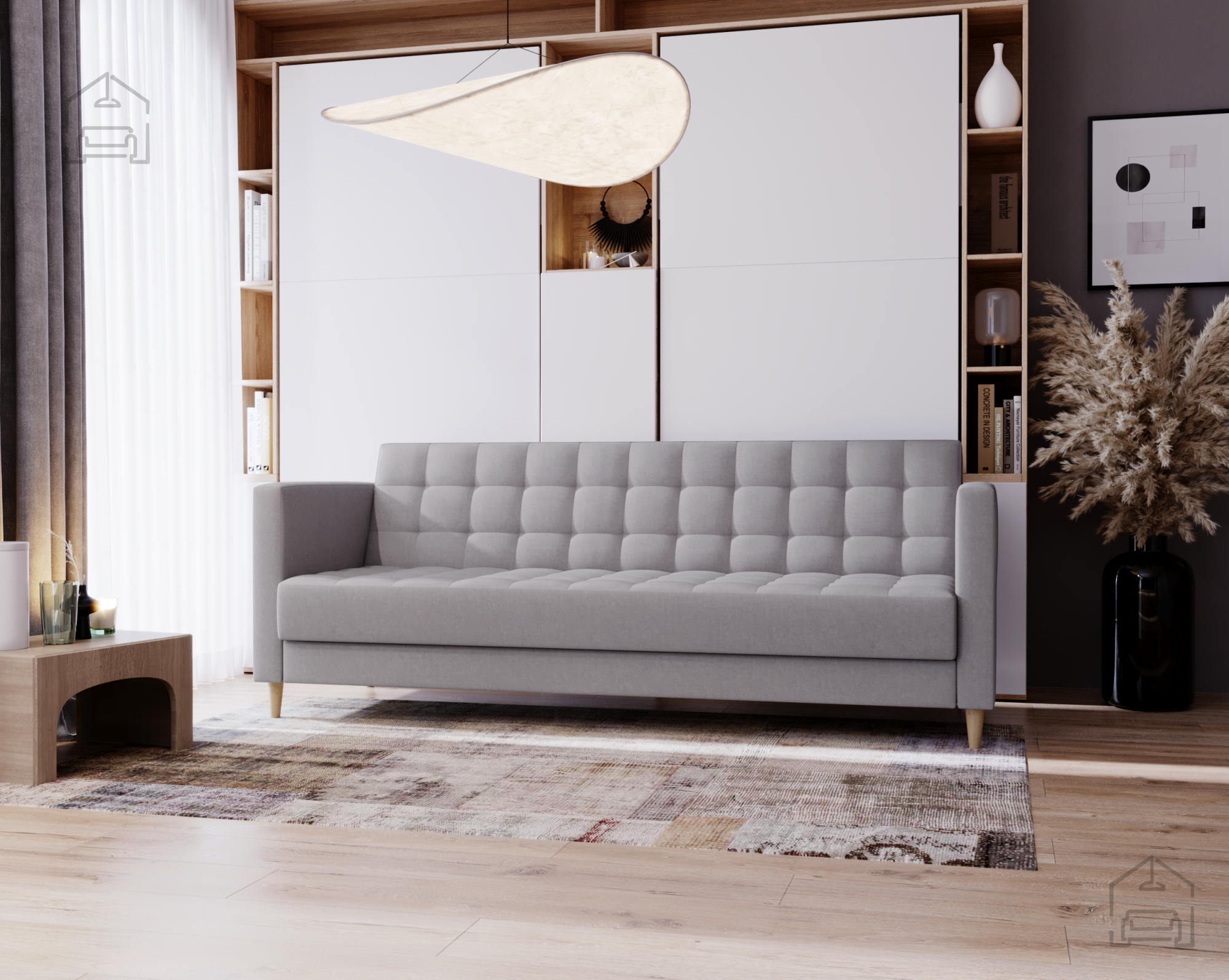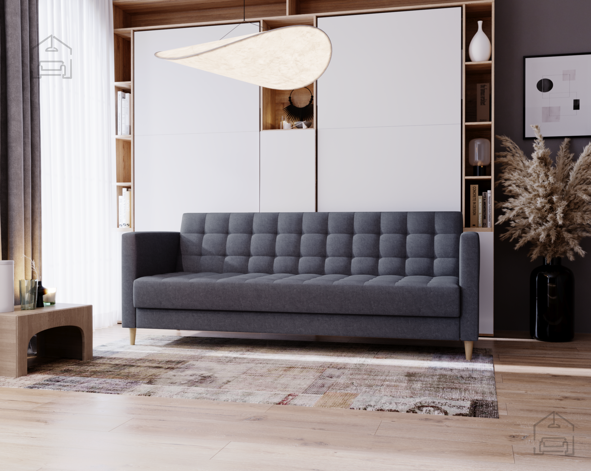 Ena od prednosti tega modela je predal za posteljnino, ki se nahaja pod sedalnim delom. Vanj lahko shranite odeje, blazine, posteljnino ali druge tekstilne dodatke, kar vam pomaga ohranjati red in urejenost prostora. Predal je dostopen in prostoren, zato omogoča učinkovito rabo prostora tudi v manjših stanovanjih.
