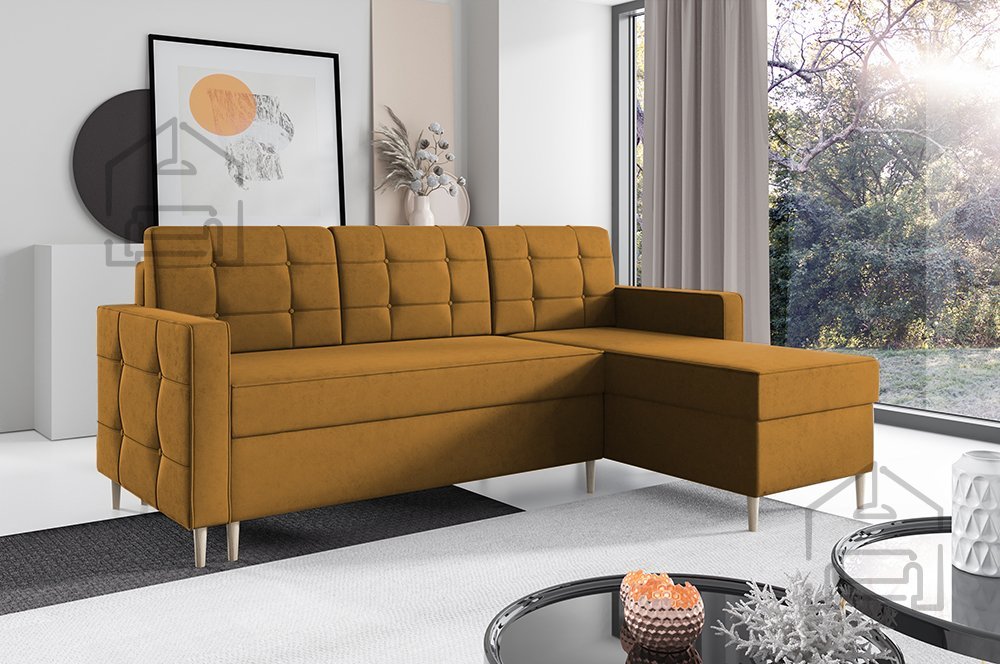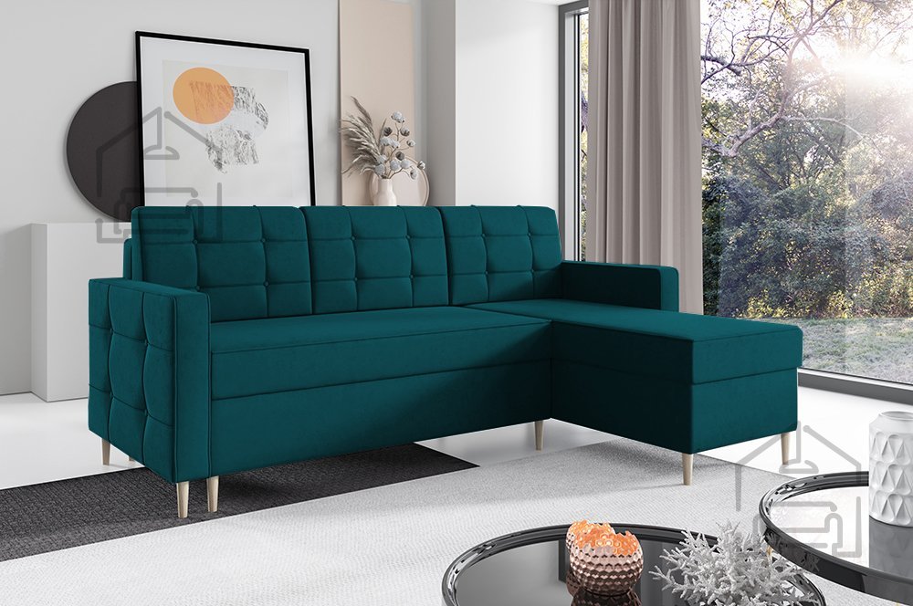 Dave 127 je več kot le udoben kavč – z enim preprostim gibom se spremeni v prostorno ležišče velikosti 137x198 cm. Mehanizem Euro omogoča hitro in enostavno raztegovanje, zato je kavč primeren za vsakodnevno uporabo ali kot udobna postelja za goste. Poleg tega ima garnitura prostoren predal za posteljnino, kamor lahko shranite odeje, blazine ali drugo posteljnino, kar pripomore k urejenemu in organiziranemu videzu vašega prostora.