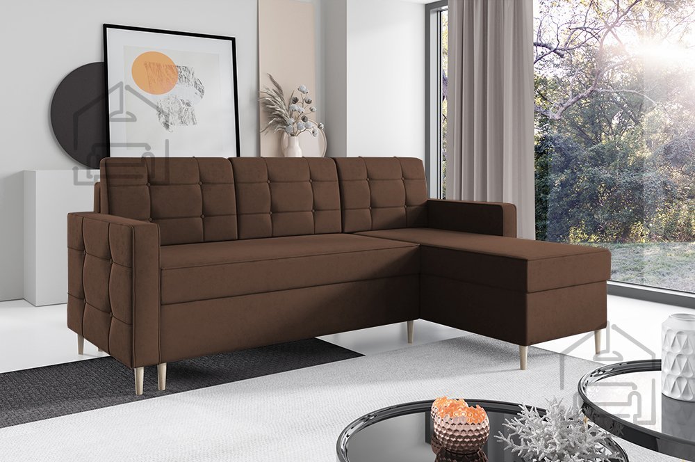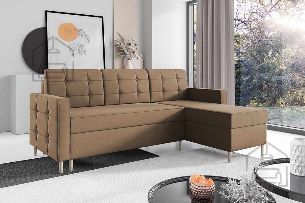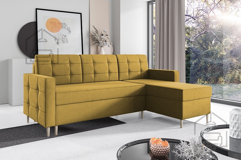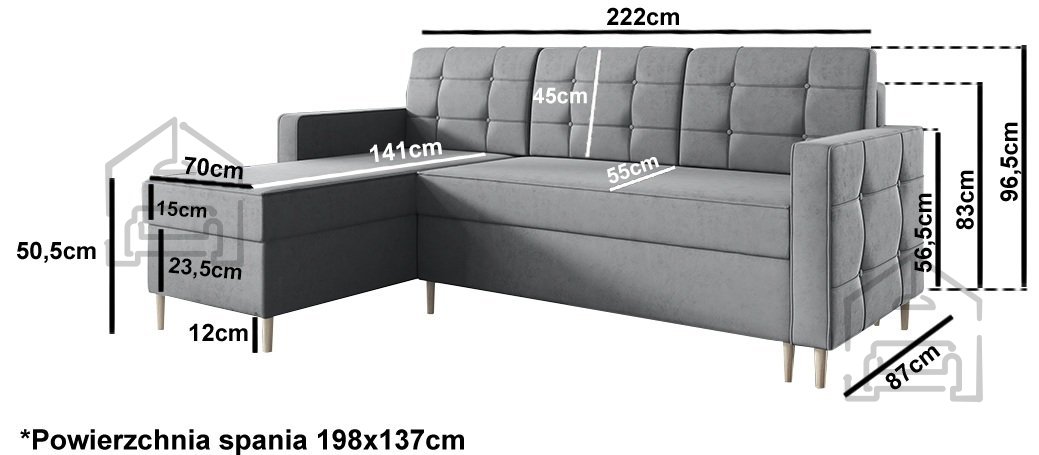 Kotna sedežna garnitura Dave 127 znamke PKMebel predstavlja popolno ravnovesje med udobjem, funkcionalnostjo in sodobno estetiko. S svojimi dimenzijami 222x141x96,5 cm se odlično prilega različnim velikostim dnevnih sob, medtem ko njena univerzalna postavitev omogoča, da stran ležalnika preprosto zamenjate z leve na desno, glede na razporeditev prostora. Takšna prilagodljivost jo naredi izjemno praktično izbiro za vsak dom, kjer je pomembna tako estetika kot uporabnost.