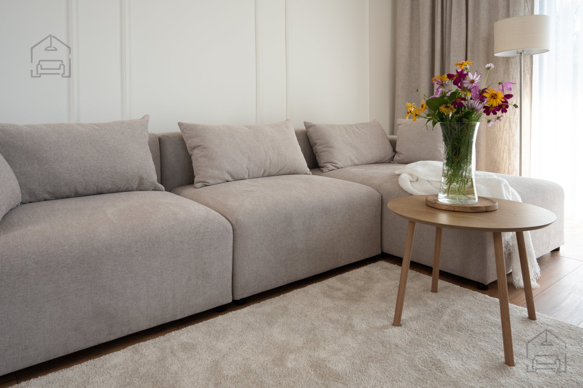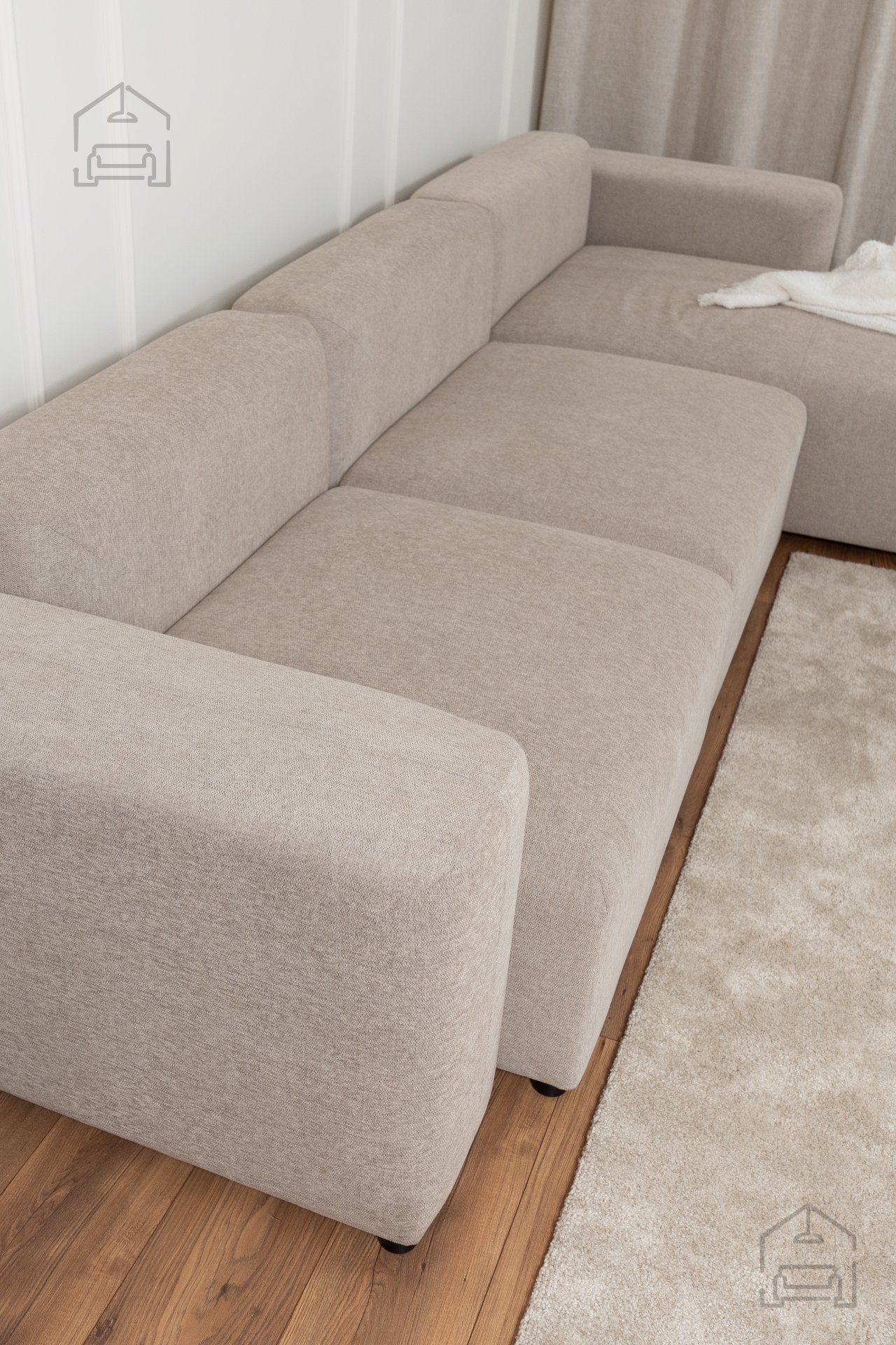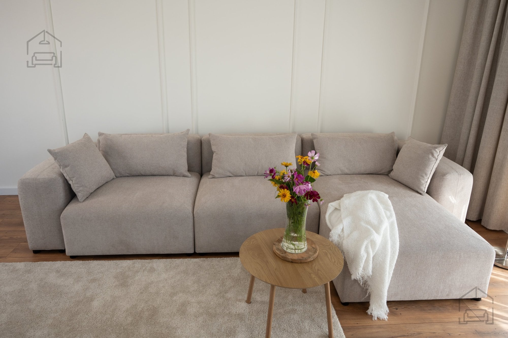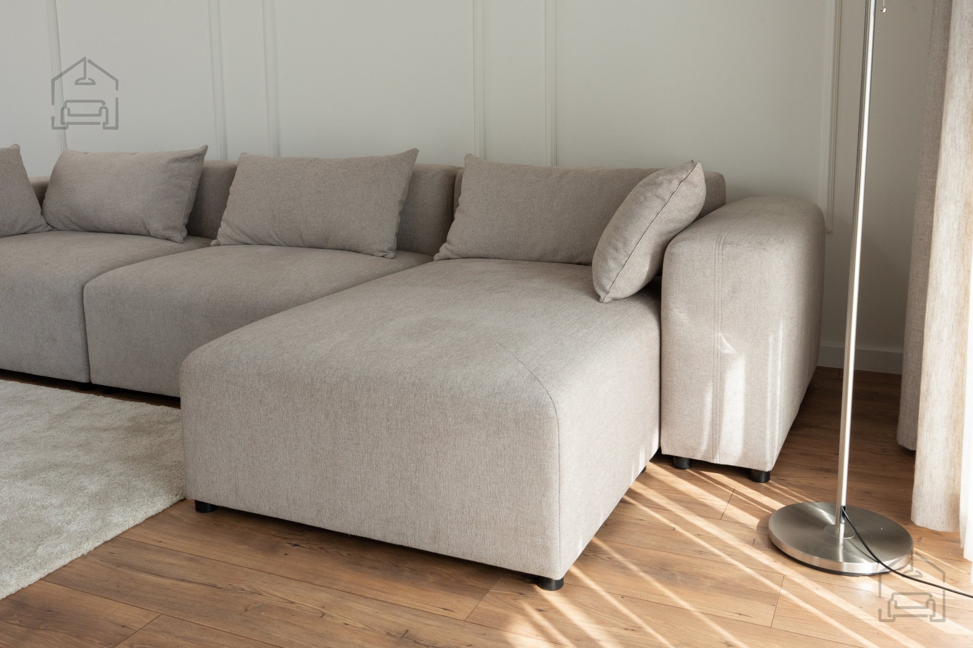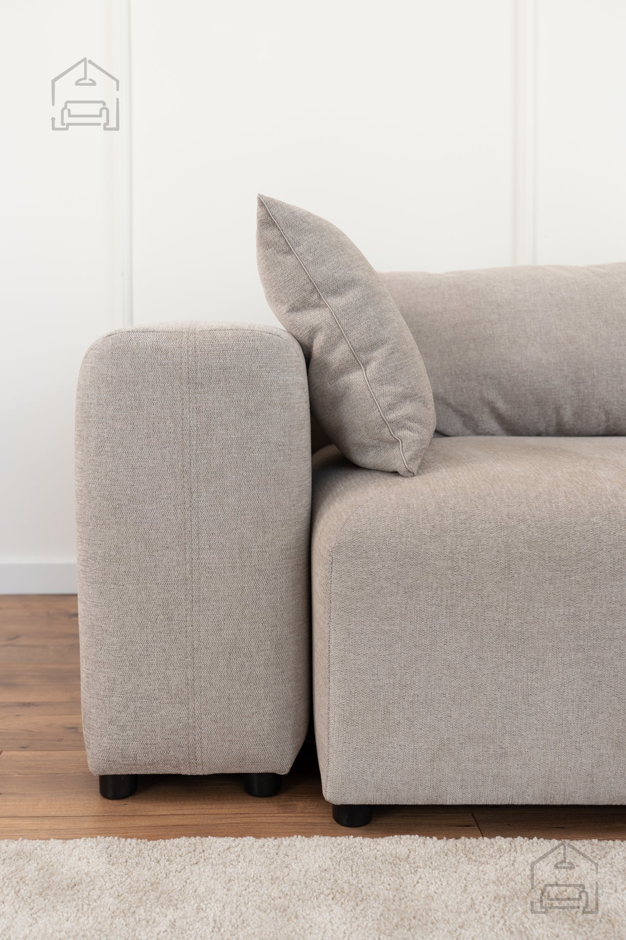 Kotna sedežna garnitura Modularna z blazinami – PKMebel združuje estetiko, kakovost in udobje v enem izdelku. Njena moderna oblika, premišljena konstrukcija in mehka tkanina ustvarjajo prijeten prostor za počitek, druženje ali branje. Izberite različico, ki se najbolje poda vašemu domu, in uživajte v udobju, ki ga prinaša kakovostna evropska izdelava.