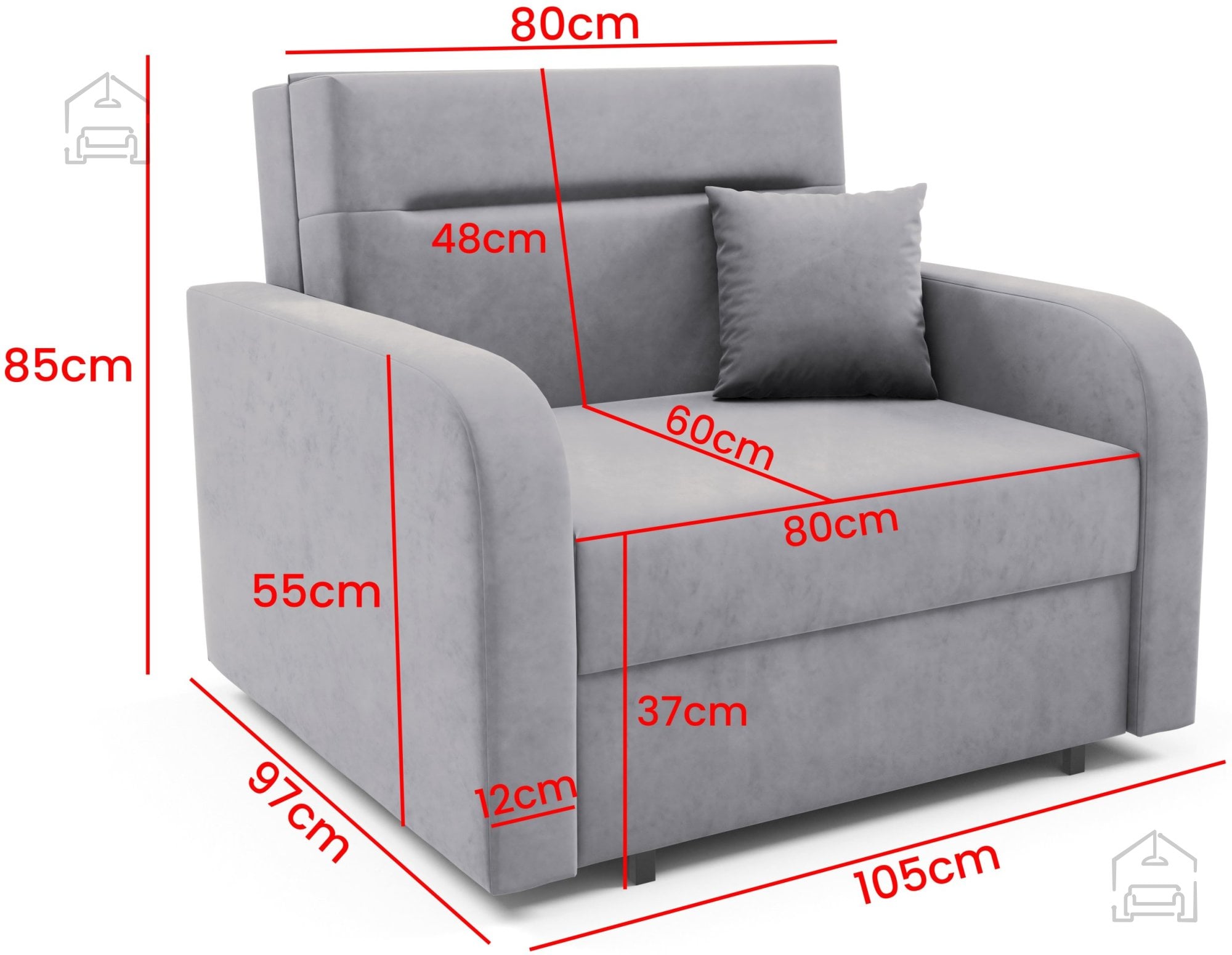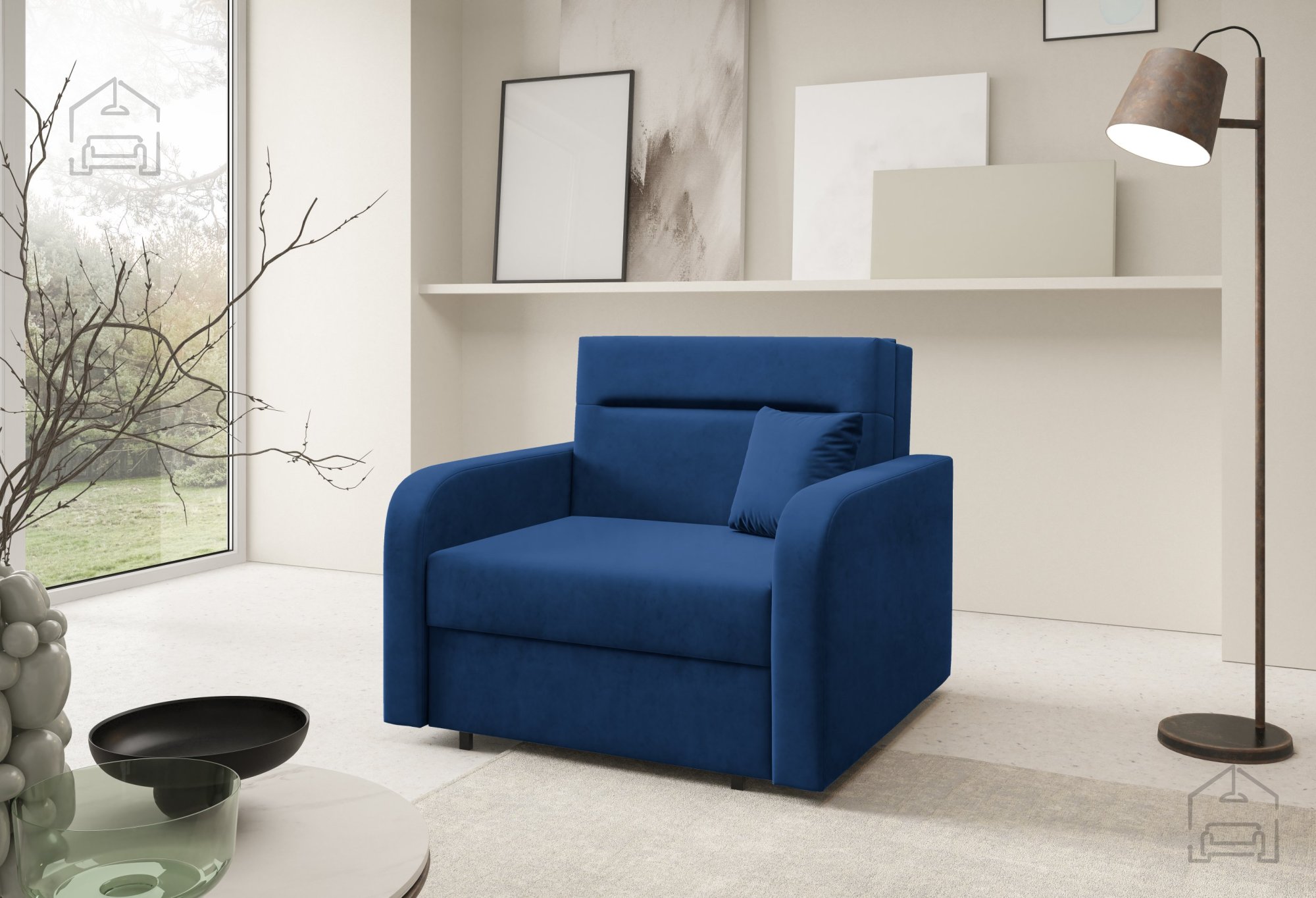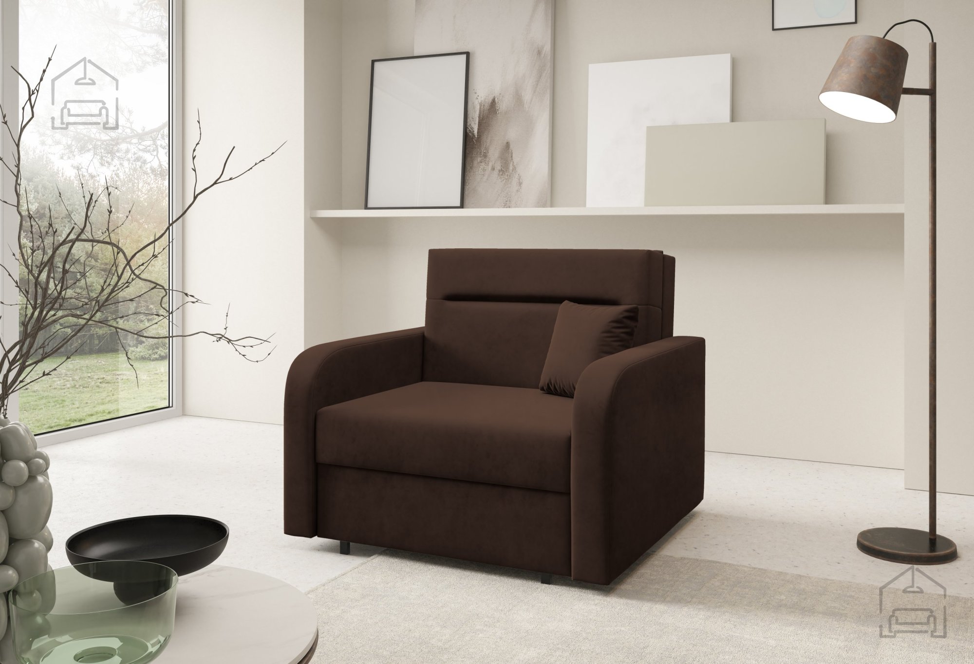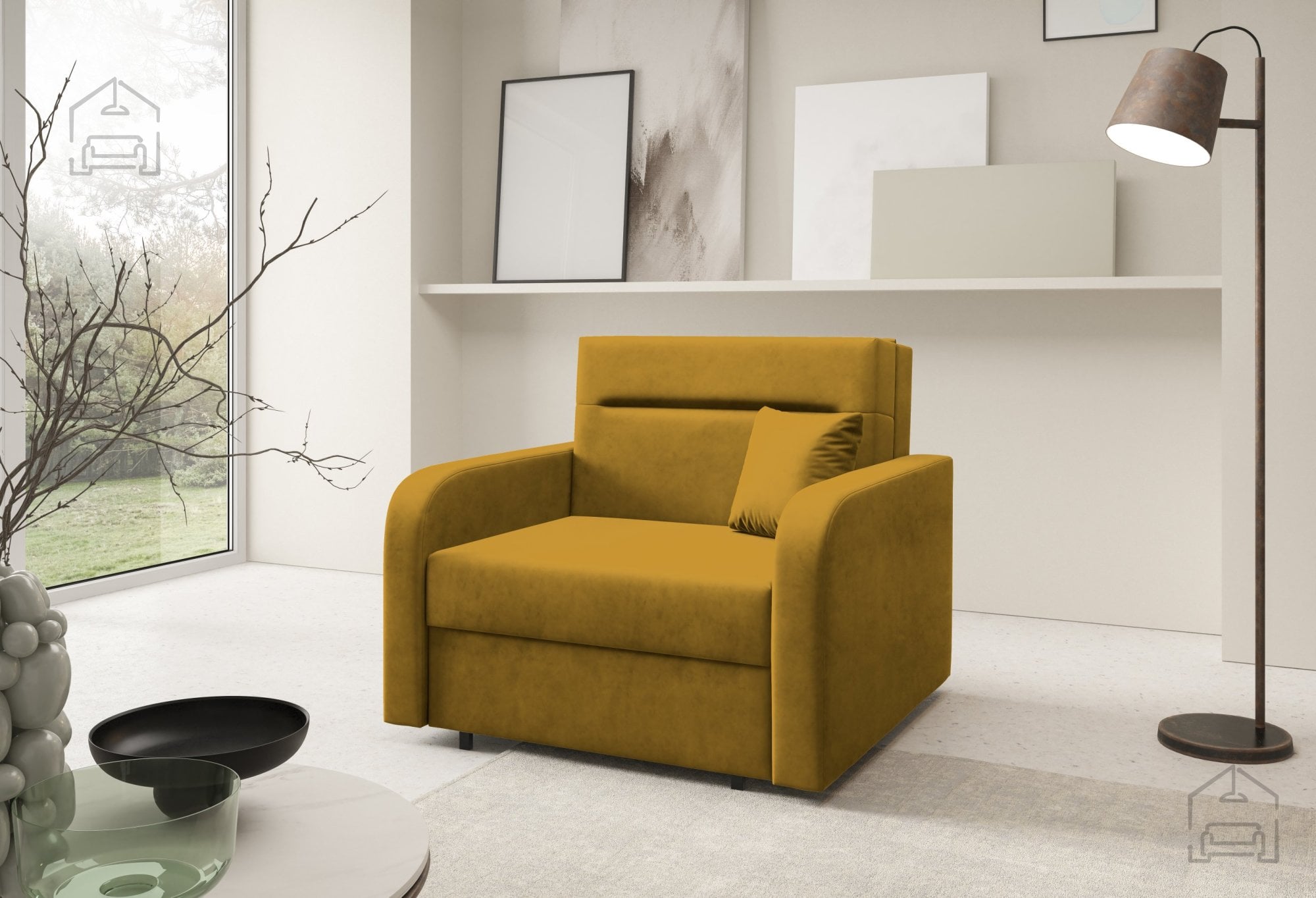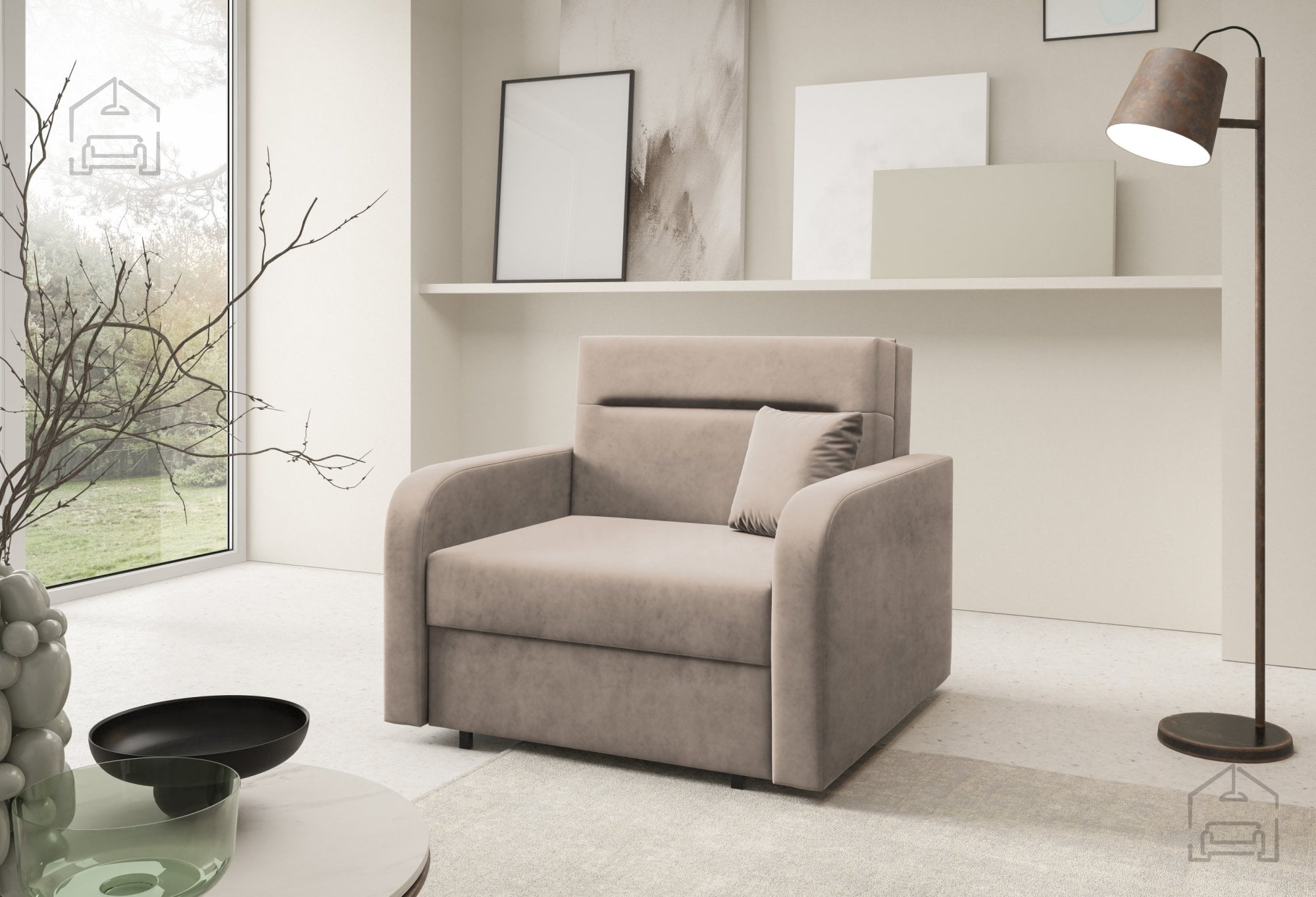 Fotelj z ležiščem Girona I znamke PKMebel združuje udobje, funkcionalnost in estetski videz, ki se lepo poda v vsak sodoben ali klasičen interier. Gre za izdelek, ki s pomočjo teleskopskega mehanizma omogoča hitro in enostavno preoblikovanje iz elegantnega fotelja v praktično ležišče. Ta rešitev je idealna za manjše prostore, otroške in mladinske sobe, pa tudi za dnevne sobe, kjer želite imeti dodatno možnost za prenočitev gostov.