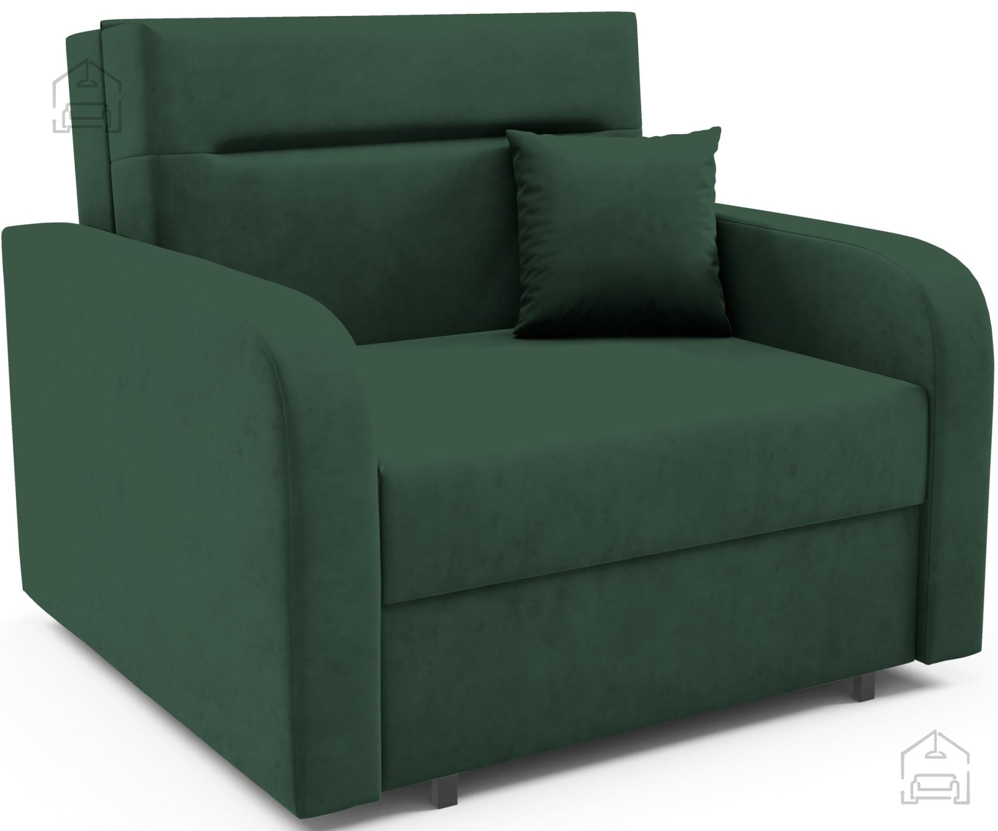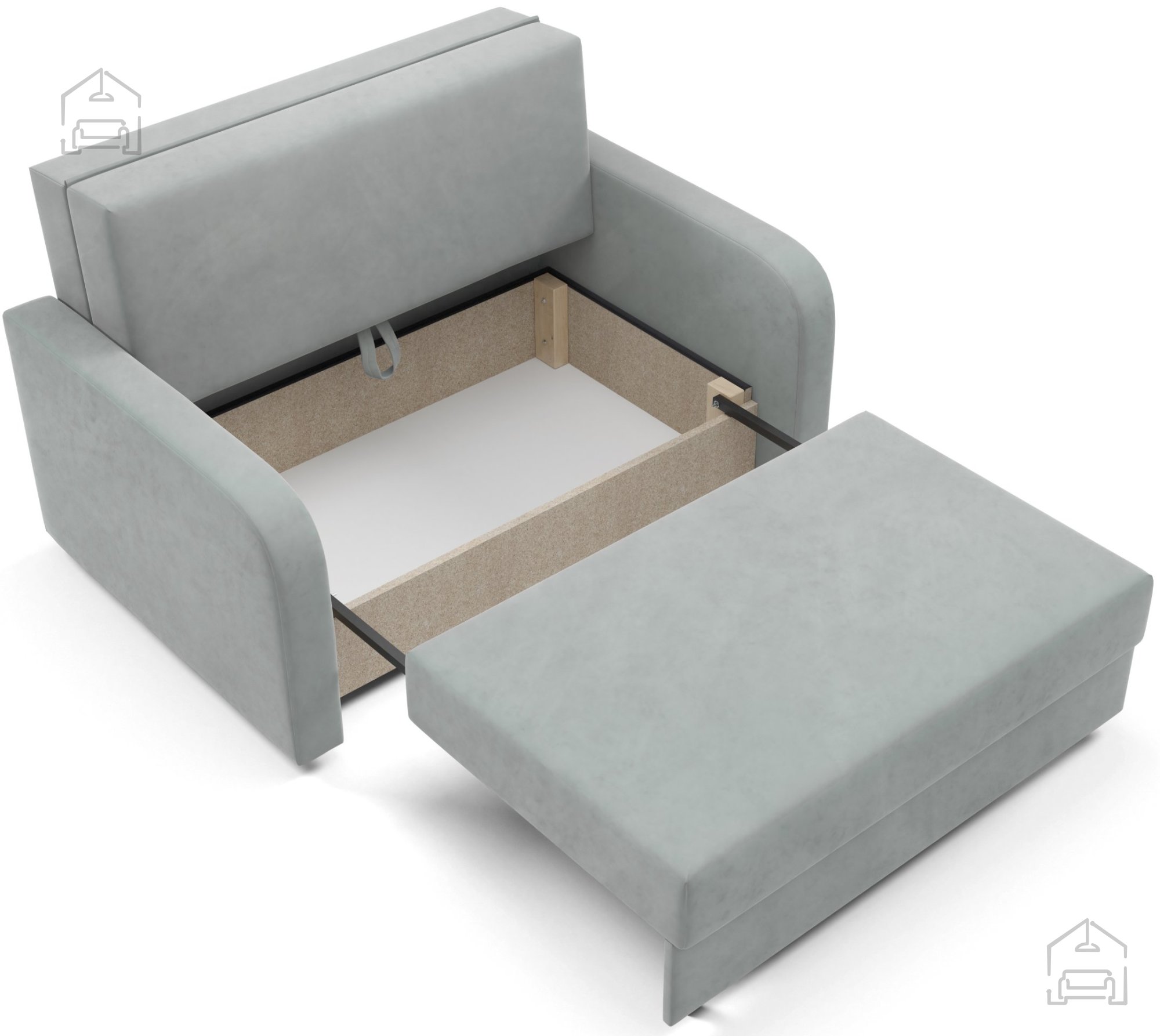 Okvir fotelja je izdelan iz lesa, kar zagotavlja stabilnost in dolgo življenjsko dobo izdelka. Polnjen je s kakovostno peno, ki nudi prijetno udobje pri sedenju in spanju. Pena se lepo prilagaja telesu, hkrati pa ohranja svojo obliko tudi po daljšem obdobju uporabe.