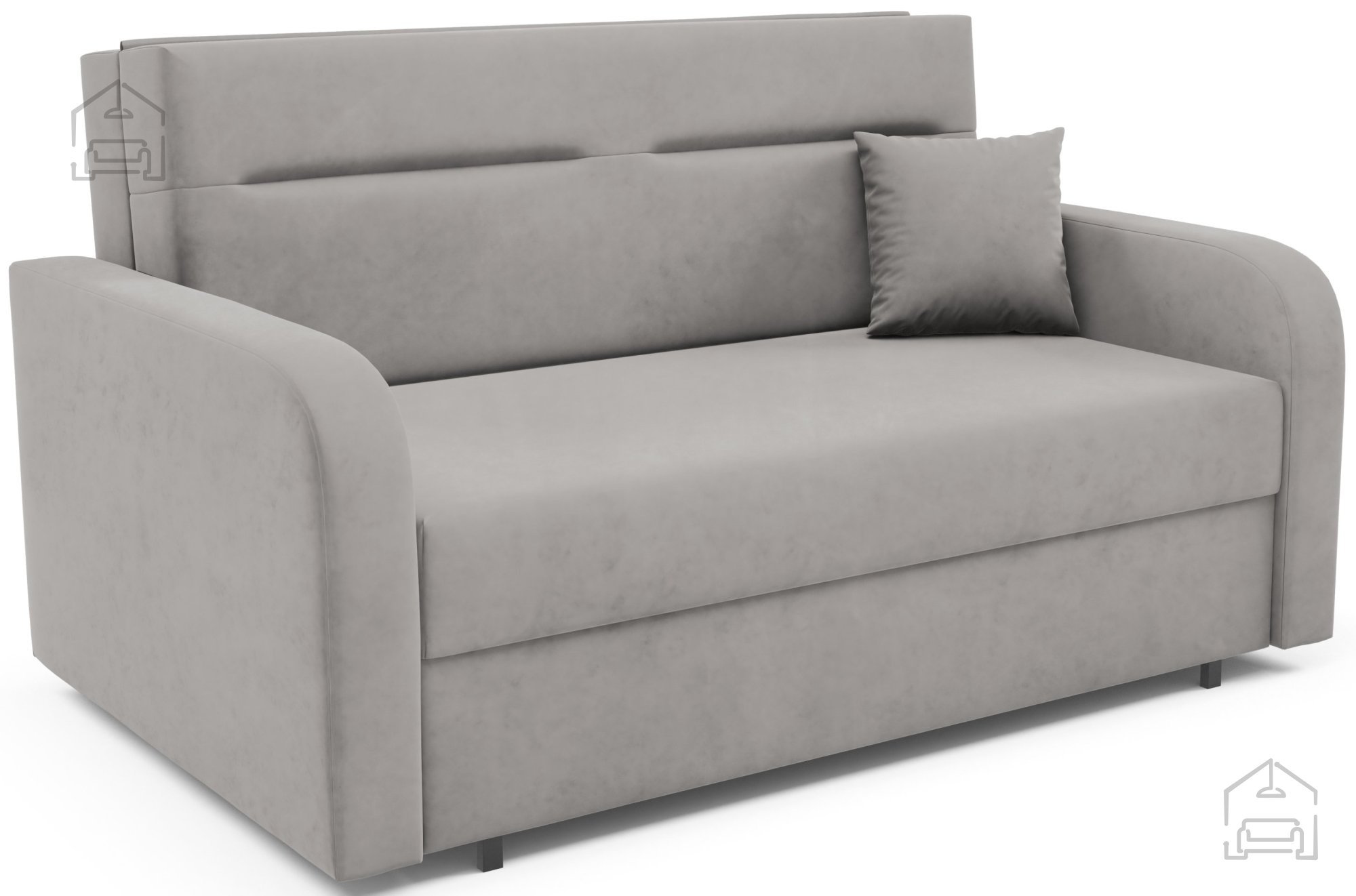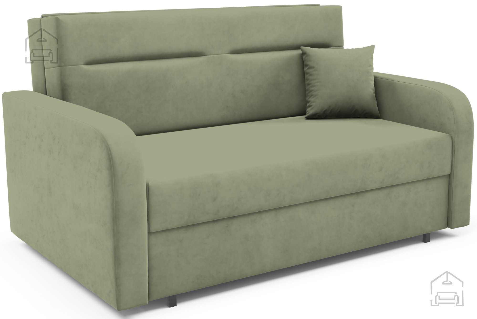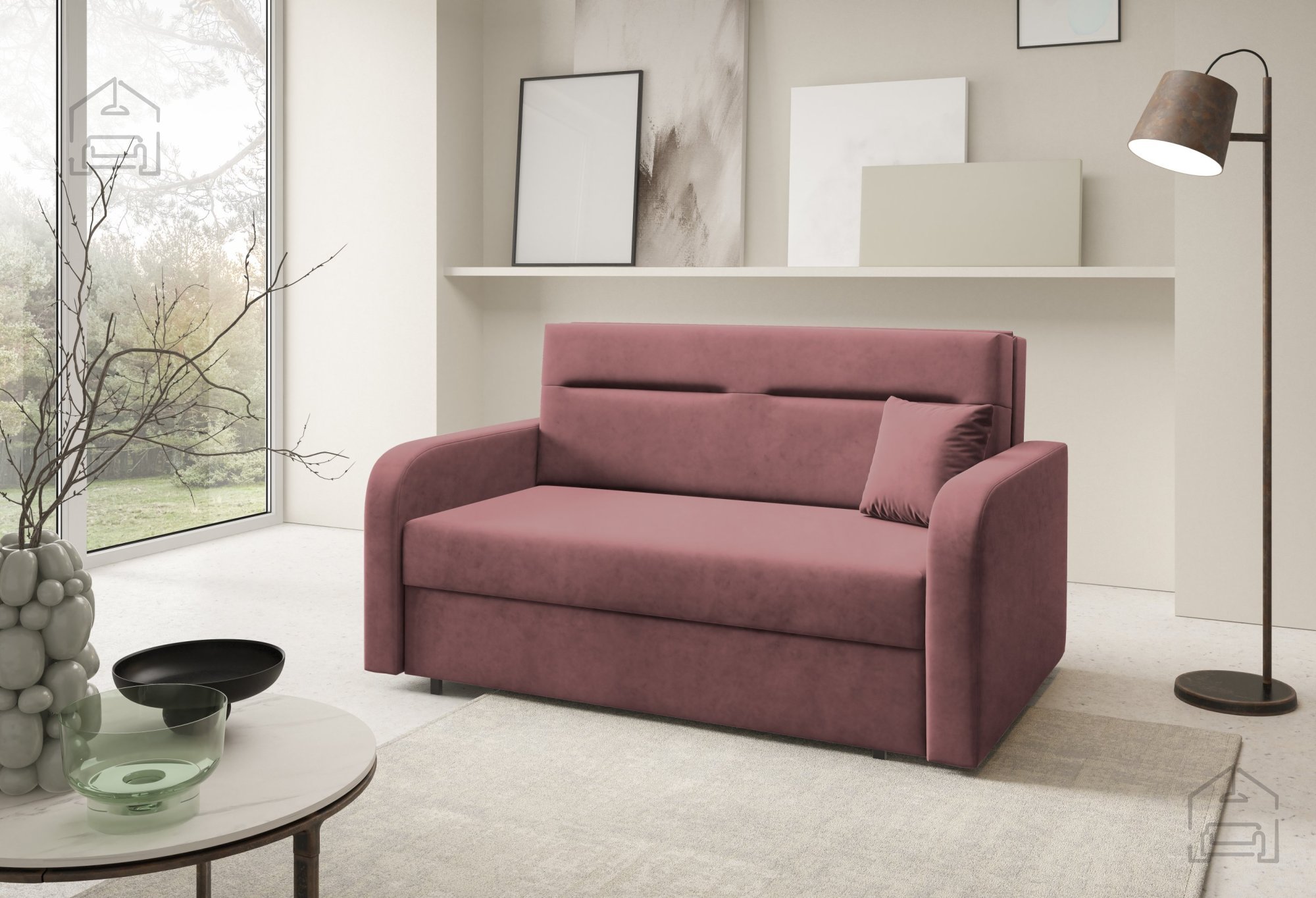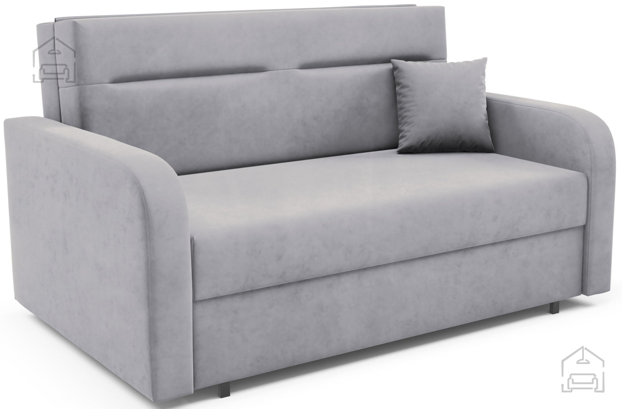 Na fotografiji je dvosed prikazan v tkanini Kronos 46, ki po videzu in otipu spominja na žamet ter prinaša prijetno toplino prostoru. Model je na voljo v več barvnih različicah, zato ga je mogoče enostavno uskladiti z obstoječo notranjo opremo. Zaradi svoje kompaktne velikosti in nevtralnega dizajna se lepo poda tako v otroške kot tudi mladinske sobe, manjše dnevne prostore ali vikende.
