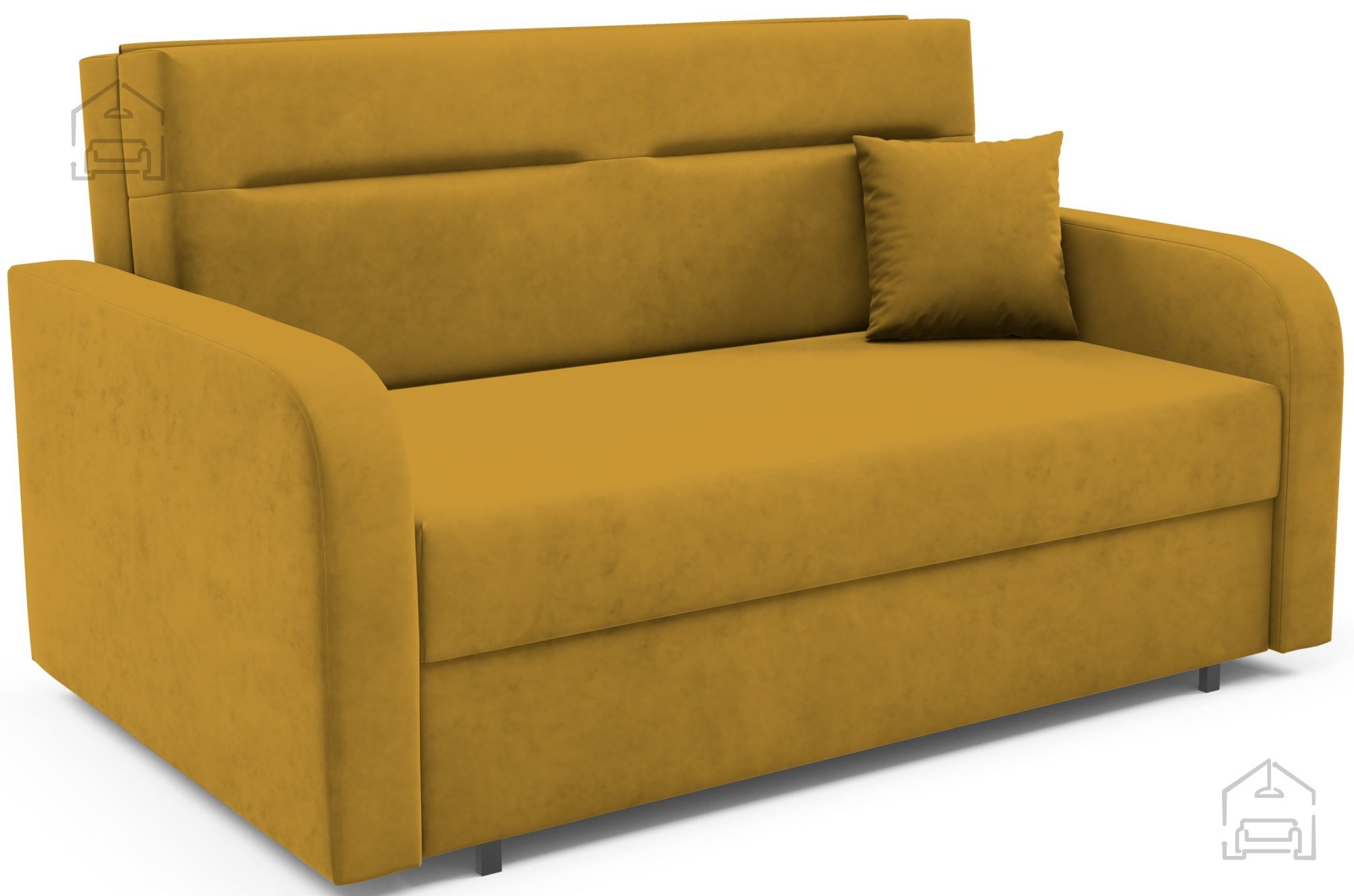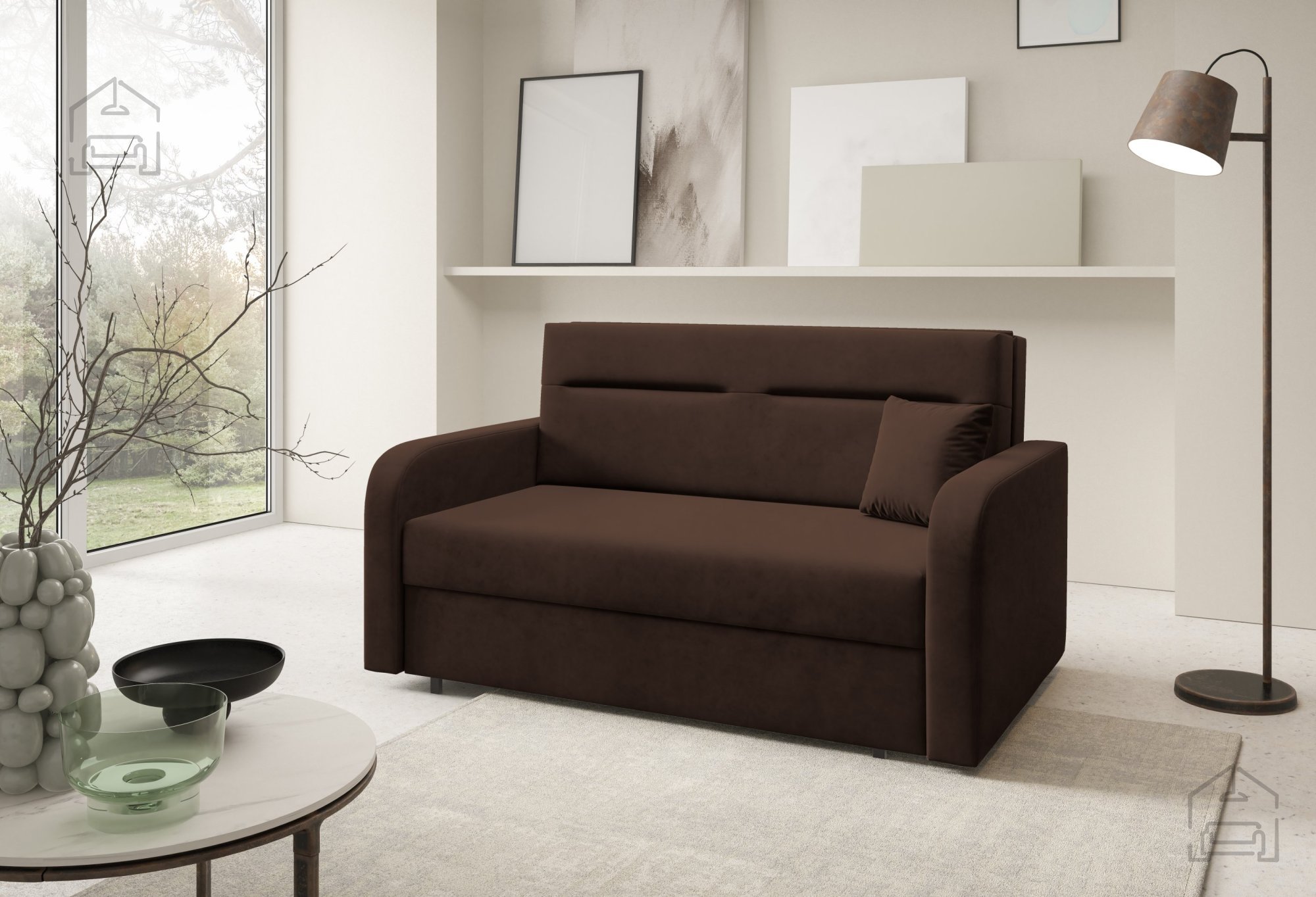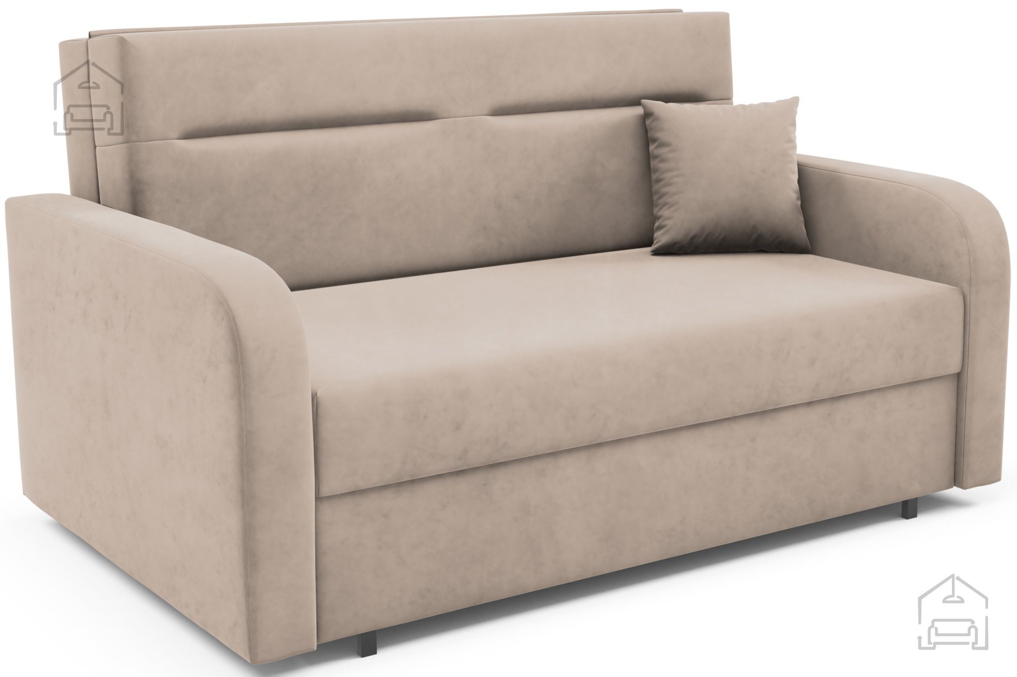 Na fotografiji je dvosed prikazan v tkanini Kronos 46, ki po videzu in otipu spominja na žamet ter prinaša prijetno toplino prostoru. Model je na voljo v več barvnih različicah, zato ga je mogoče enostavno uskladiti z obstoječo notranjo opremo. Zaradi svoje kompaktne velikosti in nevtralnega dizajna se lepo poda tako v otroške kot tudi mladinske sobe, manjše dnevne prostore ali vikende.