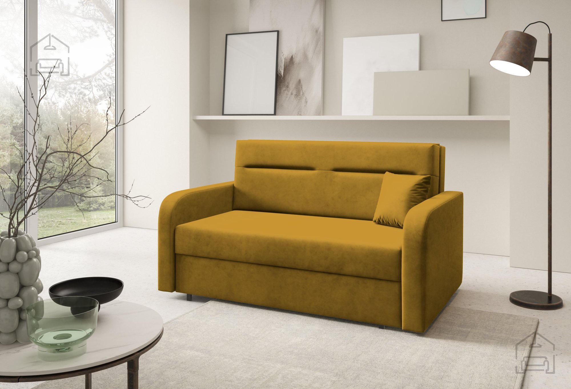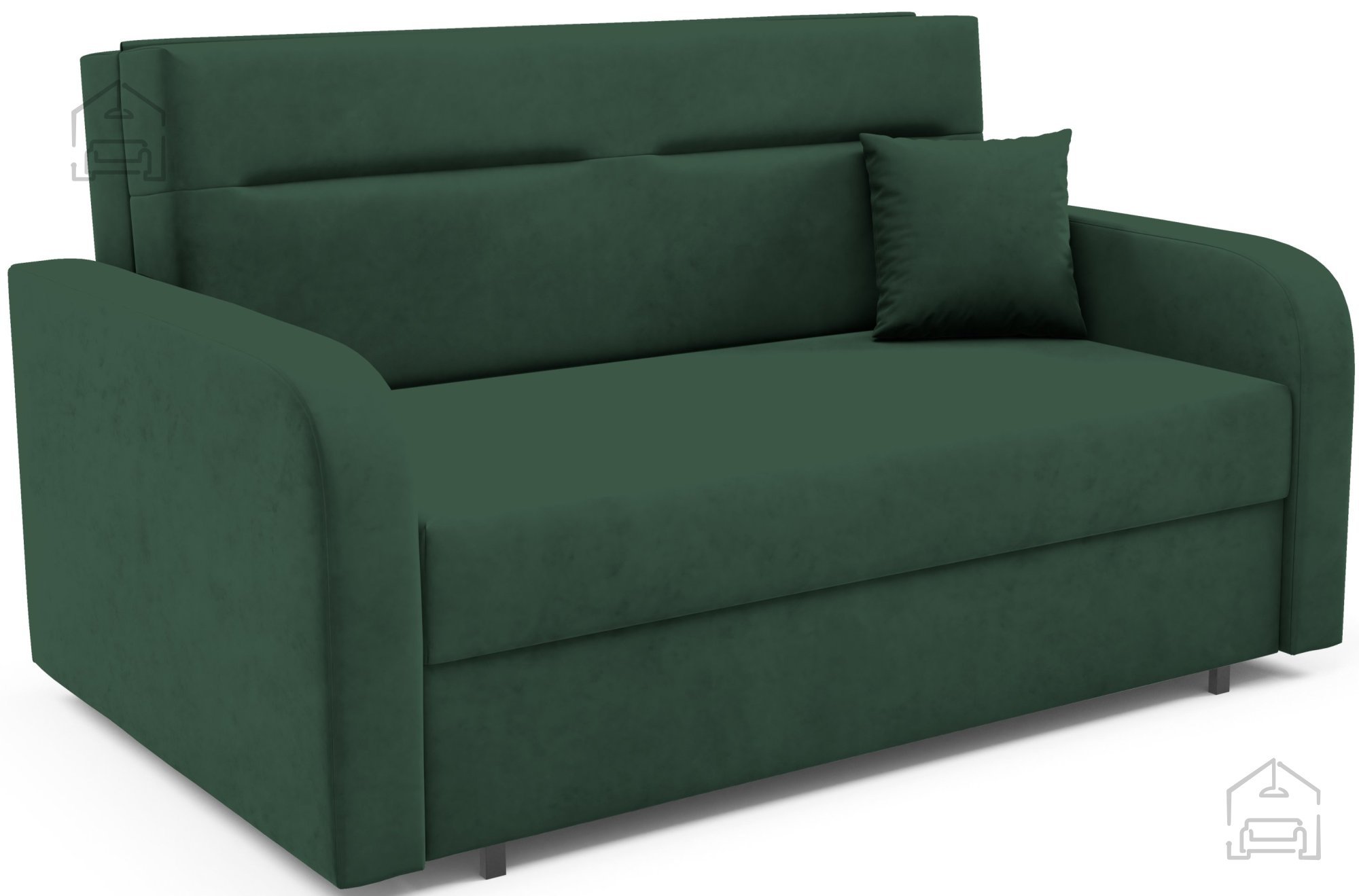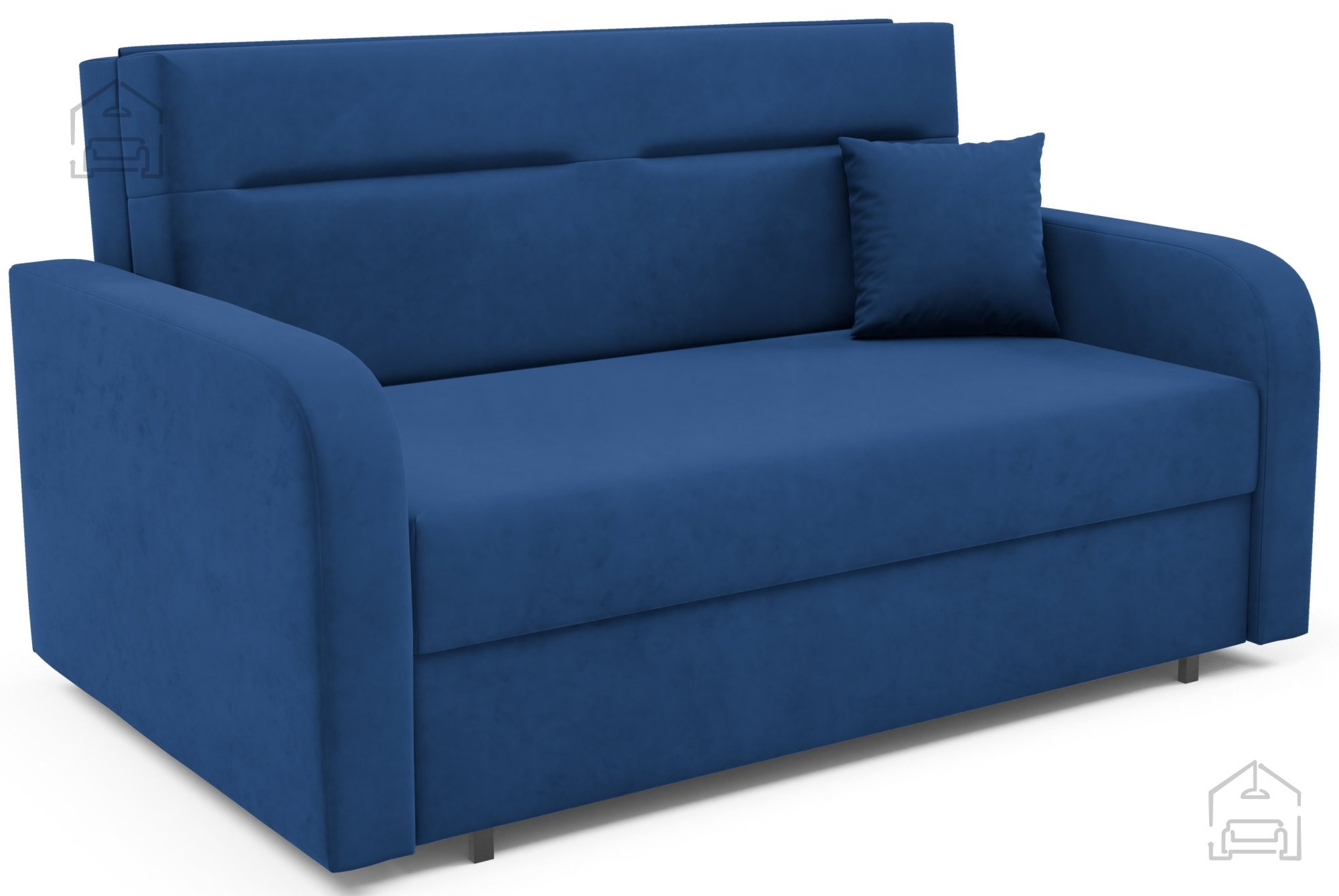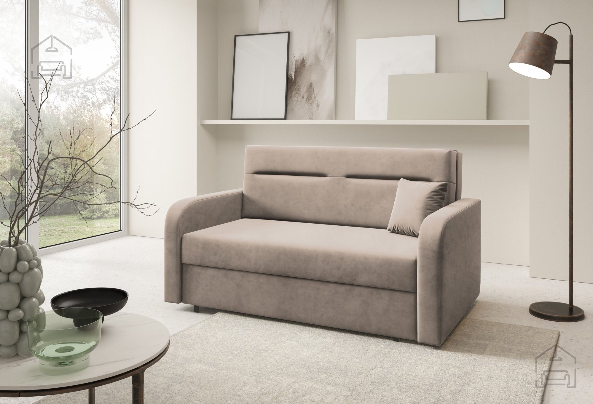 Na fotografiji je dvosed prikazan v tkanini Kronos 46, ki po videzu in otipu spominja na žamet ter prinaša prijetno toplino prostoru. Model je na voljo v več barvnih različicah, zato ga je mogoče enostavno uskladiti z obstoječo notranjo opremo. Zaradi svoje kompaktne velikosti in nevtralnega dizajna se lepo poda tako v otroške kot tudi mladinske sobe, manjše dnevne prostore ali vikende.