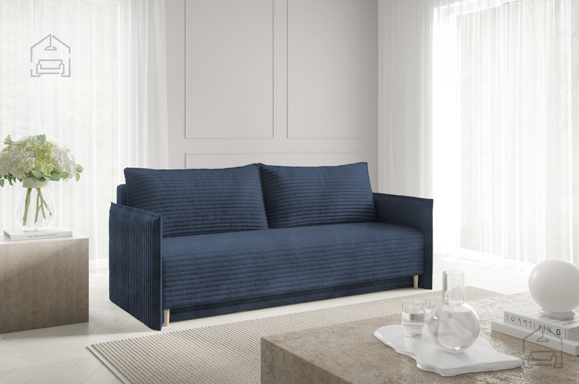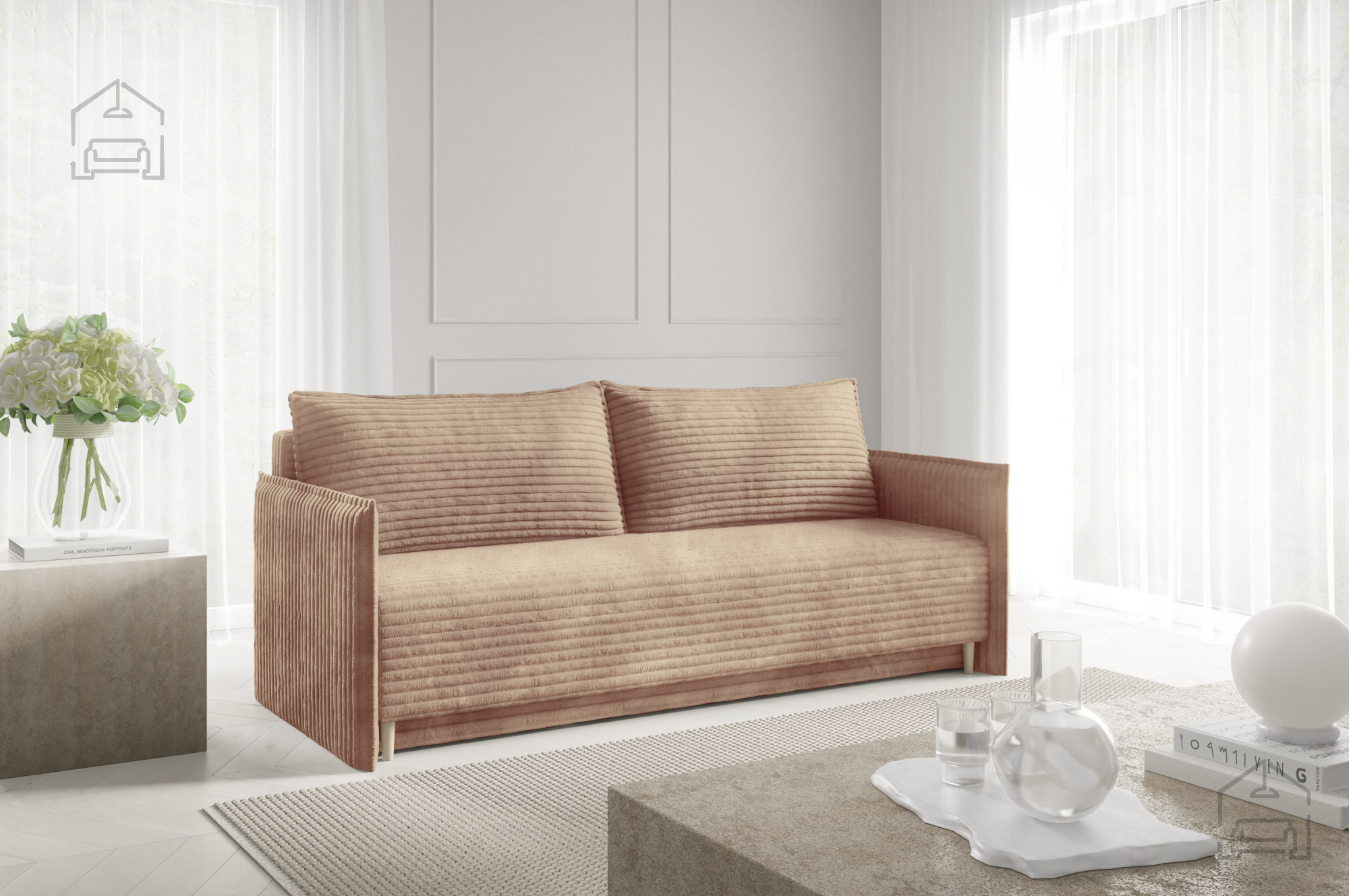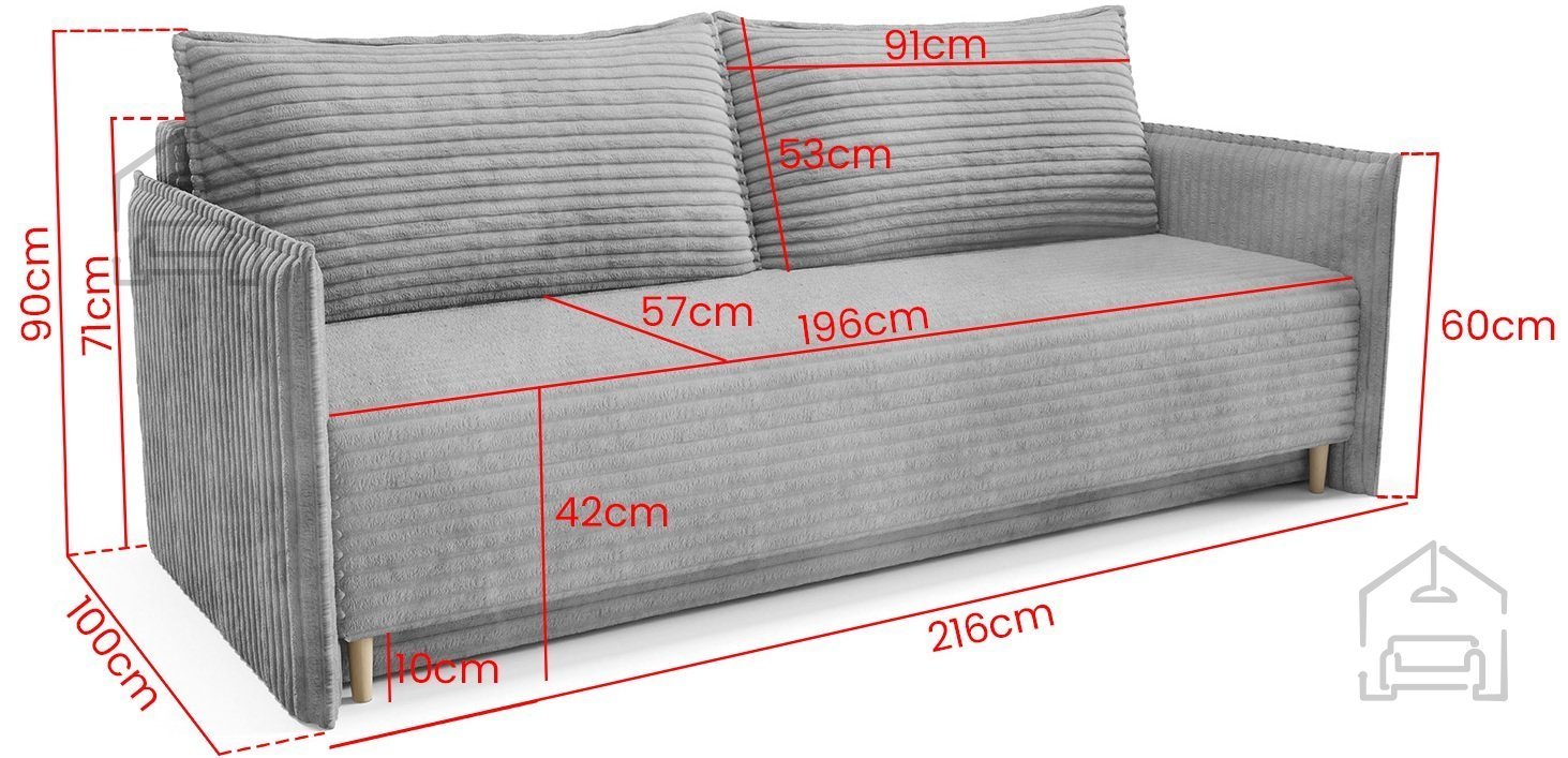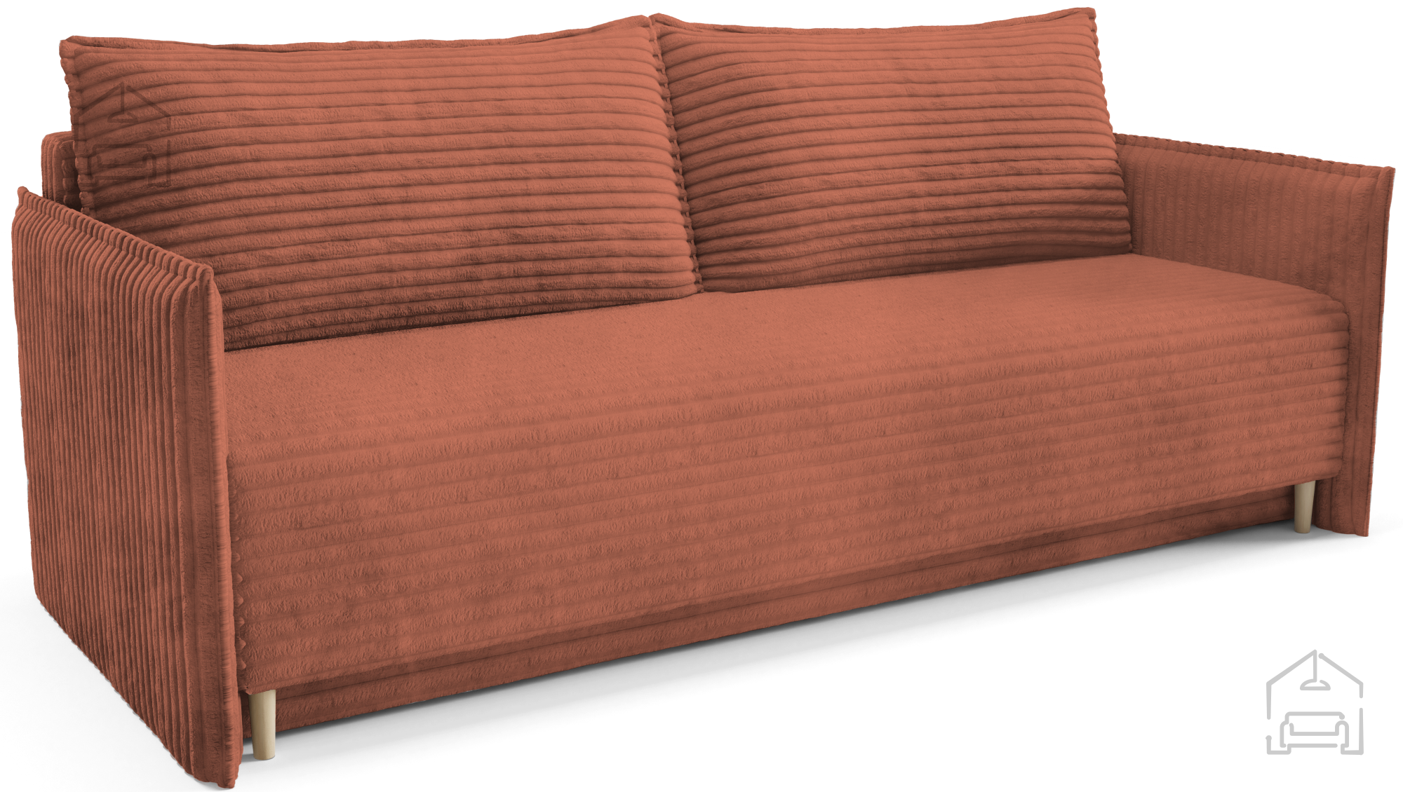 Trosed Nubis je izdelek poljskega proizvajalca PKMebel, ki združuje klasično udobje in praktično funkcionalnost v enem kosu pohištva. S svojimi dimenzijami 216x100x90 cm ponuja ravno prav prostora za sprostitev podnevi in udoben spanec ponoči. Zaradi enostavnega mehanizma Euro se trosed hitro spremeni v ležišče z ležalno površino 144x196 cm, kar je idealno za občasno prenočevanje ali počitek. Okvir iz kakovostnega lesa in polnilo iz pene zagotavljata stabilnost, elastičnost ter dolgo življenjsko dobo. Največja dovoljena obremenitev znaša 160 kg.