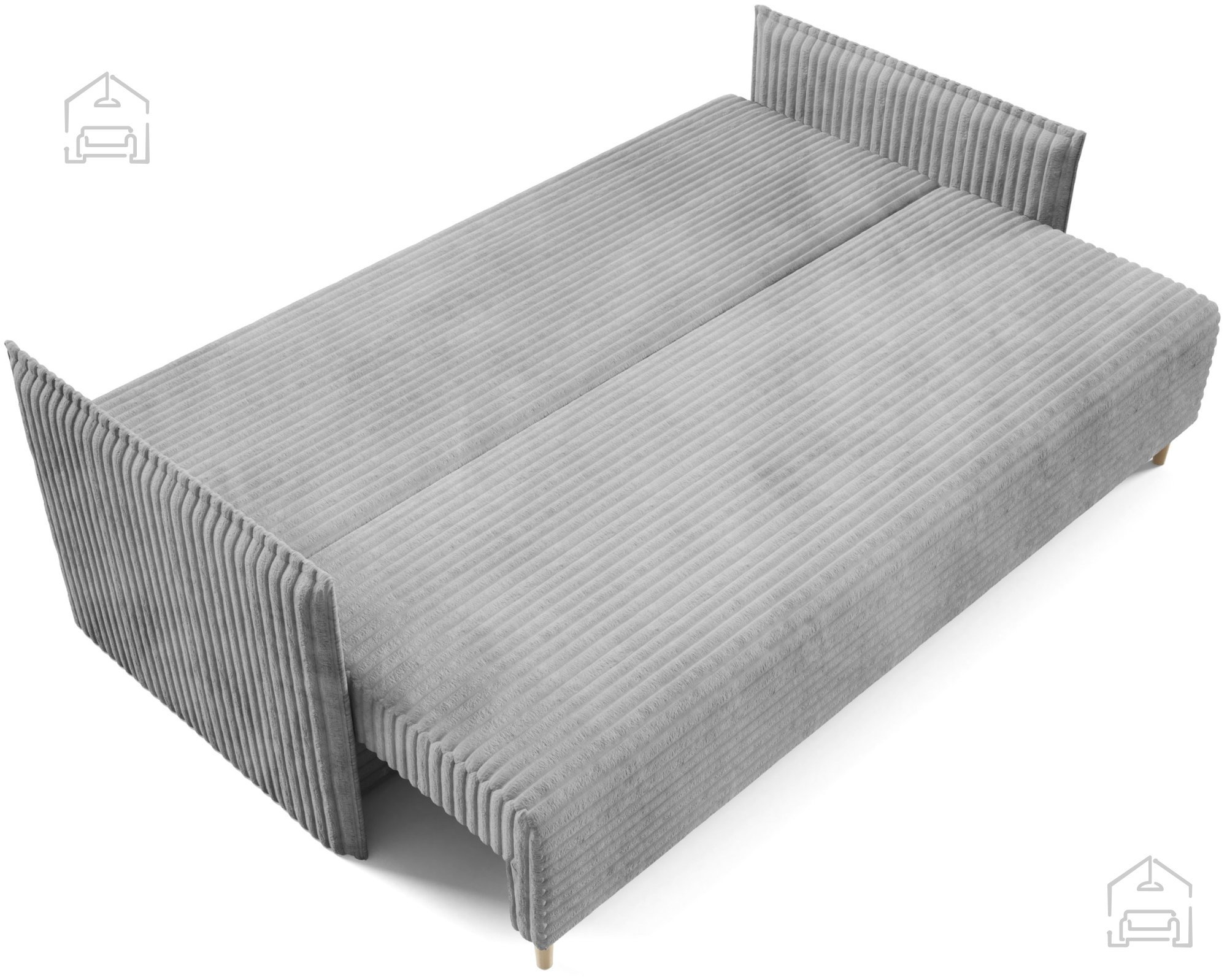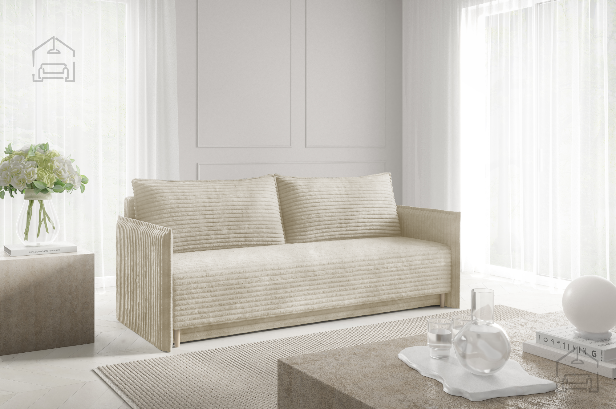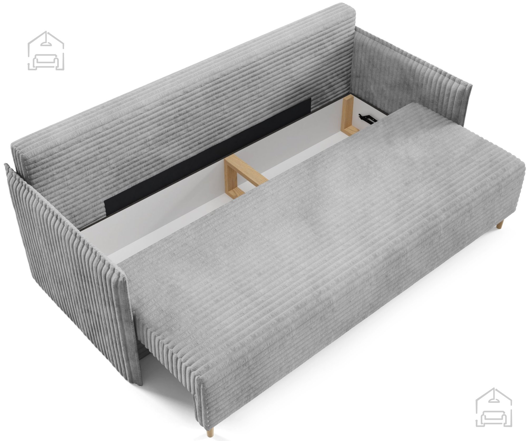 Trosed Nubis je izdelek poljskega proizvajalca PKMebel, ki združuje klasično udobje in praktično funkcionalnost v enem kosu pohištva. S svojimi dimenzijami 216x100x90 cm ponuja ravno prav prostora za sprostitev podnevi in udoben spanec ponoči. Zaradi enostavnega mehanizma Euro se trosed hitro spremeni v ležišče z ležalno površino 144x196 cm, kar je idealno za občasno prenočevanje ali počitek. Okvir iz kakovostnega lesa in polnilo iz pene zagotavljata stabilnost, elastičnost ter dolgo življenjsko dobo. Največja dovoljena obremenitev znaša 160 kg.
