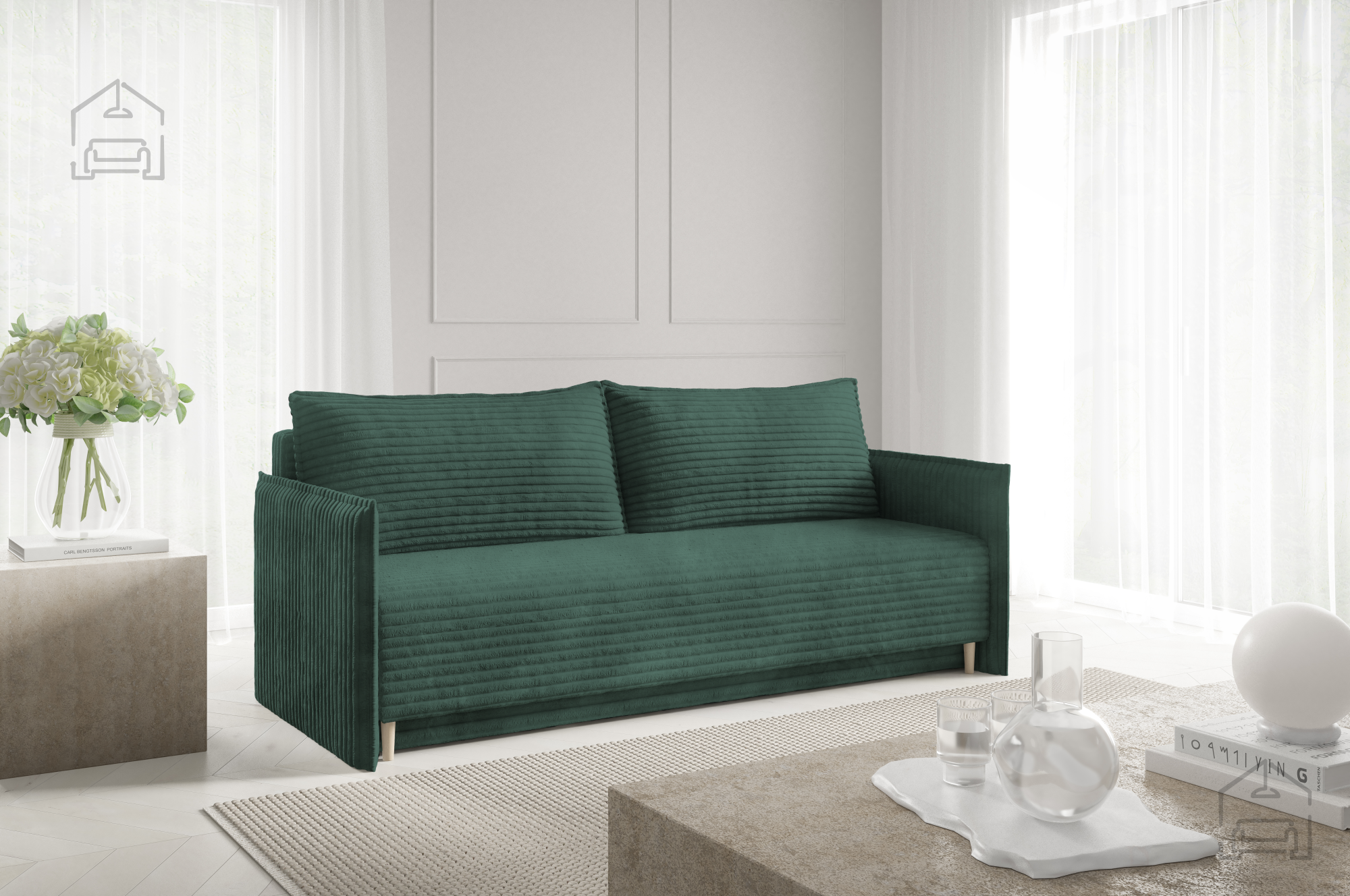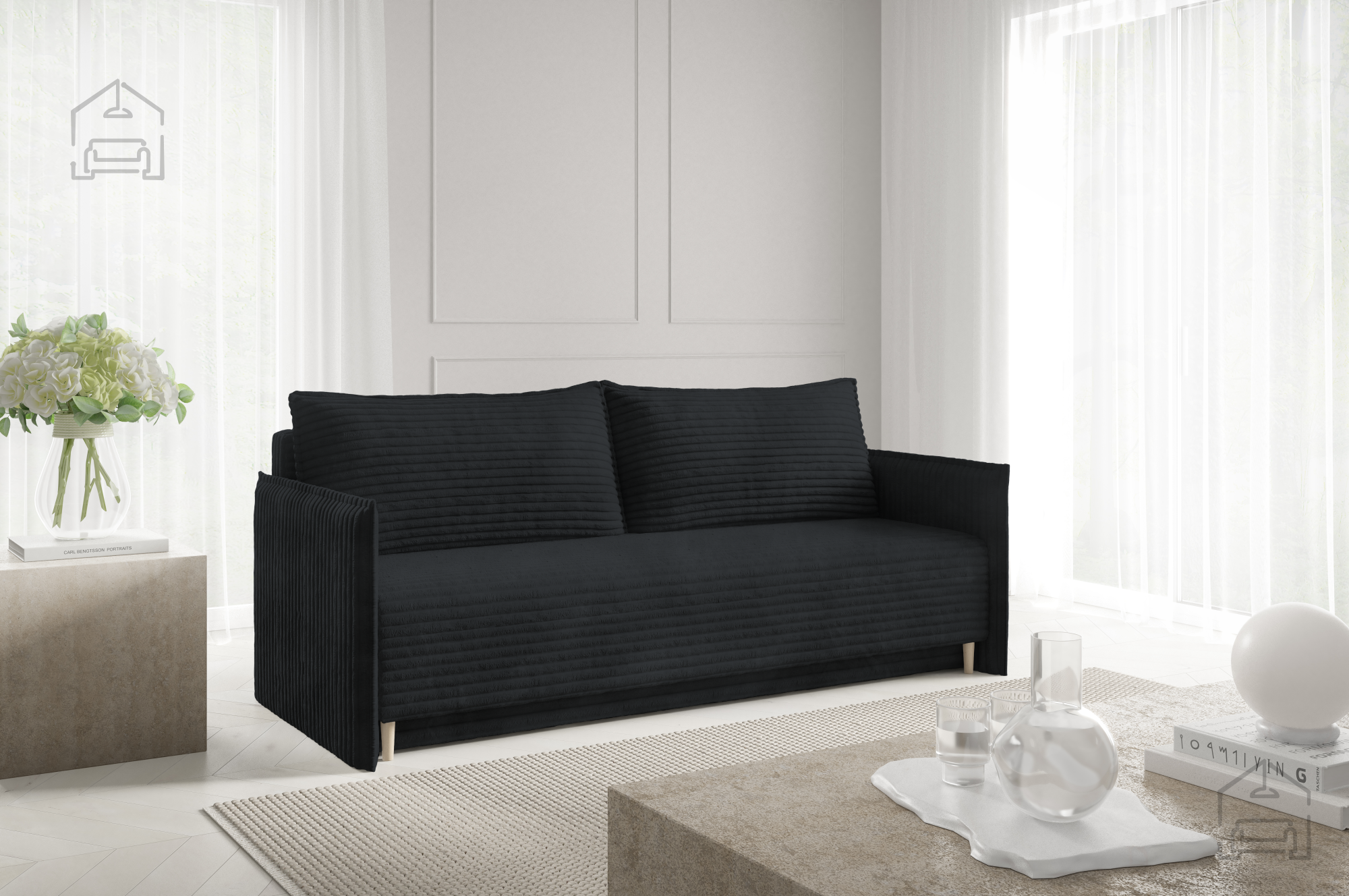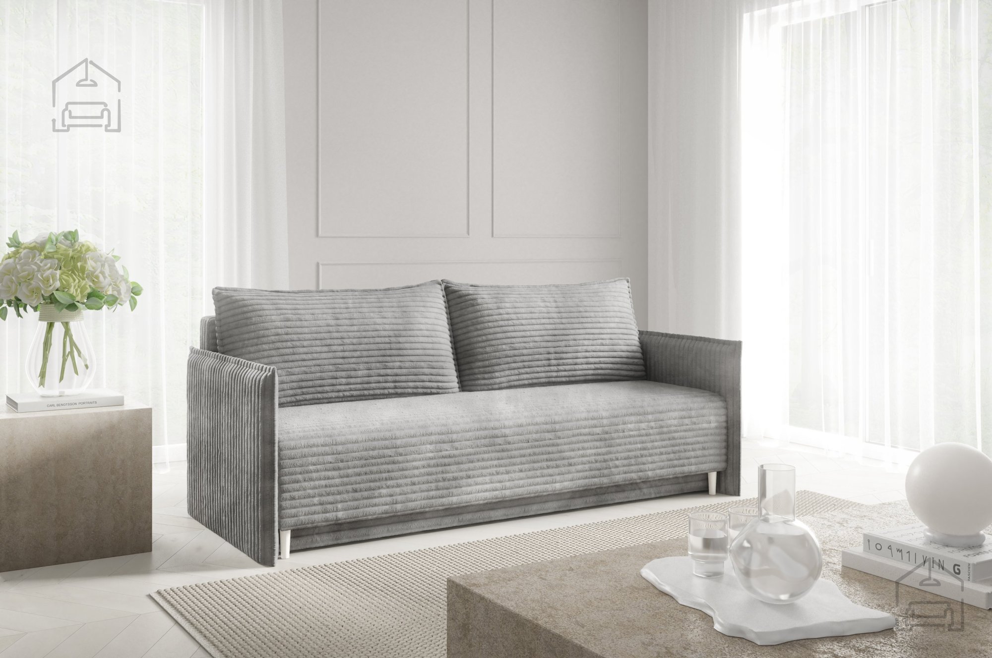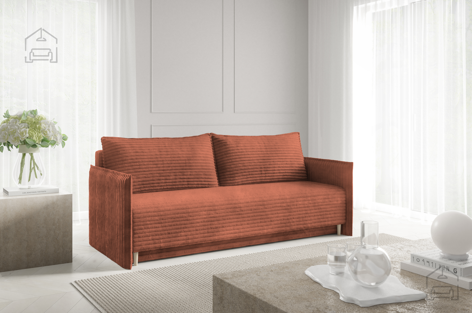 Trosed Nubis je izdelek poljskega proizvajalca PKMebel, ki združuje klasično udobje in praktično funkcionalnost v enem kosu pohištva. S svojimi dimenzijami 216x100x90 cm ponuja ravno prav prostora za sprostitev podnevi in udoben spanec ponoči. Zaradi enostavnega mehanizma Euro se trosed hitro spremeni v ležišče z ležalno površino 144x196 cm, kar je idealno za občasno prenočevanje ali počitek. Okvir iz kakovostnega lesa in polnilo iz pene zagotavljata stabilnost, elastičnost ter dolgo življenjsko dobo. Največja dovoljena obremenitev znaša 160 kg.