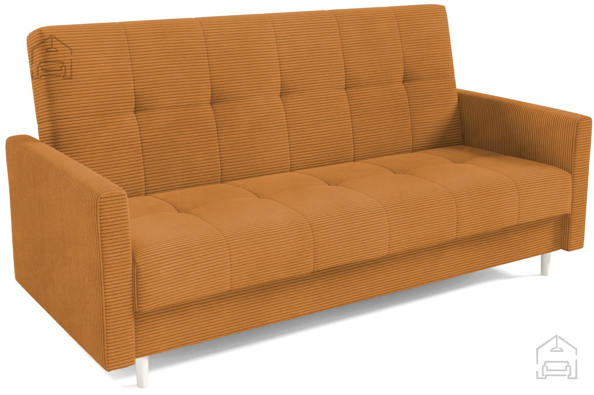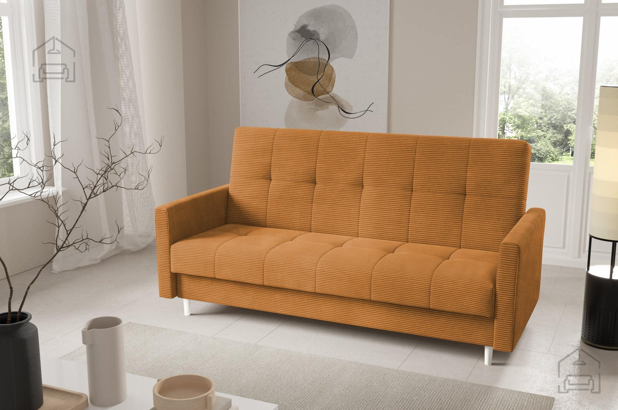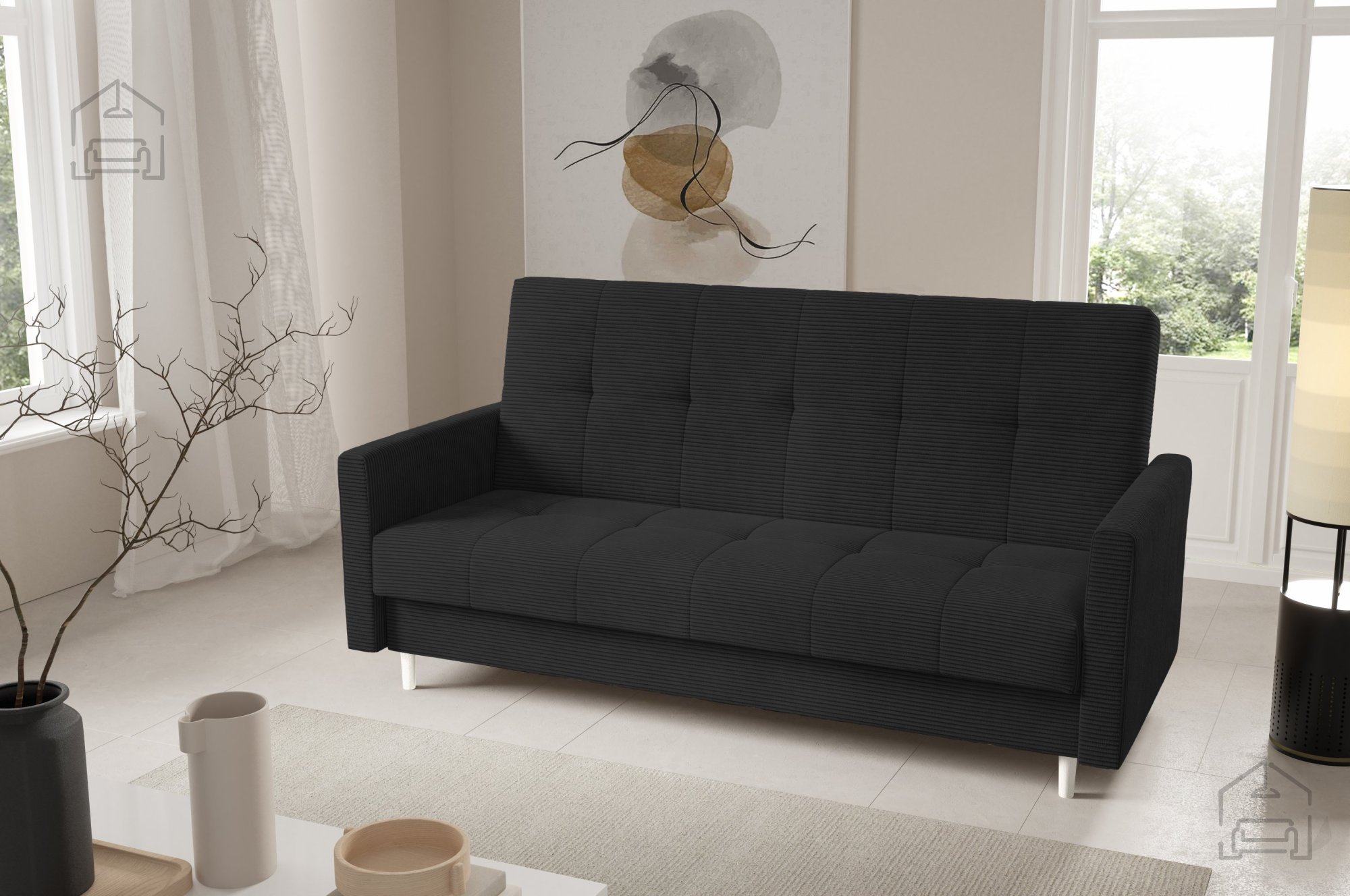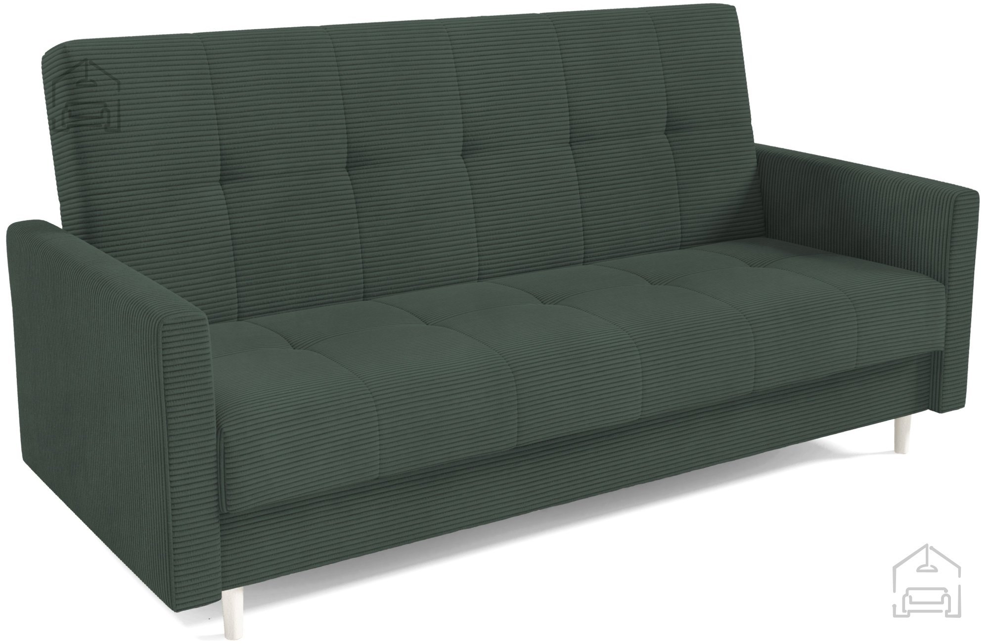 Poleg funkcije spanja ima trosed tudi prostoren predal za posteljnino, ki se nahaja pod sedalnim delom. Ta praktična rešitev omogoča shranjevanje odej, vzglavnikov ali drugih tekstilnih dodatkov, s čimer ohranja red in čist videz prostora. Predal je enostavno dostopen in ne zahteva posebnega napora pri odpiranju.
