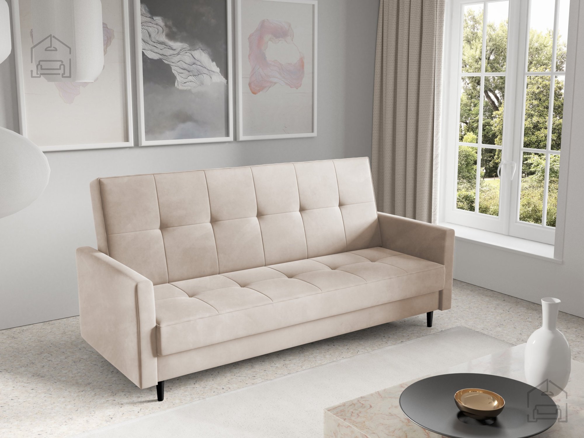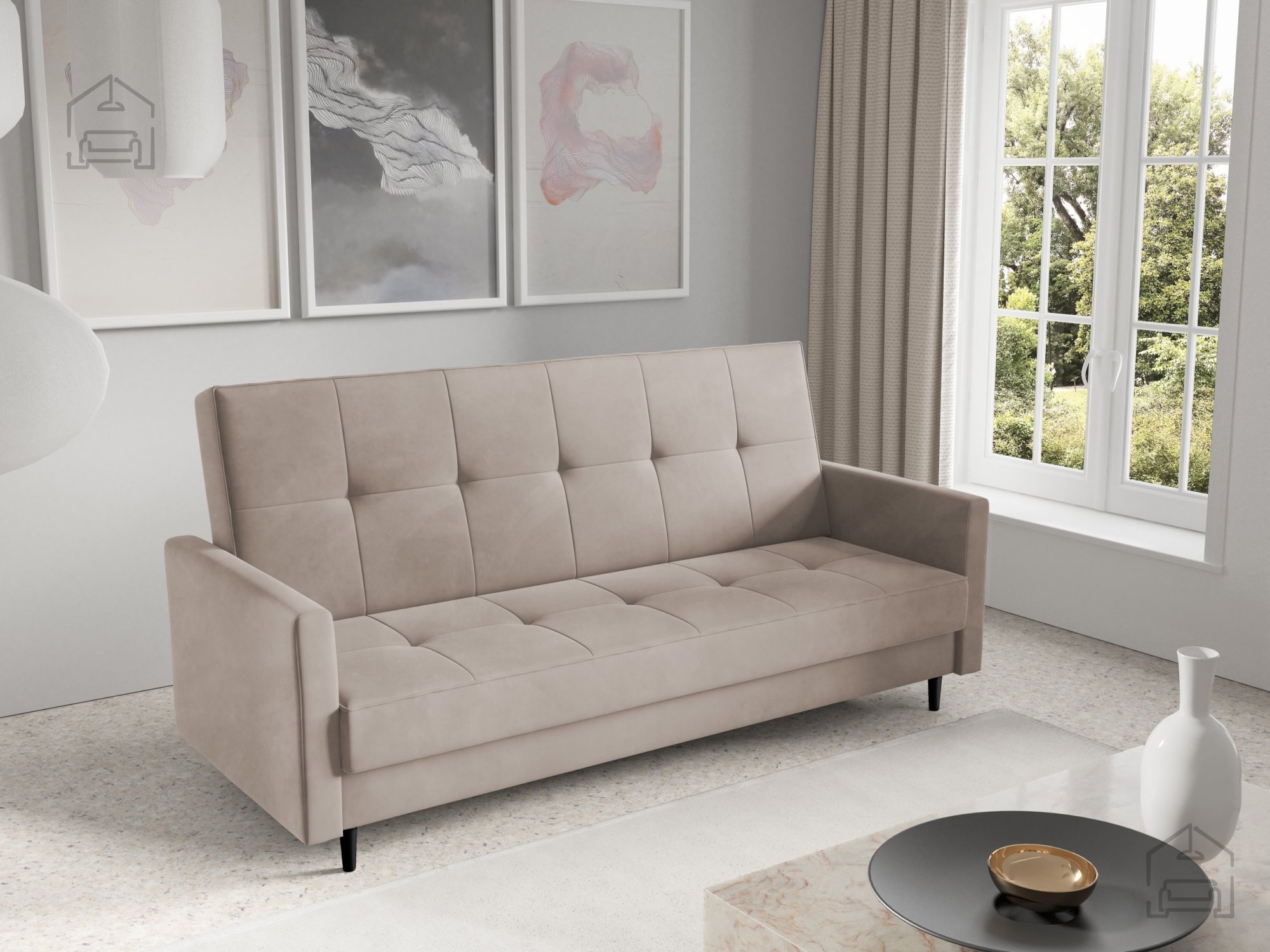 Trosed Kari – PKMebel je odlična izbira za vse, ki iščejo praktično, udobno in estetsko sedežno rešitev za svoj dom. Njegova enostavna pretvorba v ležišče, kakovostni materiali in minimalističen dizajn zagotavljajo, da bo dolgo ostal središče vašega dnevnega prostora.