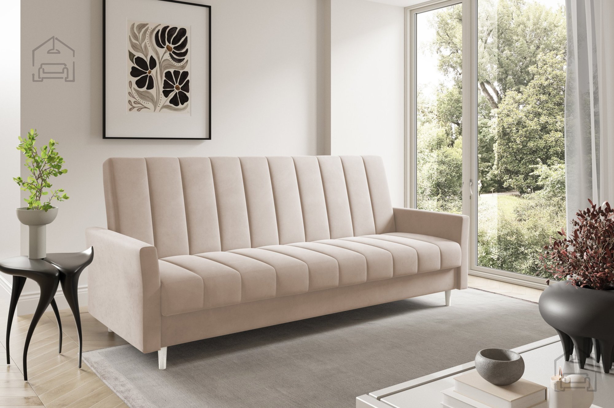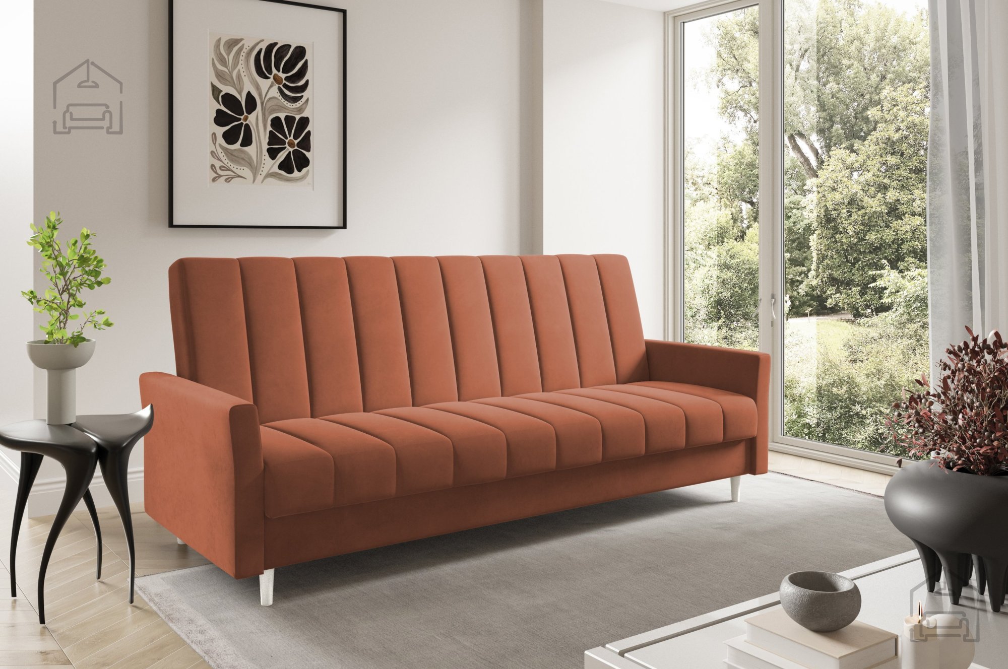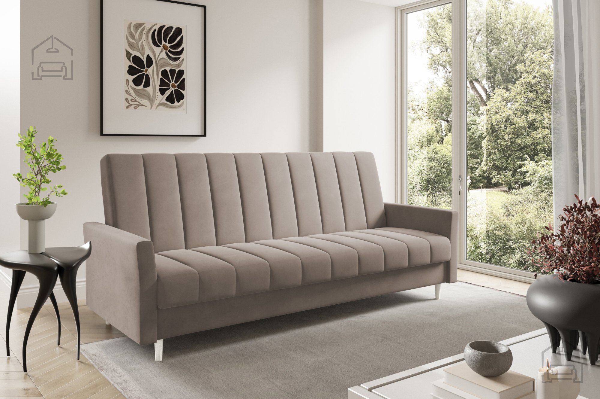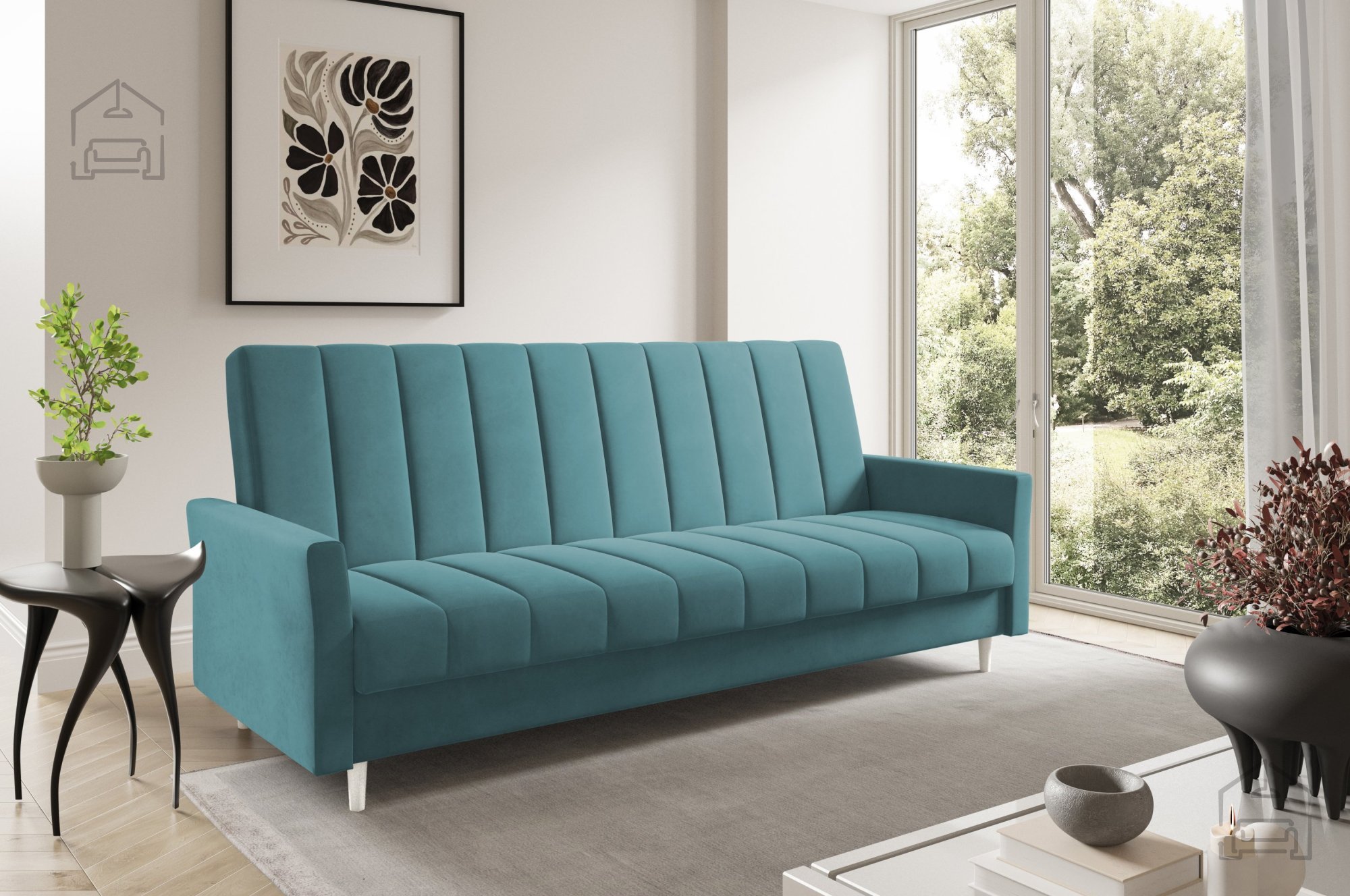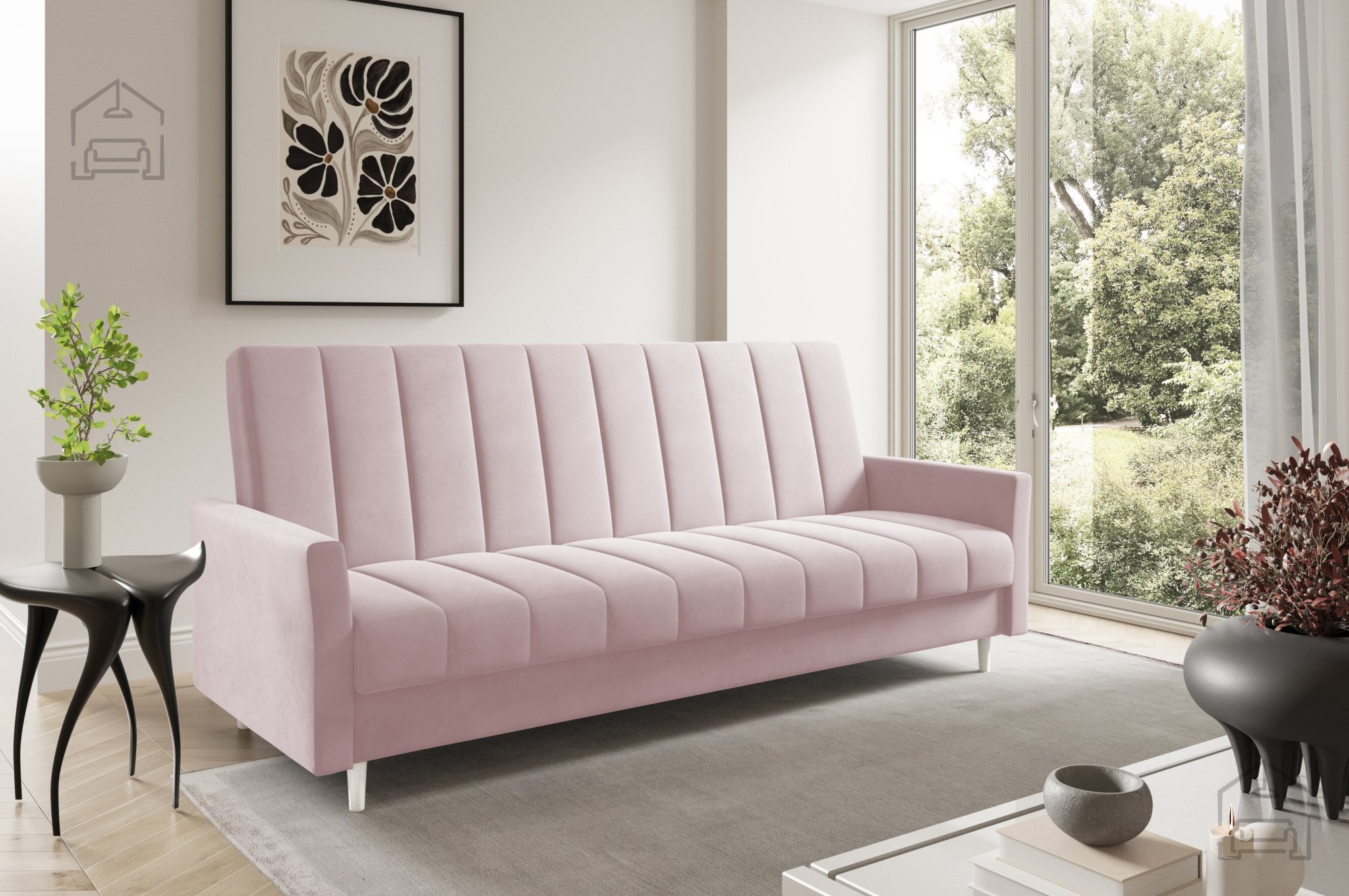 Trosed Sara – PKMebel je odlična izbira za vse, ki iščejo praktično, udobno in estetsko sedežno rešitev za svoj dom. Njegova enostavna pretvorba v ležišče, kakovostni materiali in minimalističen dizajn zagotavljajo, da bo dolgo ostal središče vašega dnevnega prostora.