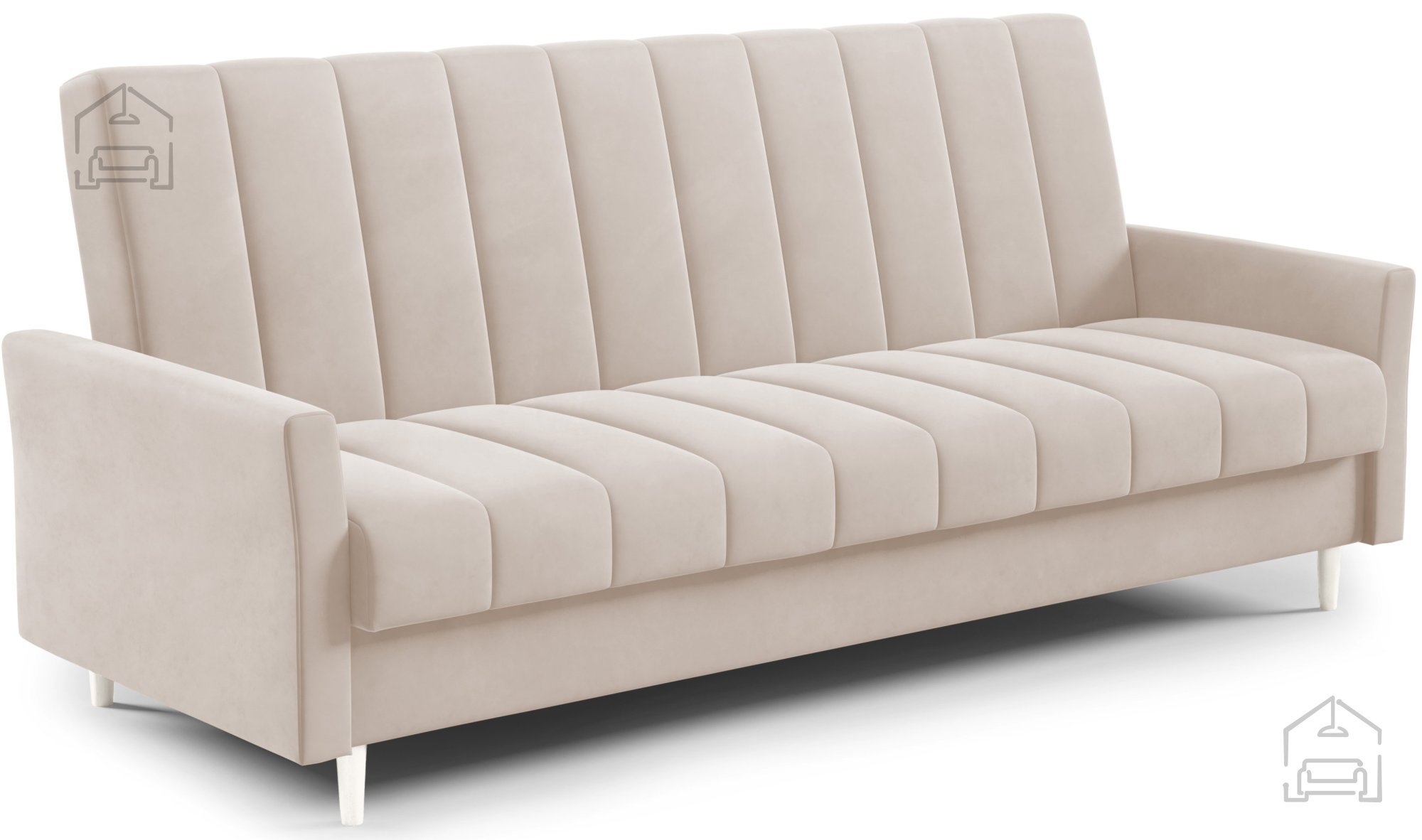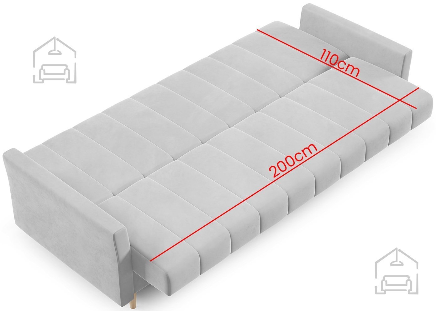 Glavna prednost modela Sara je funkcija spanja. Ležalna površina 110x200 cm omogoča kakovosten počitek za eno ali dve osebi. Mehanizem Euro (klik klak) omogoča, da se naslonjalo hitro zloži v vodoraven položaj. Poleg tega ima trosed tudi vgrajen predal za posteljnino, v katerega lahko shranite odeje, blazine ali rjuhe. Ta funkcionalnost je izjemno praktična, še posebej v manjših stanovanjih, kjer šteje vsak centimeter prostora.