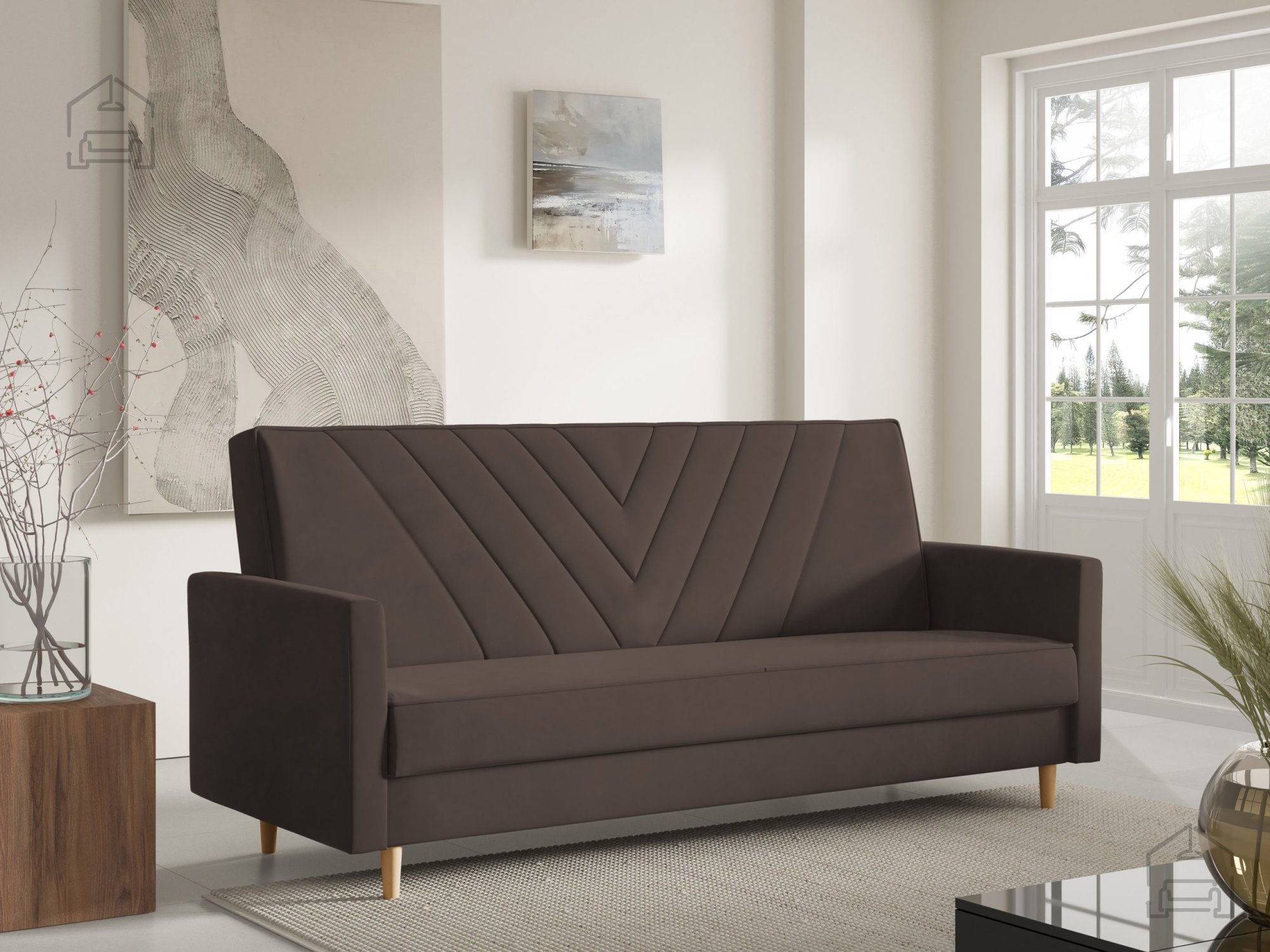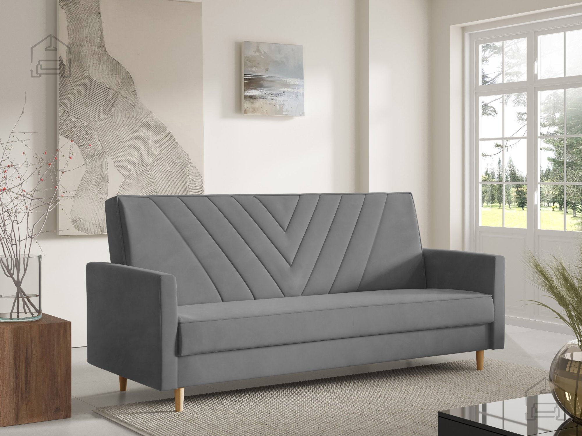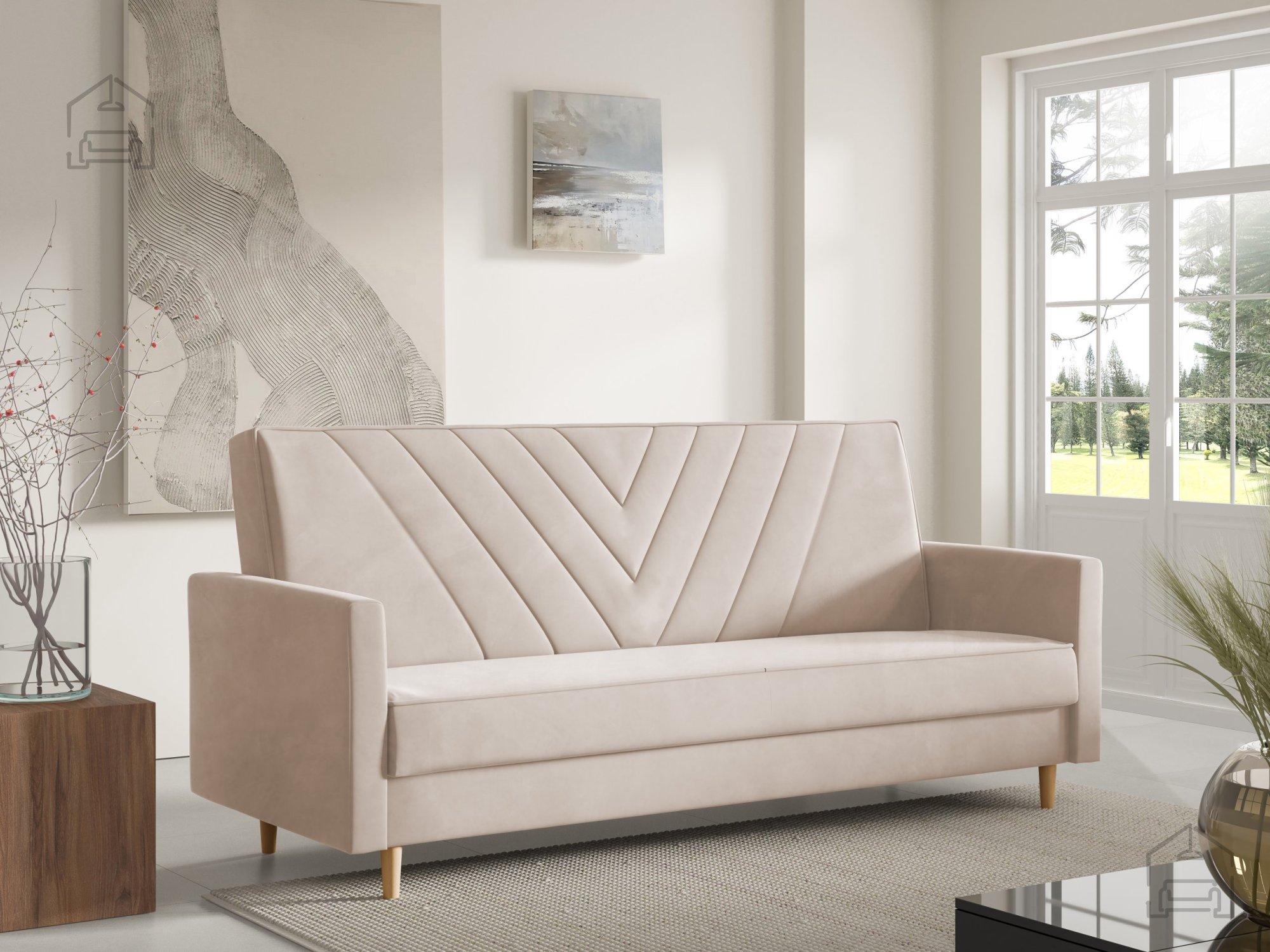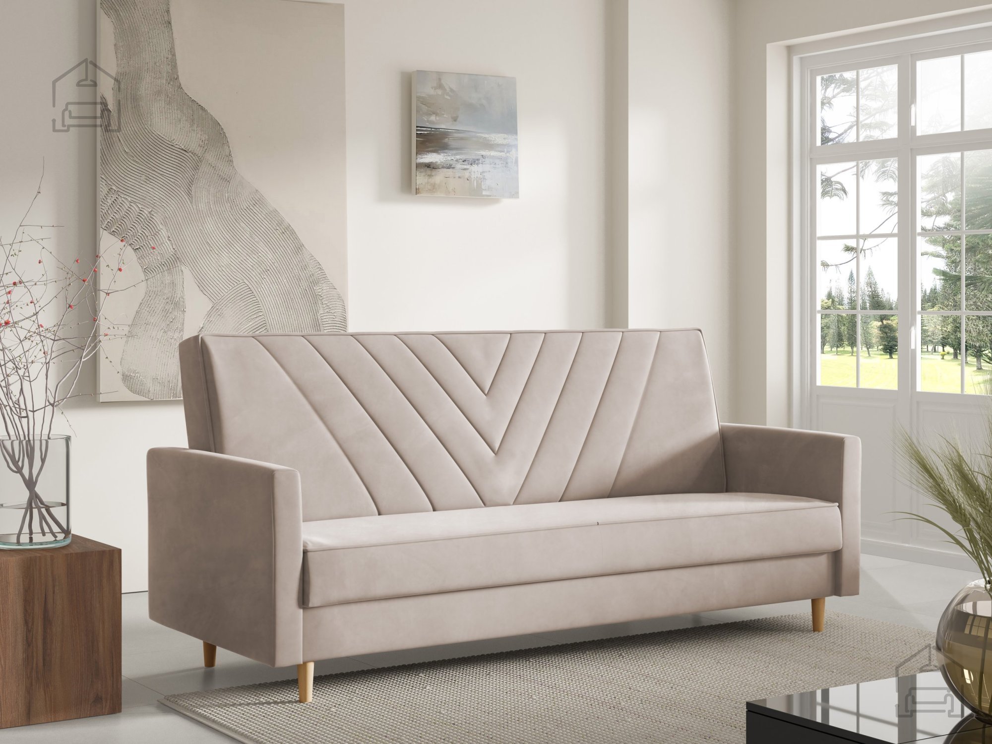 Sven je zasnovan s preprostimi, a prefinjenimi linijami. Izbirate lahko med različnimi nobarvnimi izvedbami nogic – naravna, bela ali črna – kar omogoča dodatno prilagoditev videza vašemu prostoru. Zaradi prečiščene oblike in kompaktnih mer se trosed lepo prilega v dnevne sobe, garsonjere ali sobe za goste.