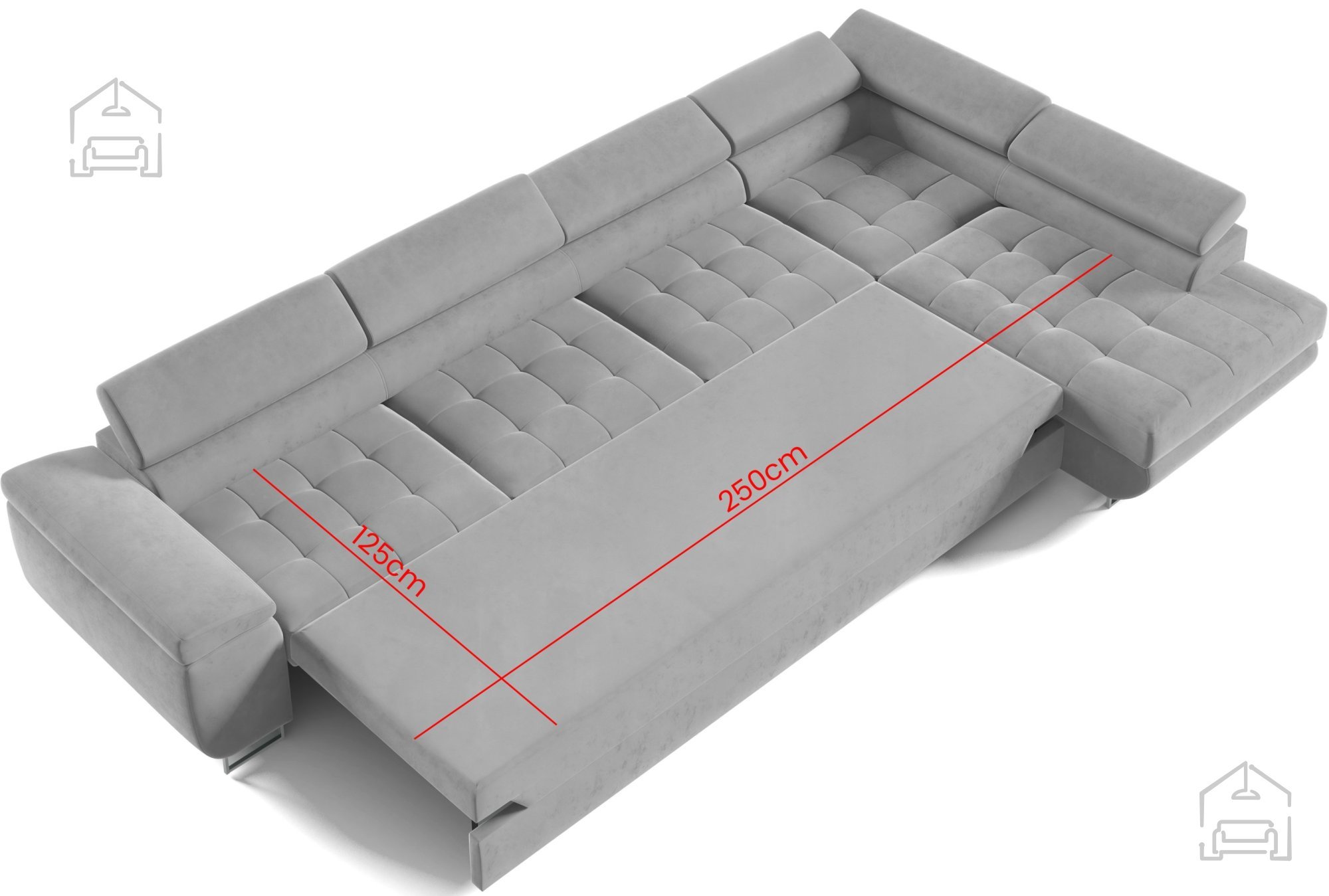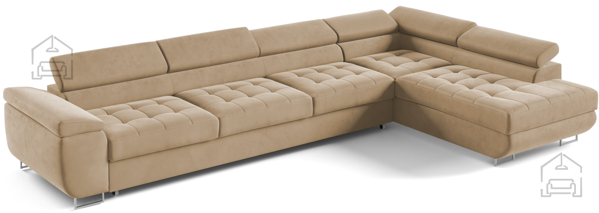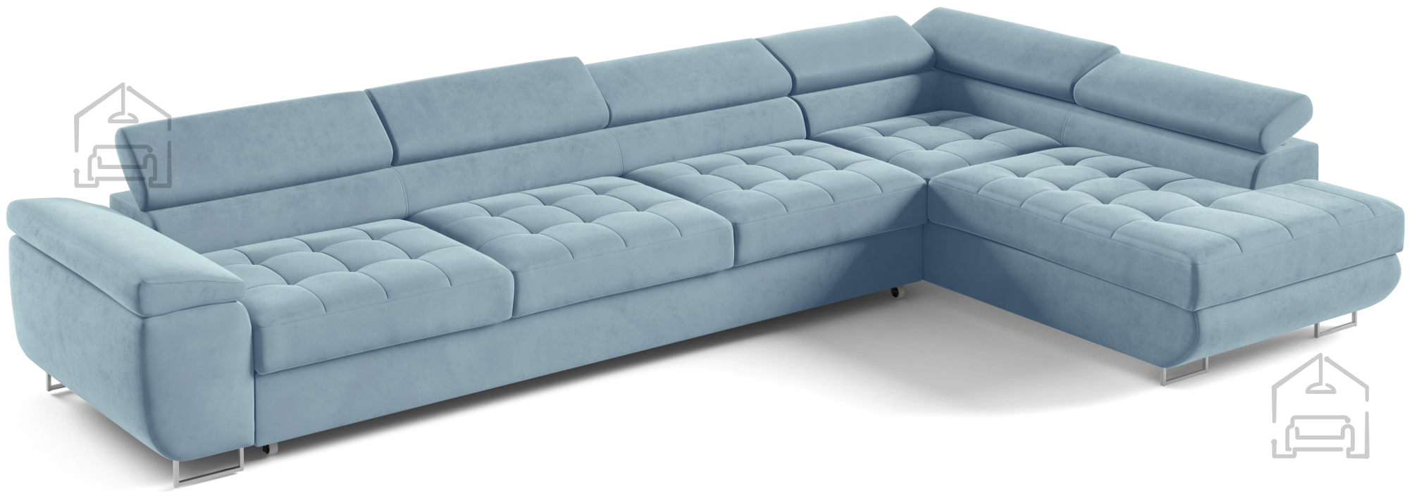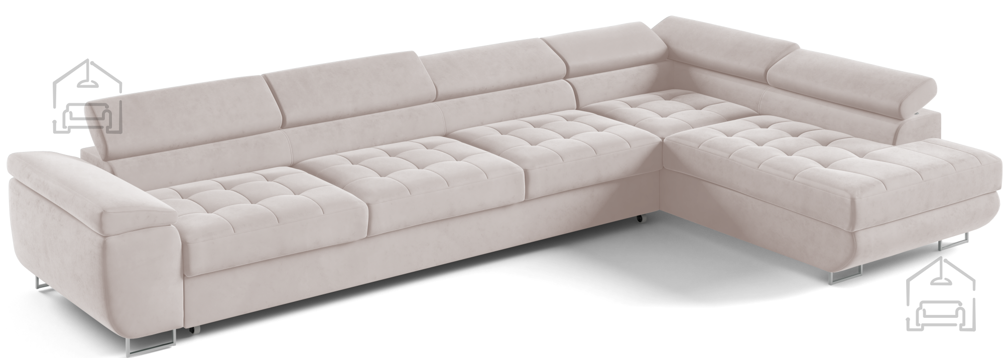Pri vsakodnevni uporabi dodatno udobje zagotavljajo nastavljivi vzglavniki, ki omogočajo individualno prilagajanje višine in naklona. Tako lahko vsak uporabnik poišče svoj idealen položaj za sprostitev, gledanje televizije ali branje. Garnitura je zasnovana z mislijo na praktičnost, zato vključuje tudi prostoren predal za posteljnino, kamor lahko shranite odeje, blazine ali druge dodatke. To je še posebej priročno v manjših stanovanjih, kjer je vsak dodaten prostor za shranjevanje dobrodošel.