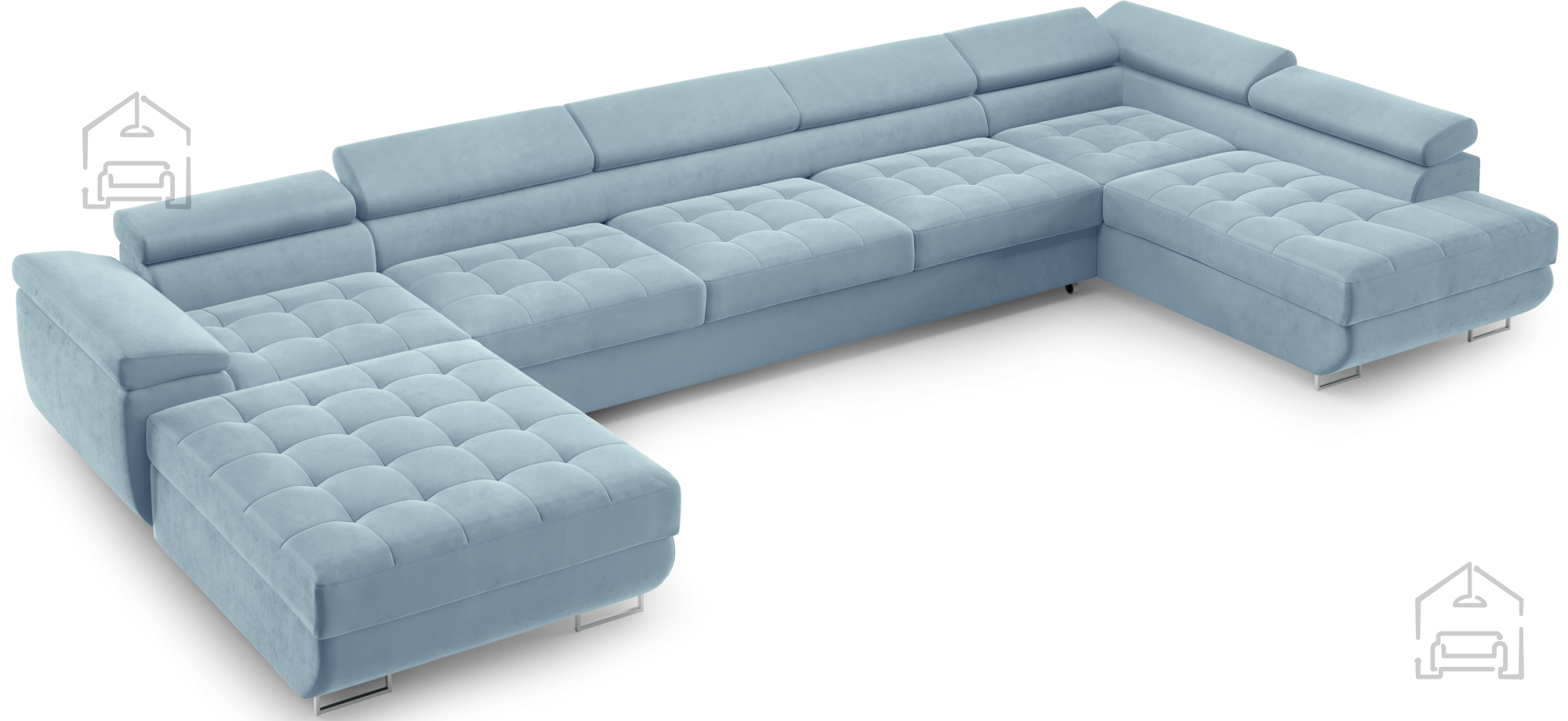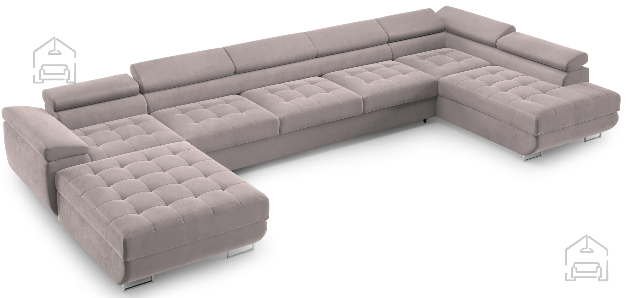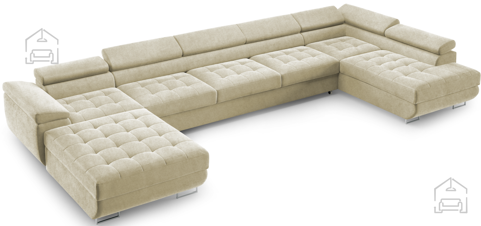 Vzmetno jedro tipa Wave Spring skrbi, da se sedež ne ugreza in da udobje ostane enakomerno porazdeljeno. Pena nad vzmetmi dodaja mehkobo, kar zagotavlja prijeten občutek pri sedenju in ležanju. Nastavljivi vzglavniki omogočajo ergonomsko podporo vratu in glavi, kar dodatno poveča uporabno vrednost garniture. Vse to skupaj ustvarja kos pohištva, ki ni le estetsko dovršen, temveč tudi izjemno praktičen za vsakodnevno uporabo.