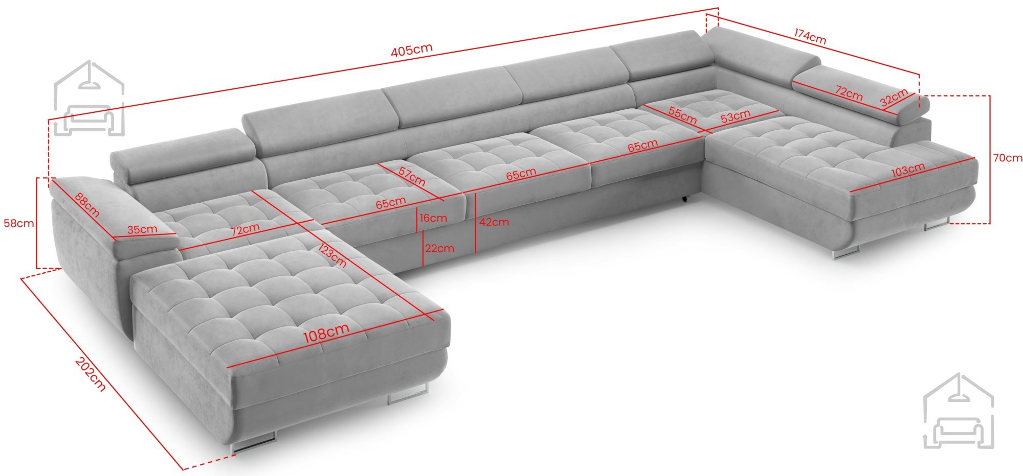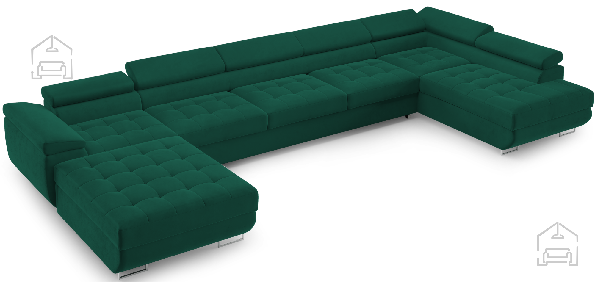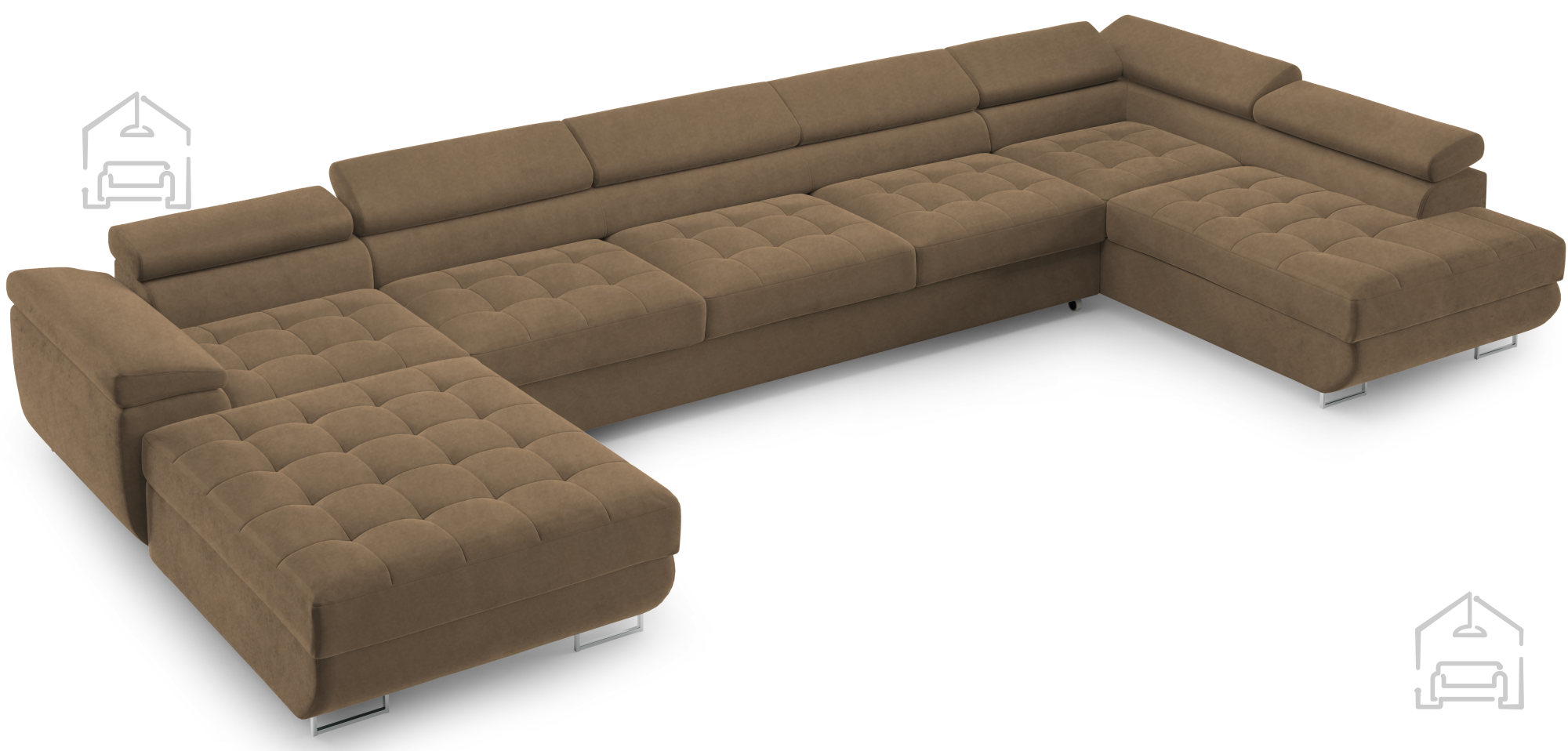 Vzmetno jedro tipa Wave Spring skrbi, da se sedež ne ugreza in da udobje ostane enakomerno porazdeljeno. Pena nad vzmetmi dodaja mehkobo, kar zagotavlja prijeten občutek pri sedenju in ležanju. Nastavljivi vzglavniki omogočajo ergonomsko podporo vratu in glavi, kar dodatno poveča uporabno vrednost garniture. Vse to skupaj ustvarja kos pohištva, ki ni le estetsko dovršen, temveč tudi izjemno praktičen za vsakodnevno uporabo.