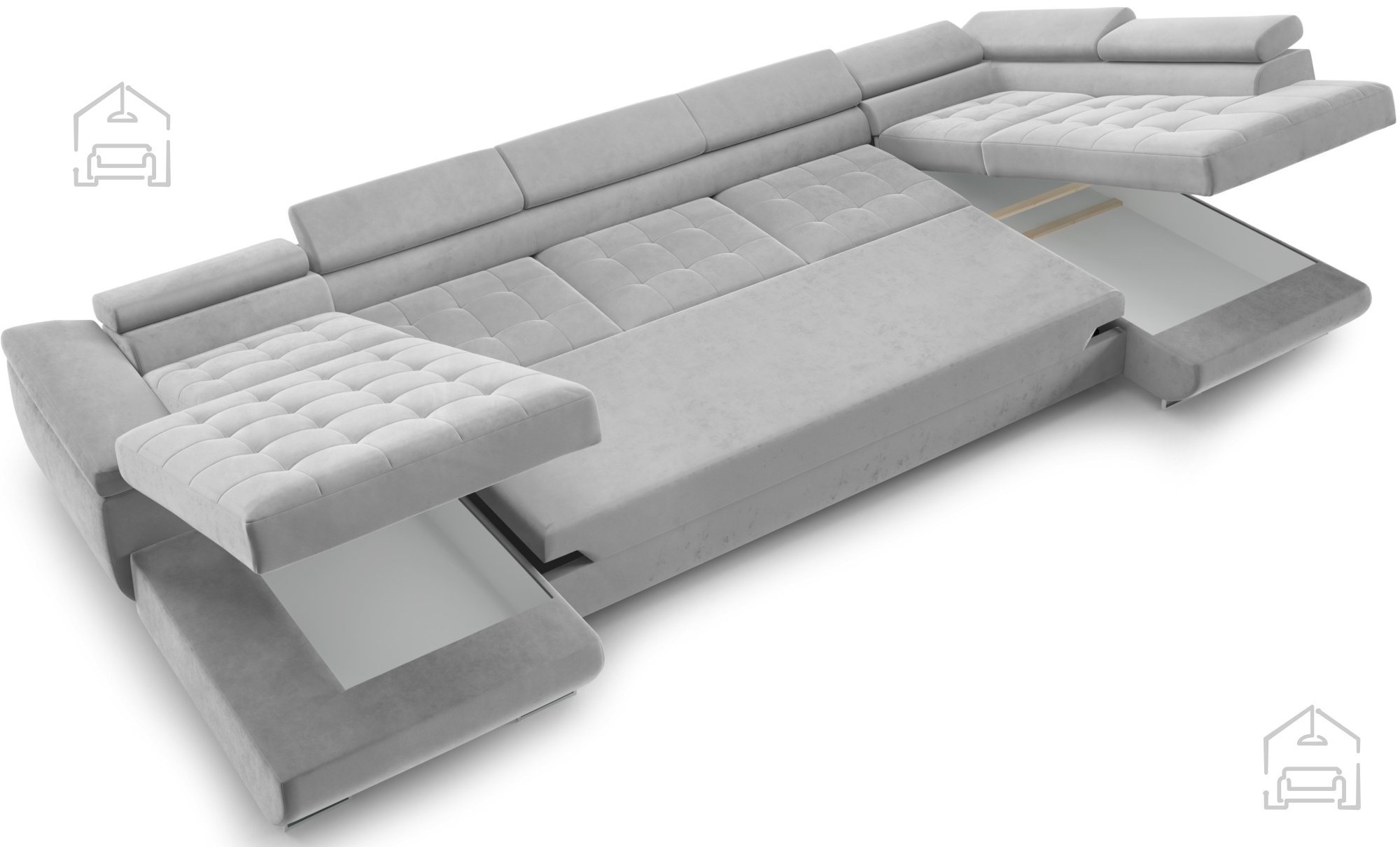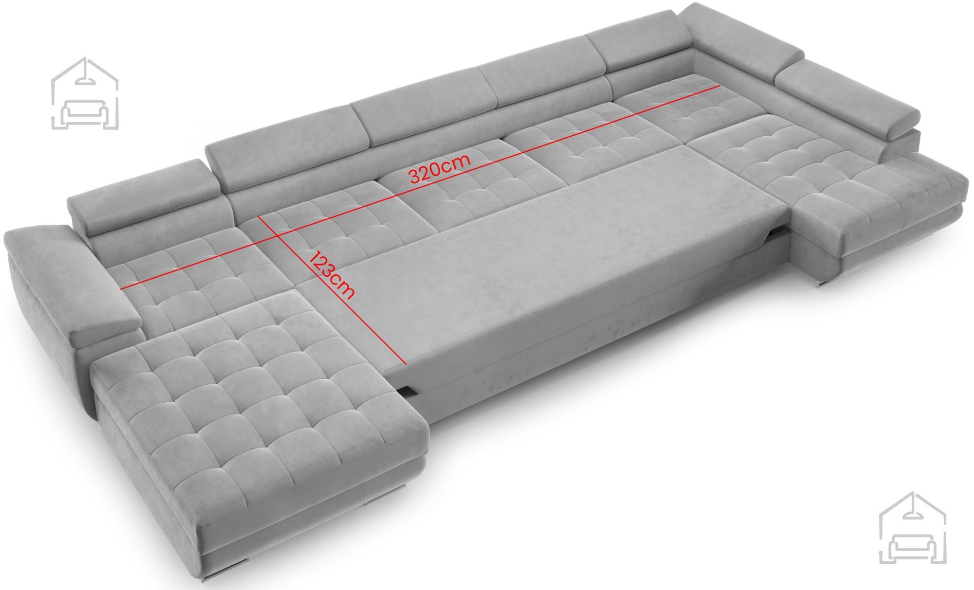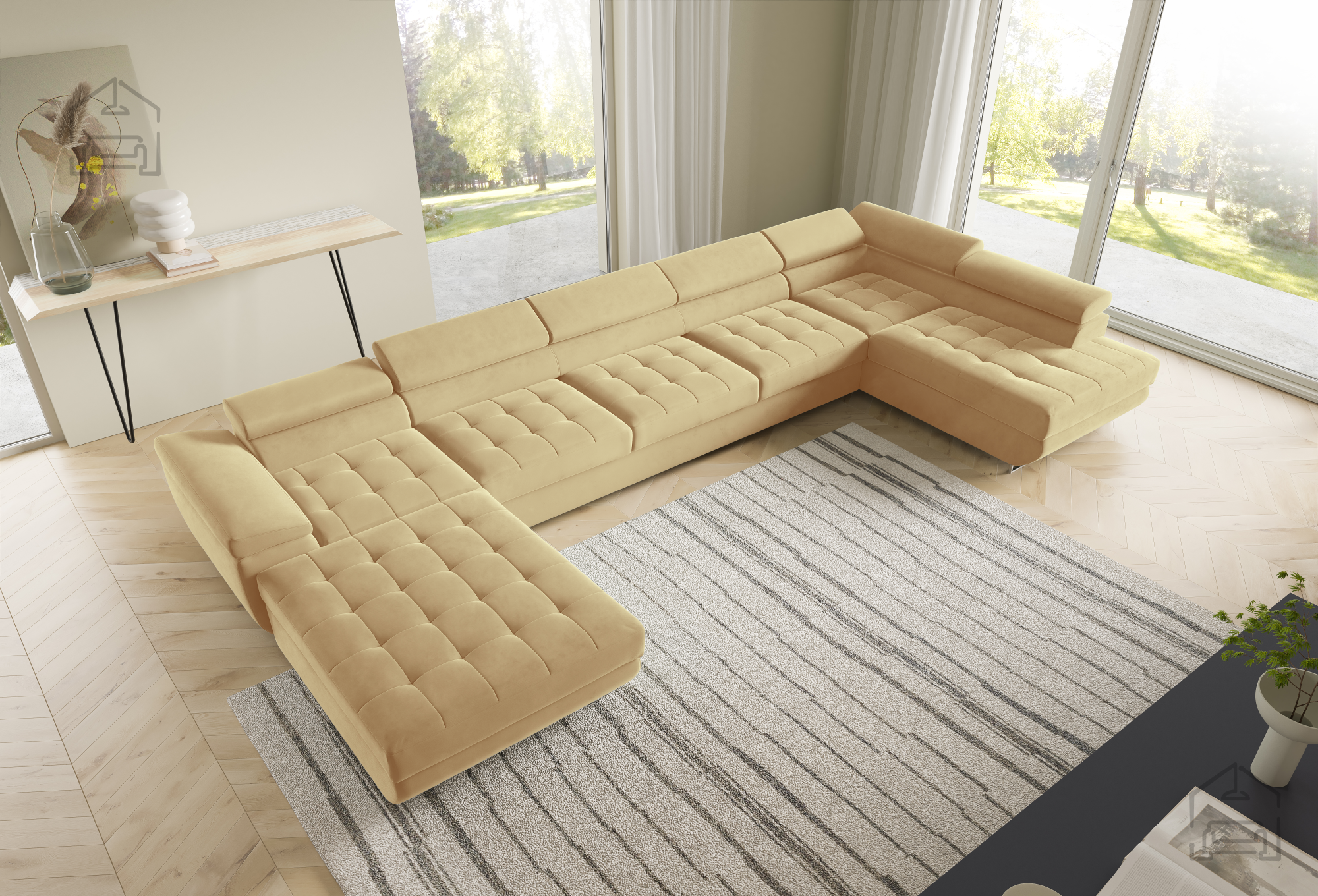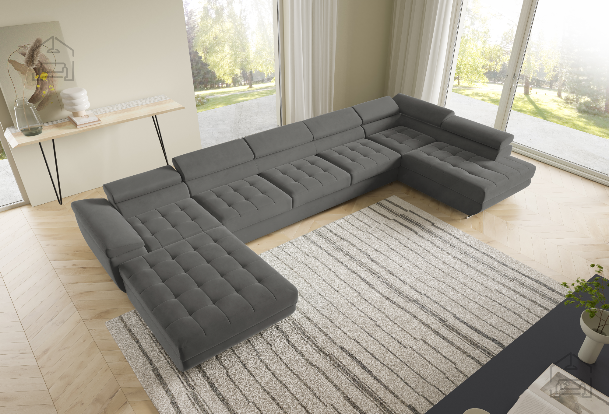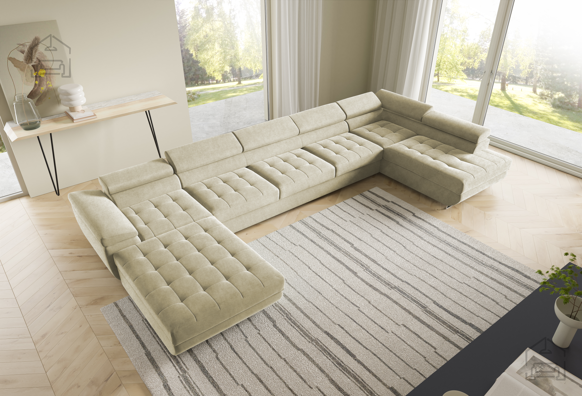 Sedežna garnitura v U obliki Benjamin 275 XL – PKMebel združuje funkcionalnost, estetiko in kakovostno izdelavo. S svojo premišljeno zasnovo, naprednim mehanizmom Dolphin ter prostornim ležiščem predstavlja idealno izbiro za sodobne domove, kjer udobje in slog hodita z roko v roki.