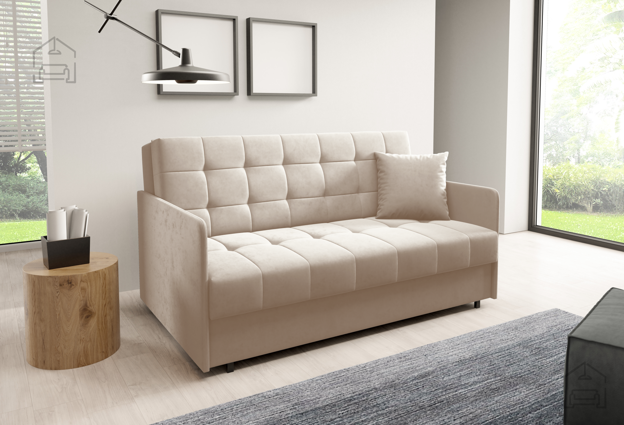 Elegantni dvosed Sally 4 znamke PKMebel združuje funkcionalnost, udobje in preprosto preoblikovanje v ležišče. Ta model je bil zasnovan kot popolna rešitev za manjše prostore, mladinske sobe ali gostinske apartmaje, kjer je pomembna vsaka podrobnost. Zahvaljujoč teleskopskemu mehanizmu se Sally 4 enostavno spremeni v udobno posteljo s površino za spanje 150x196 cm, kar omogoča prijeten počitek za dve osebi.