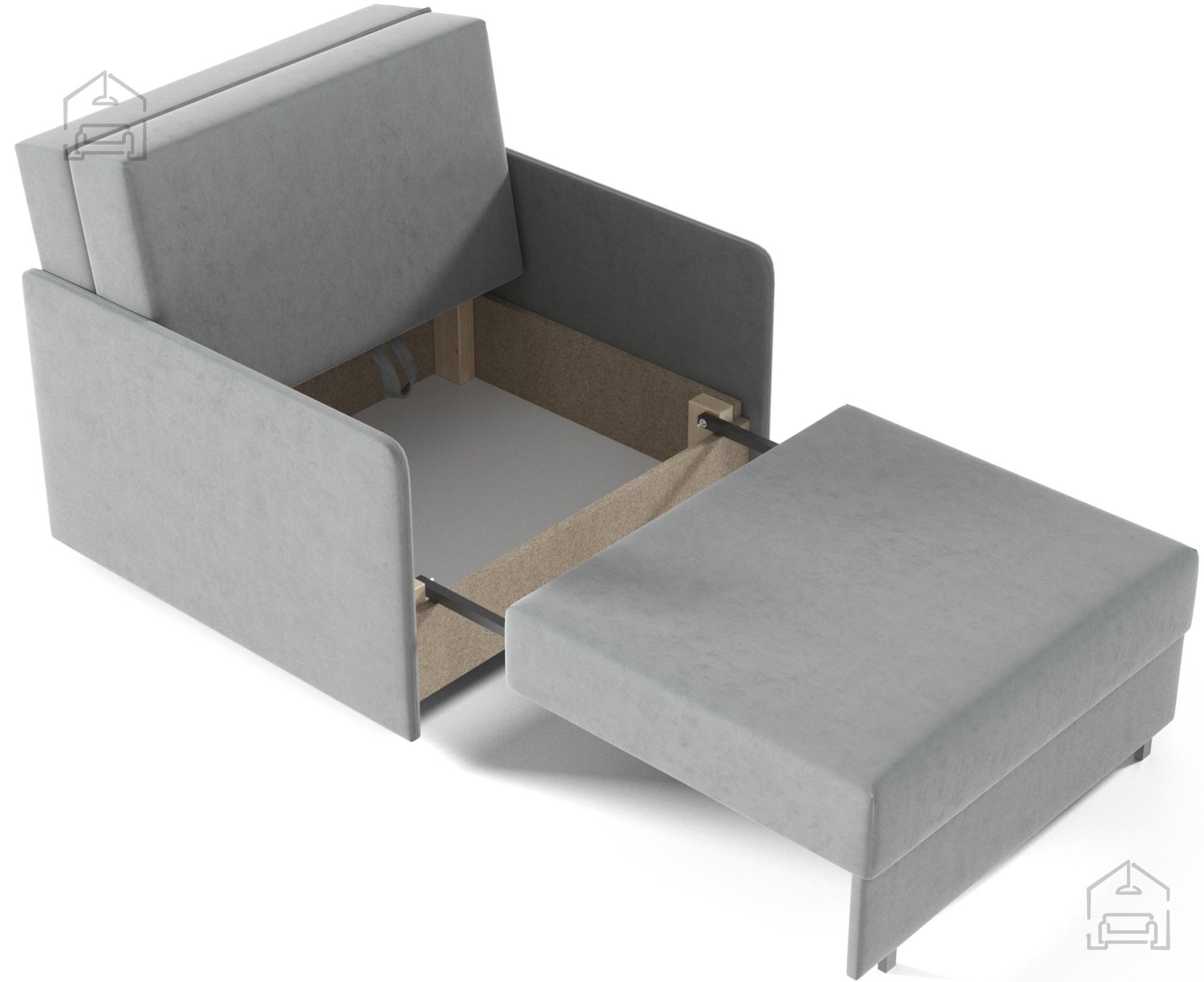 Okvir dvoseda je izdelan iz trpežnega lesa, kar zagotavlja stabilnost in dolgo življenjsko dobo. Sedežni del dopolnjuje pena v kombinaciji z valovitim vzmetnim jedrom (Wave Spring), ki skupaj poskrbita za optimalno podporo telesu in udobno sedenje. Takšna konstrukcija ohranja obliko sedežne površine tudi po daljši uporabi in preprečuje posedanje.
