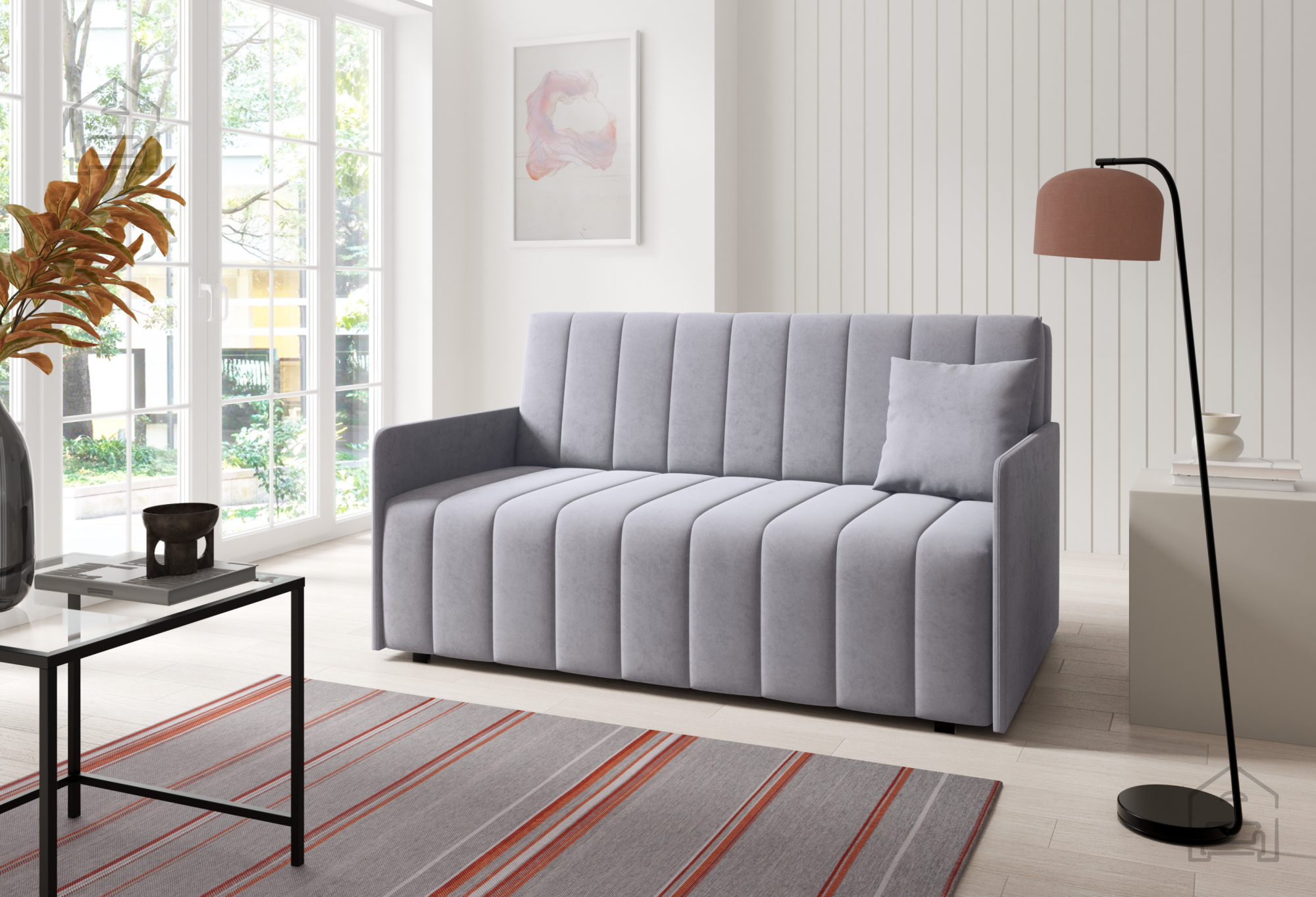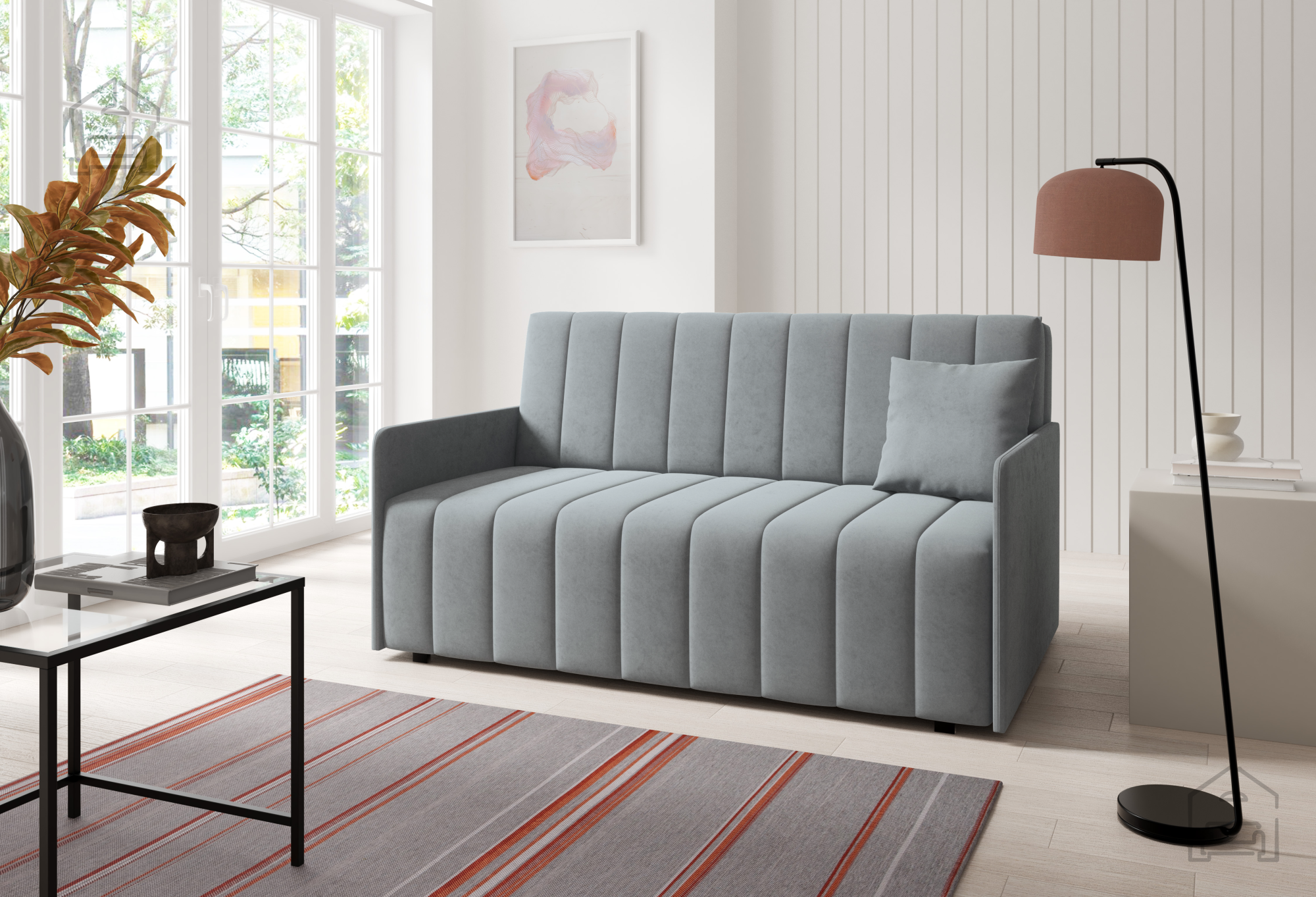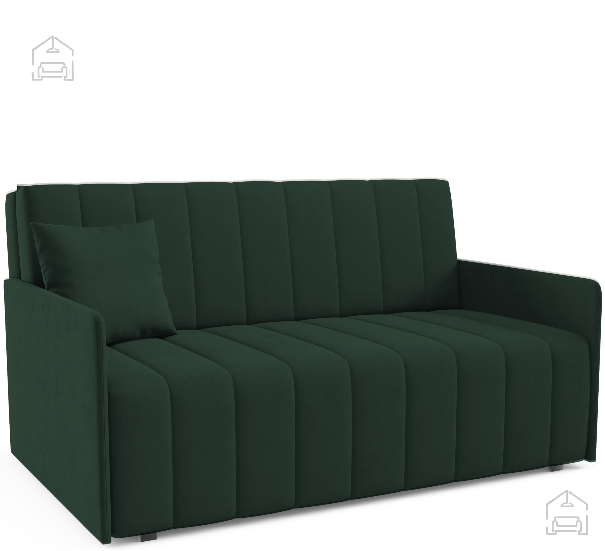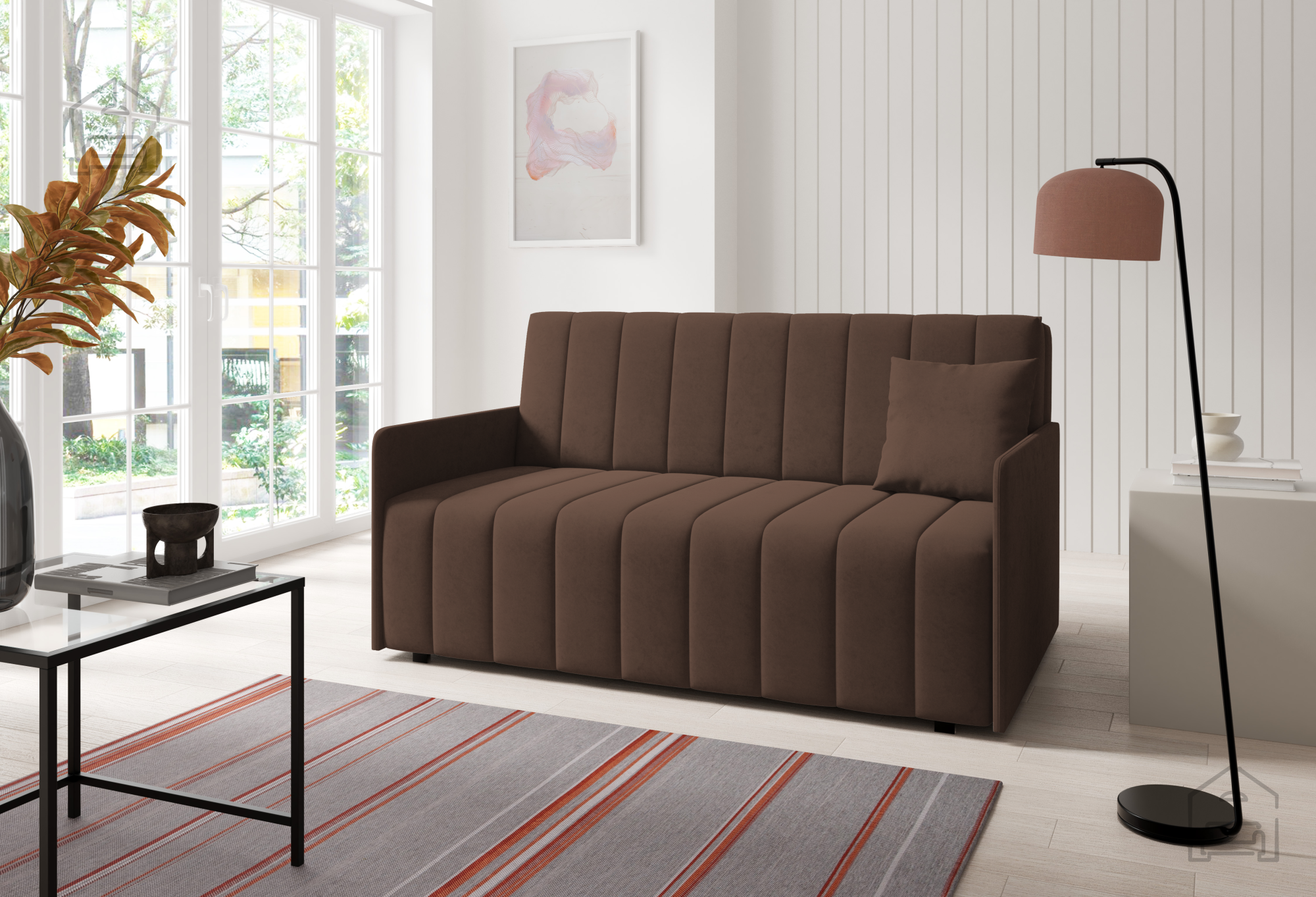 Izdelek je izdelan v tovarni Sedežne garniture PKMebel na Poljskem, ki je znana po svoji natančni izdelavi in uporabi preverjenih materialov. Vsak kos pohištva je rezultat dolgoletnih izkušenj in pozornosti do detajlov, kar se odraža tako v videzu kot v funkcionalnosti. Kakovostno izdelan okvir iz lesa, premišljeno zasnovan mehanizem in vzdržljiva tkanina zagotavljajo, da bo dvosed služil vrsto let.