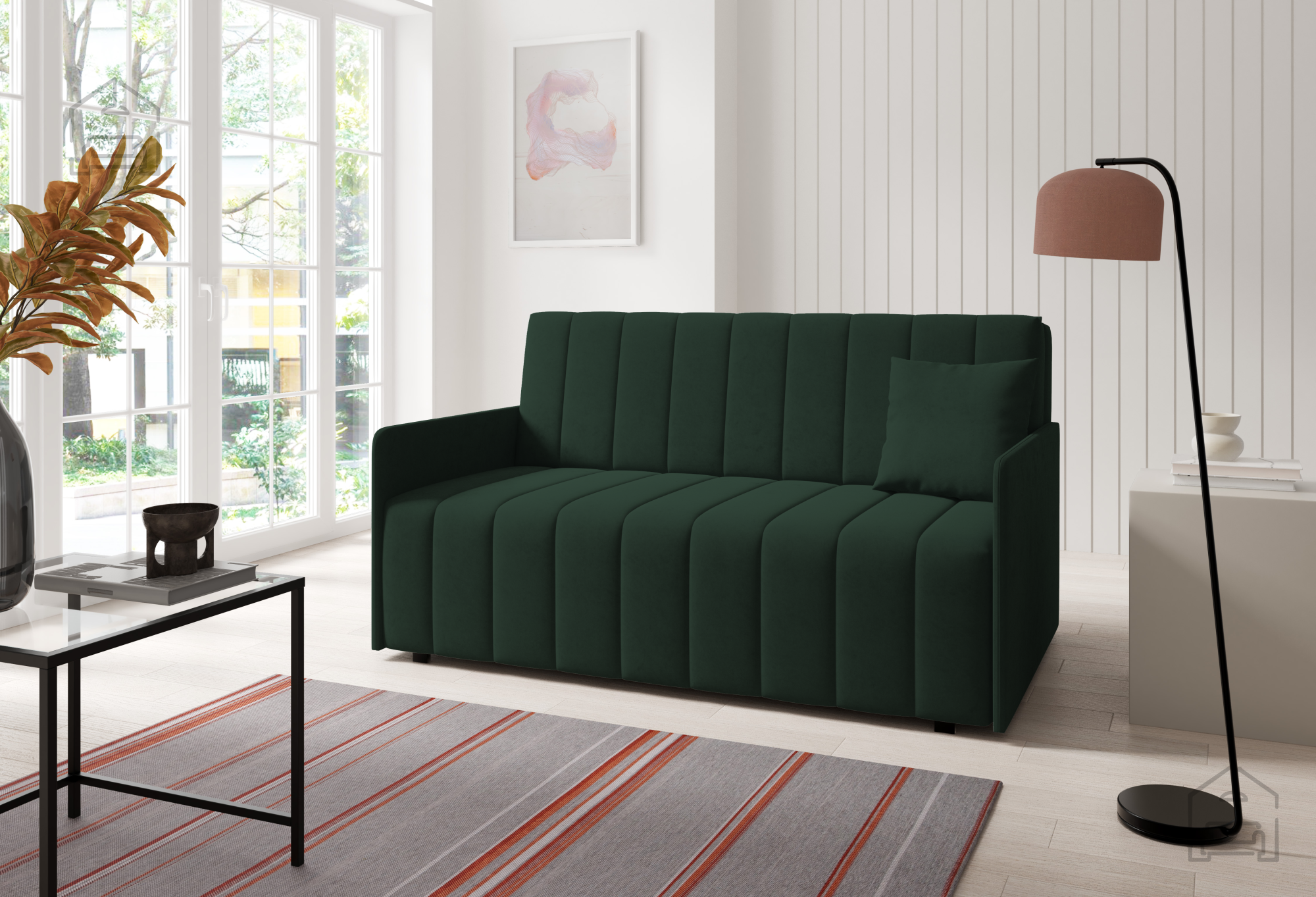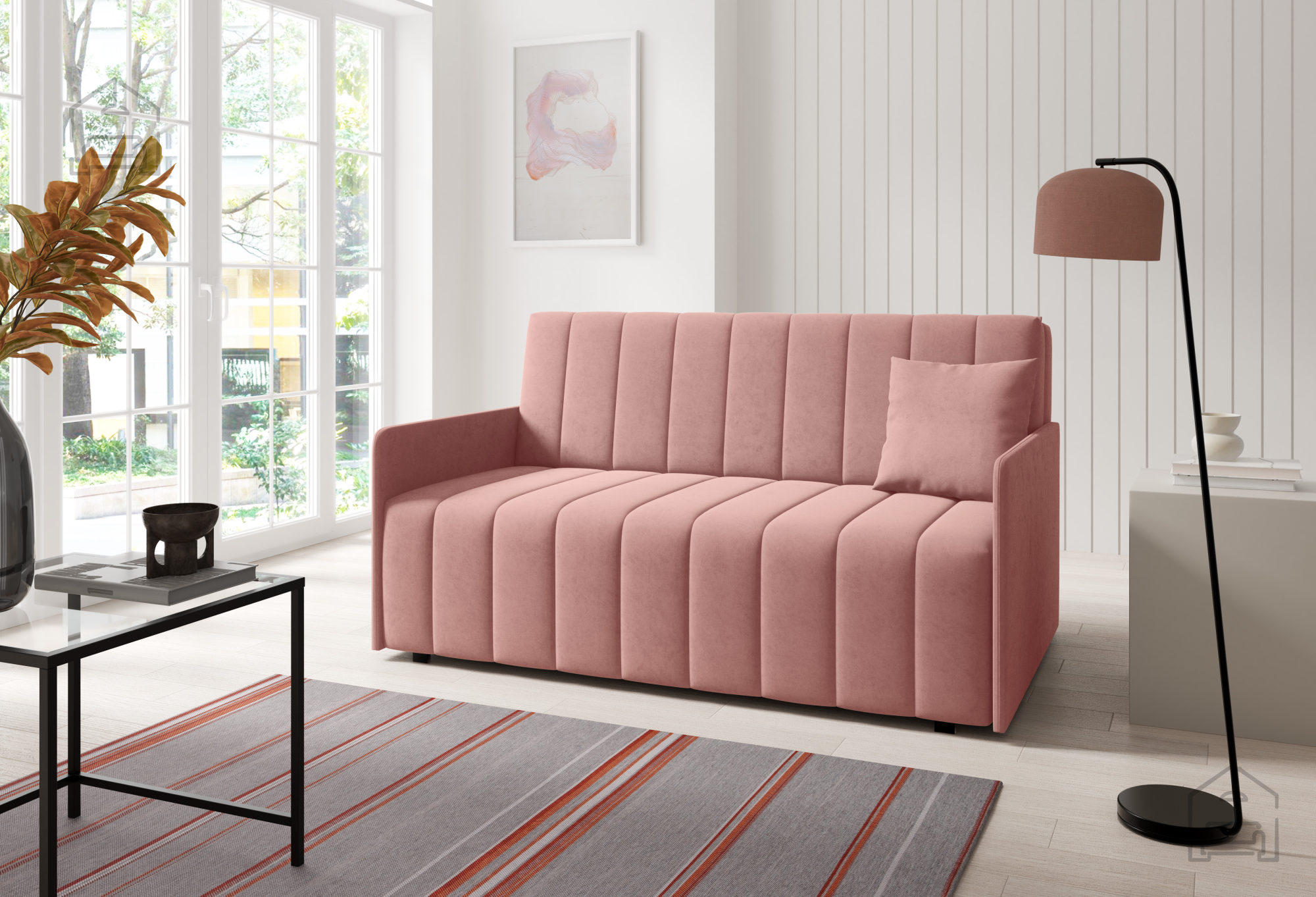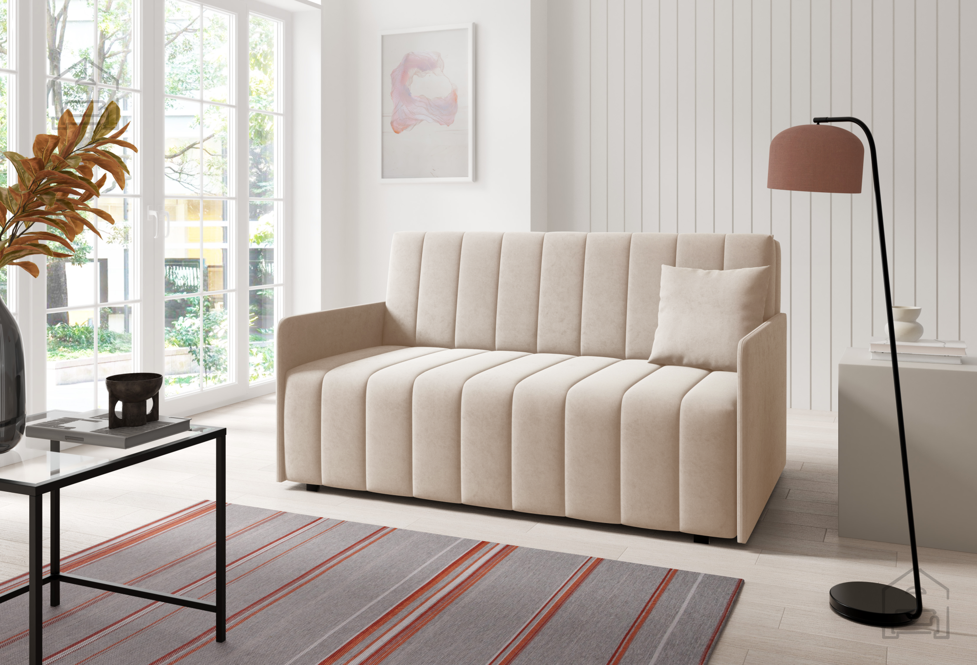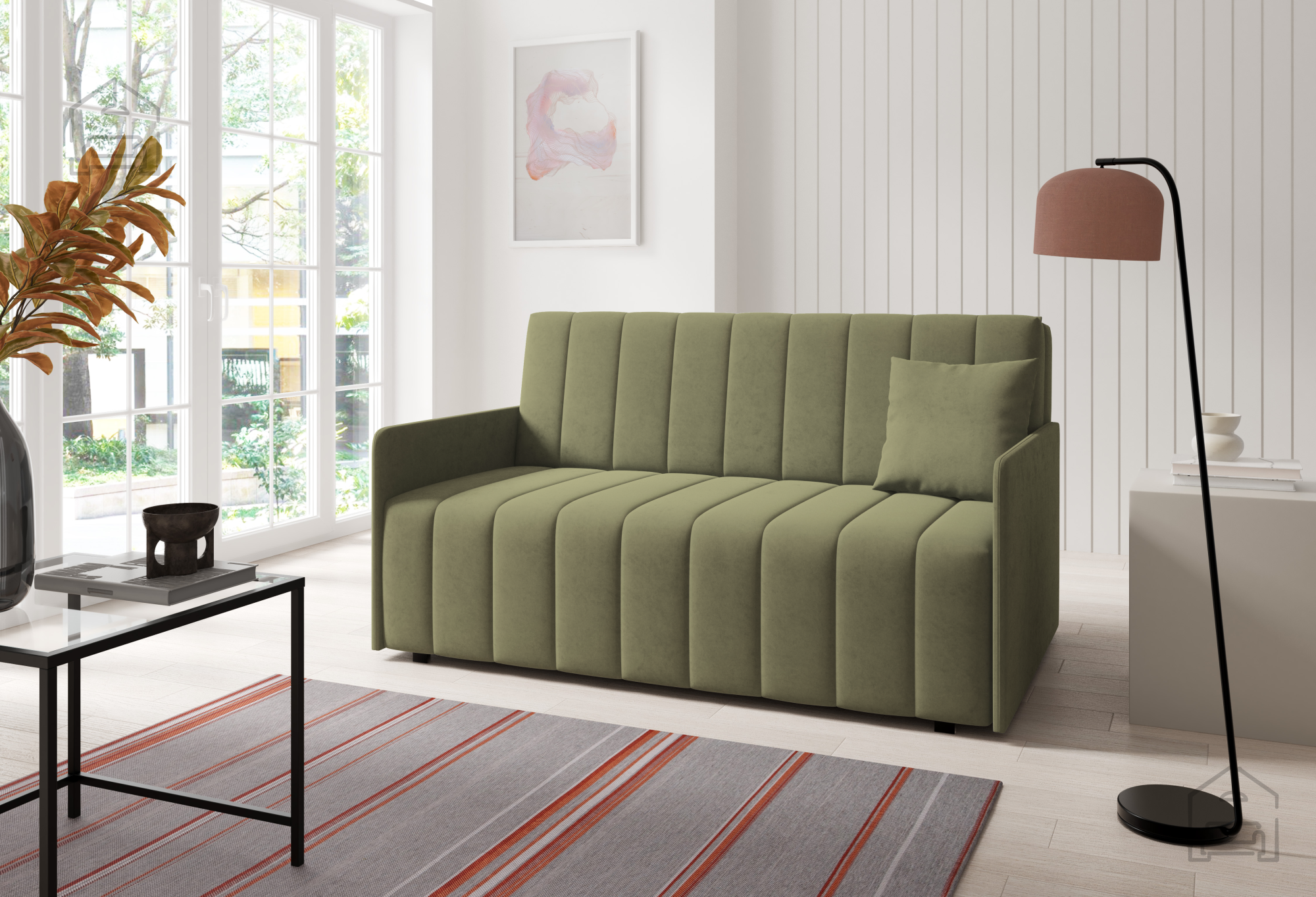 Izdelek je izdelan v tovarni Sedežne garniture PKMebel na Poljskem, ki je znana po svoji natančni izdelavi in uporabi preverjenih materialov. Vsak kos pohištva je rezultat dolgoletnih izkušenj in pozornosti do detajlov, kar se odraža tako v videzu kot v funkcionalnosti. Kakovostno izdelan okvir iz lesa, premišljeno zasnovan mehanizem in vzdržljiva tkanina zagotavljajo, da bo dvosed služil vrsto let.