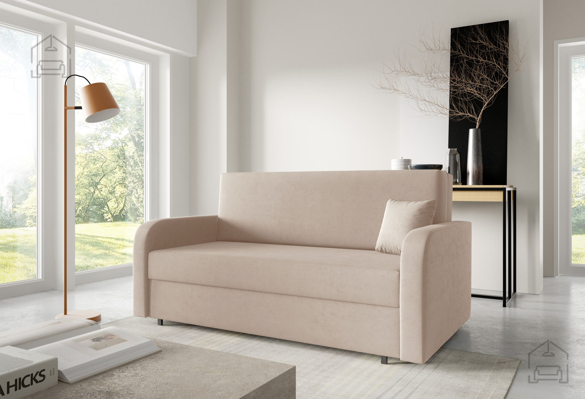 Dvosed Feroni 4 je odličen primer sodobnega pohištva, ki združuje estetiko in uporabnost. Njegove kompaktne mere omogočajo postavitev tudi v manjše prostore, medtem ko elegantne linije in mehka tkanina poskrbijo, da se lepo vključi v vsak interier. Zahvaljujoč teleskopskemu mehanizmu se sedežna enota raztegne brez večjega napora, kar je še posebej priročno pri vsakodnevni uporabi ali kadar gostje ostanejo čez noč.
