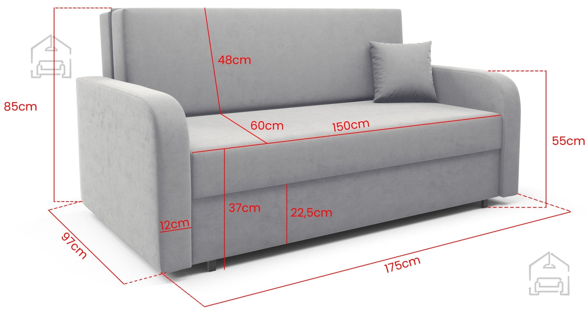 Dvosed Feroni 4 znamke PKMebel je kompaktna, a izjemno funkcionalna rešitev za vsakodnevno udobje in praktičnost. S svojimi dimenzijami 175x97x85 cm ponuja udoben prostor za sedenje, hkrati pa se s pomočjo teleskopskega mehanizma hitro spremeni v prijetno ležišče velikosti 150x196 cm. Ta kombinacija udobja in uporabnosti je idealna za manjše dnevne sobe, otroške sobe ali garsonjere, kjer je vsak kvadratni meter dragocen.