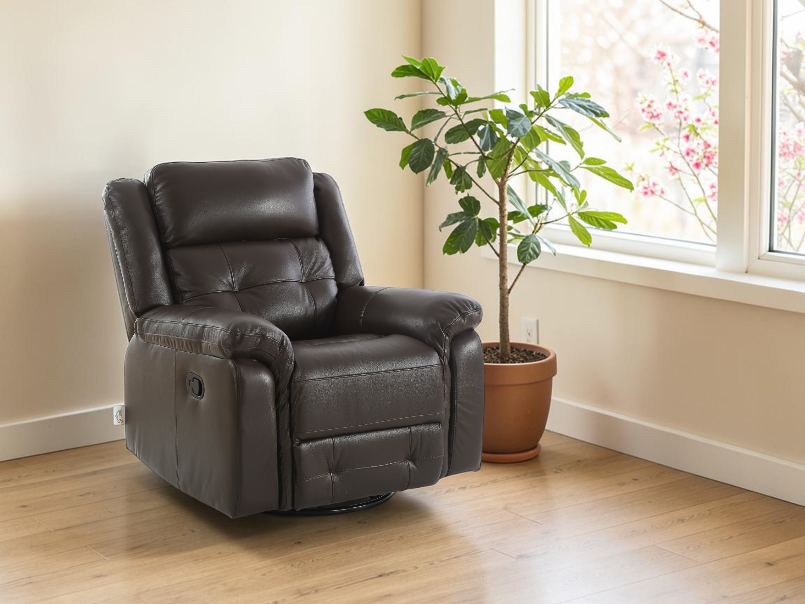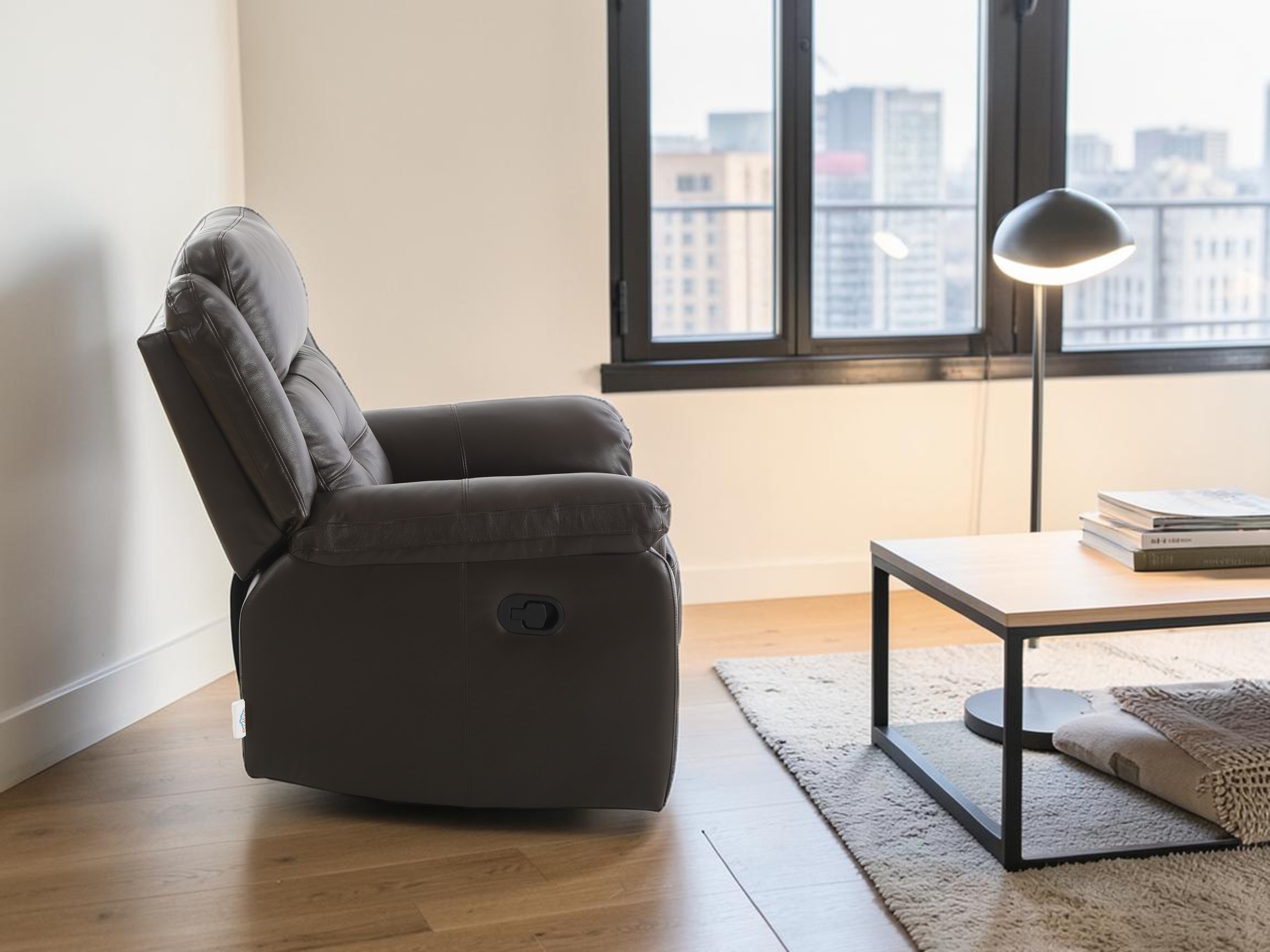Usnjen počivalnik z relaks mehanizmom Trevi Lounge – Soffina združuje kakovostne materiale, premišljeno ergonomsko oblikovanje in brezčasno estetiko. Izdelan je iz pravega usnja na delovnih površinah ter umetnega usnja na nedeljnih delih, kar zagotavlja prijeten občutek ob stiku s kožo in hkrati omogoča enostavno vzdrževanje. S svojimi dimenzijami 99x96x101,5 cm (raztegnjeno do 165 cm dolžine) ponuja optimalno razmerje med udobjem, eleganco in prostorsko učinkovitostjo. Počivalnik je izdelan v tovarni Soffina na Kitajskem, kjer se združujejo sodobne proizvodne tehnologije in preverjena kakovost.
