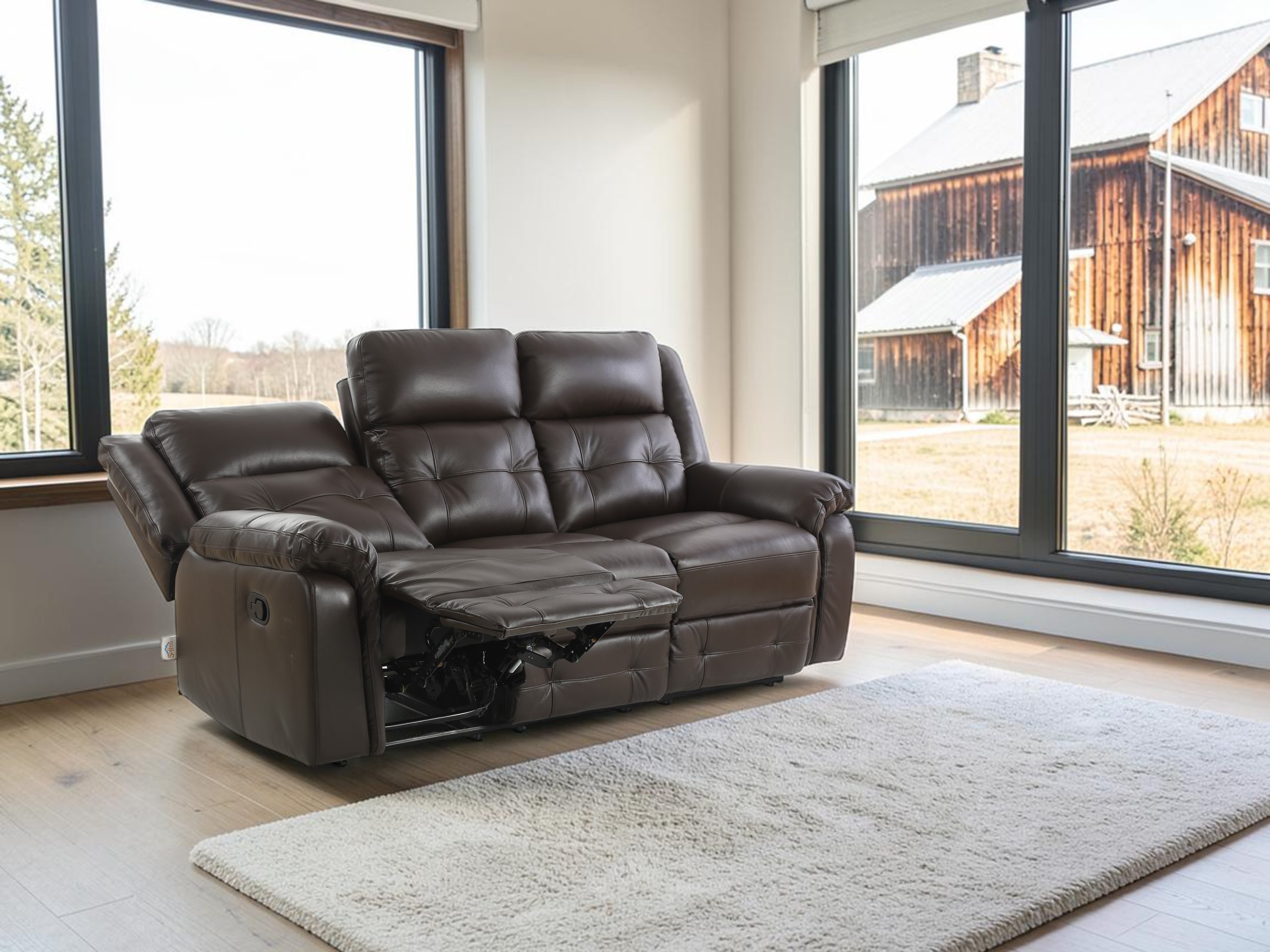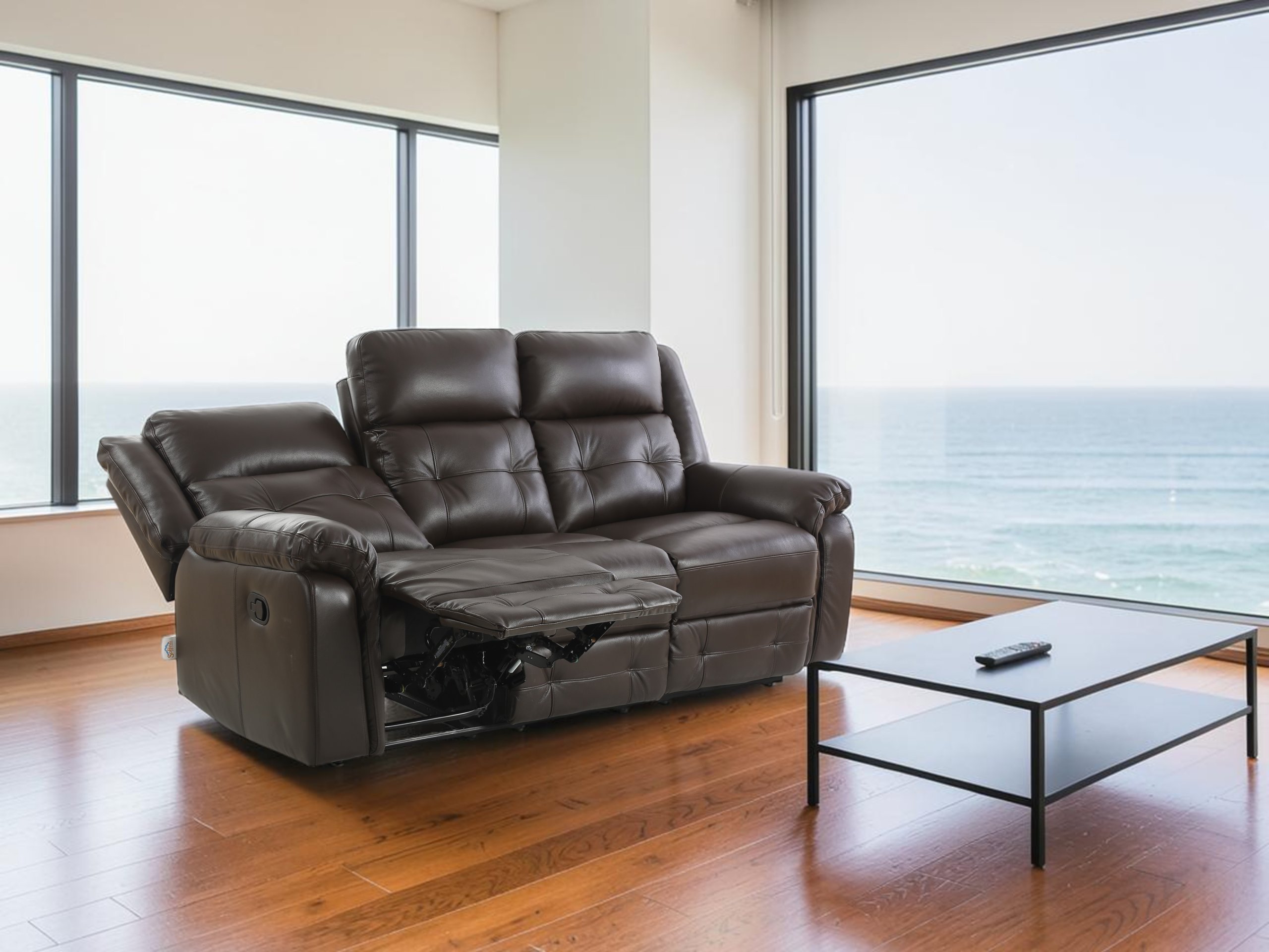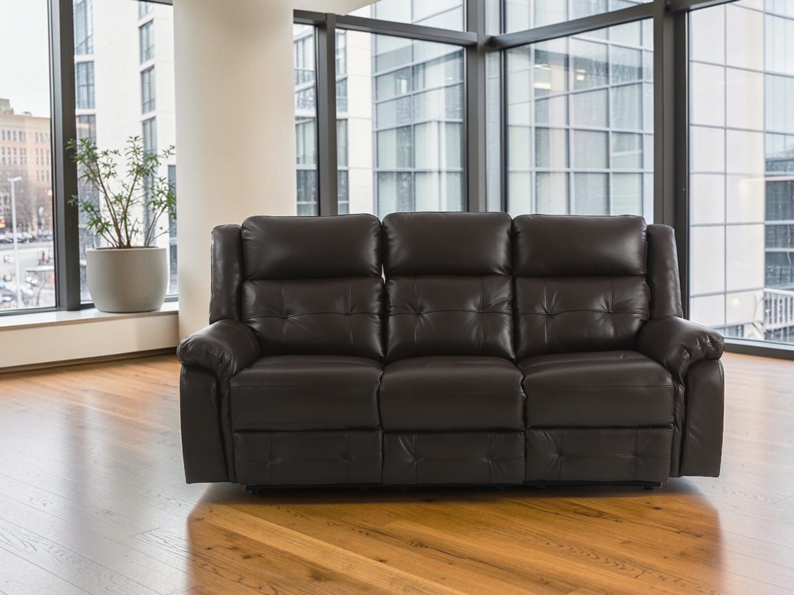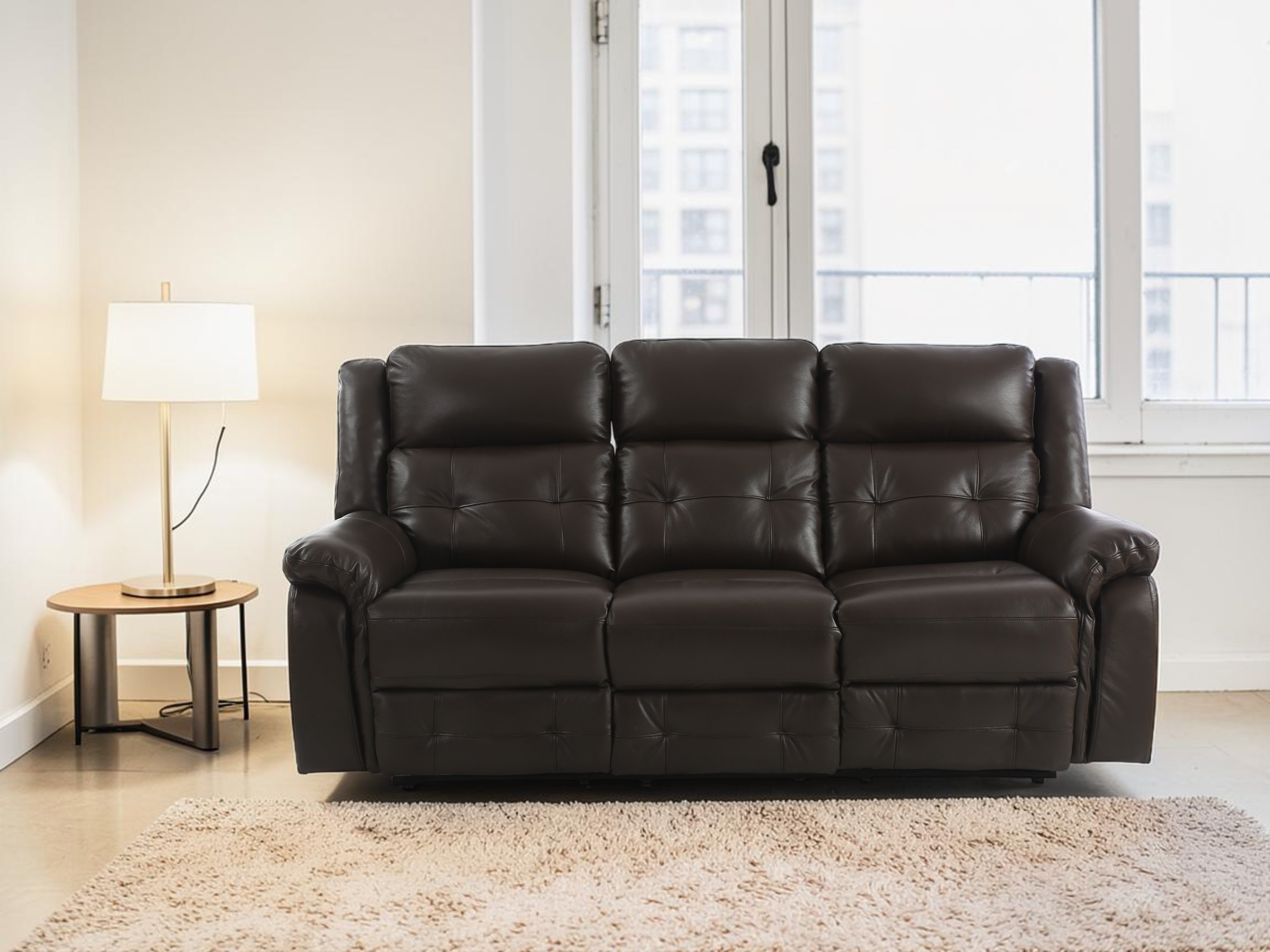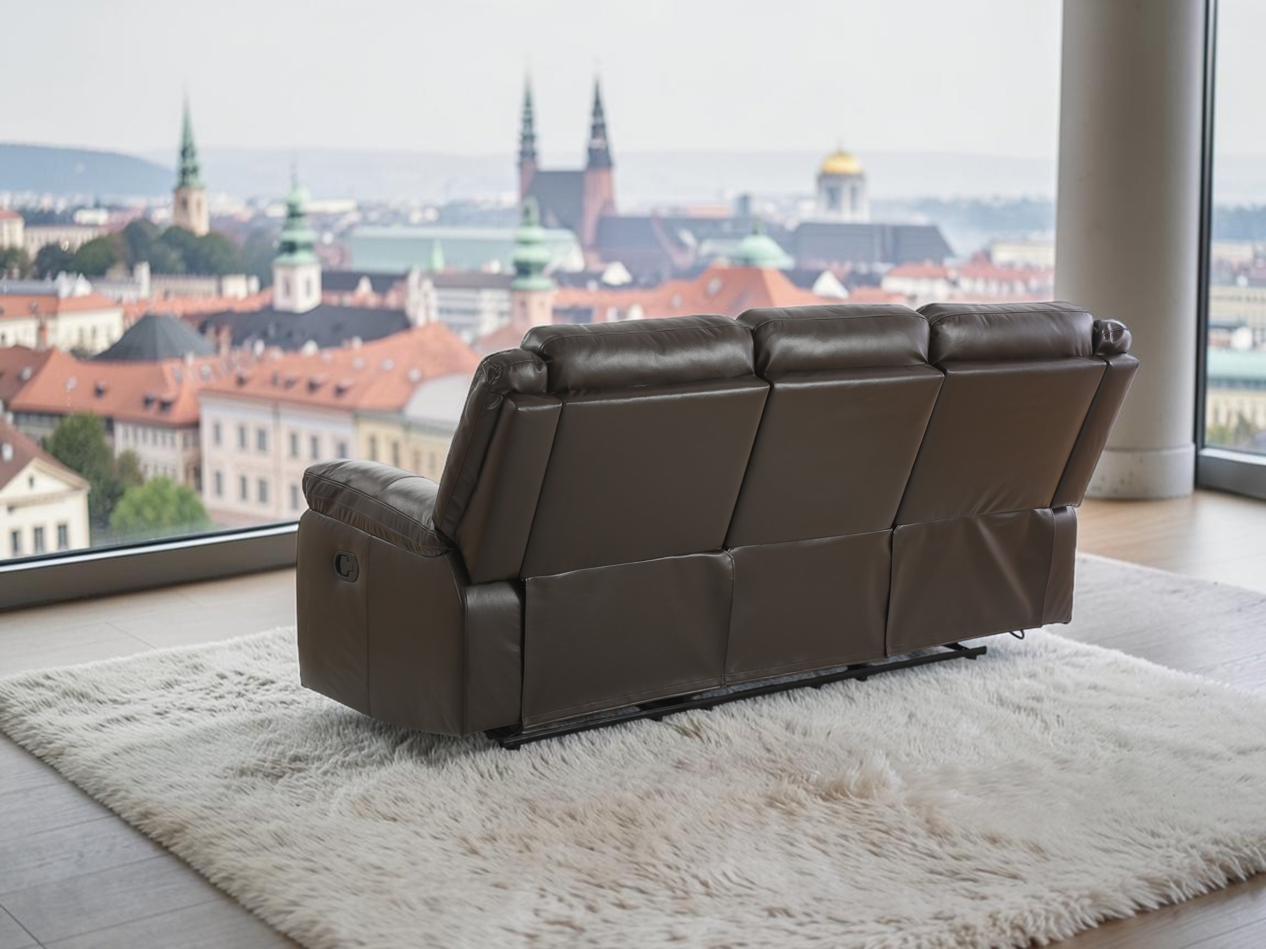 Rjava barva in minimalistična zasnova sledita načelom funkcionalizma, kjer je poudarek na uporabnosti in enostavnosti. Trosed se odlično ujema z različnimi notranjimi slogi – od klasičnih do sodobnih – in se lepo dopolnjuje z lesenimi ali kovinskimi dodatki. Njegove čiste linije in diskretni šivi ustvarjajo uravnotežen videz, ki prostoru dodaja toplino in prefinjenost.