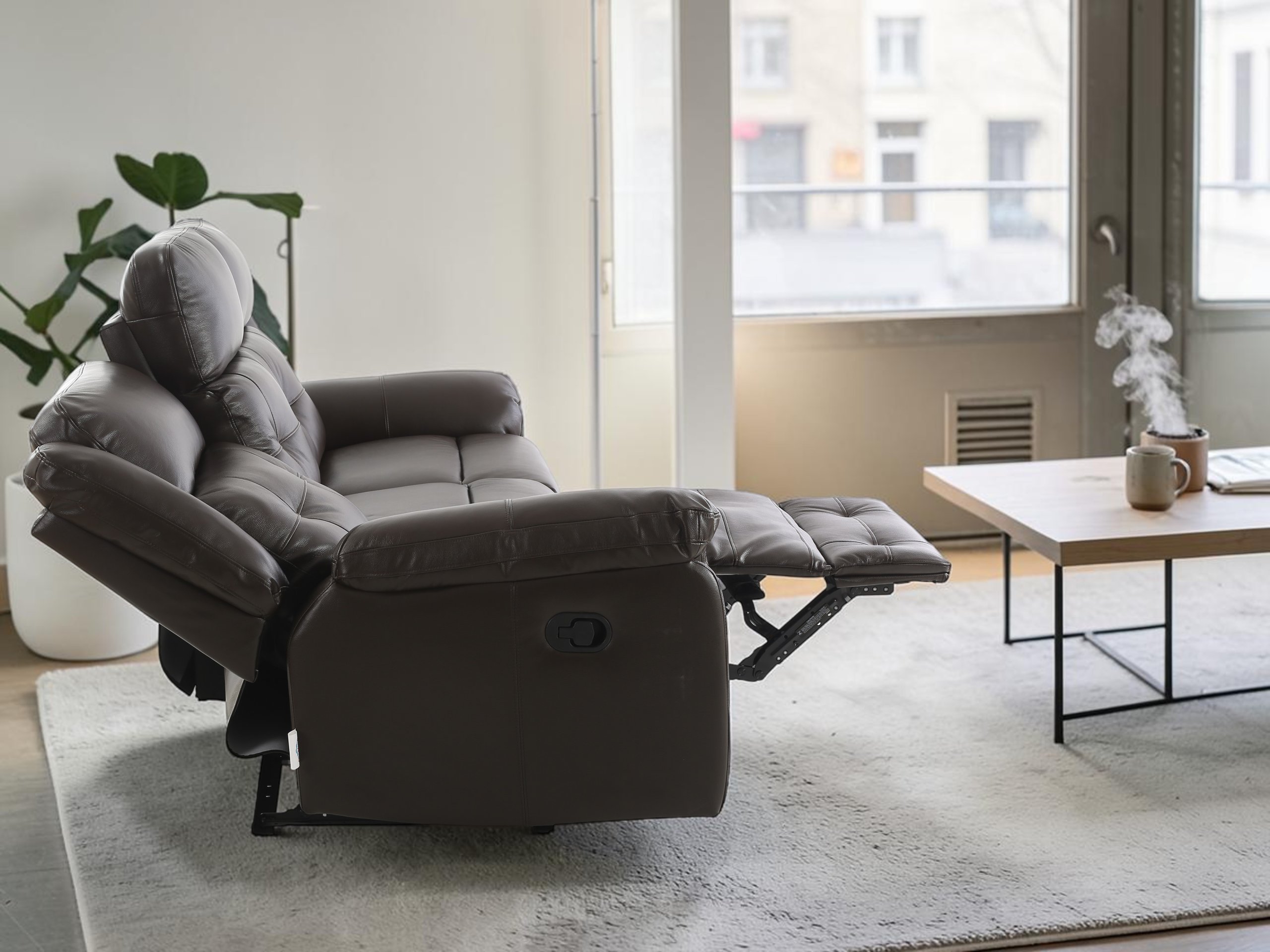 Pravo usnje in kovinski okvir: Usnjen trosed z relax mehanizmom Trevi lounge – Soffina.
