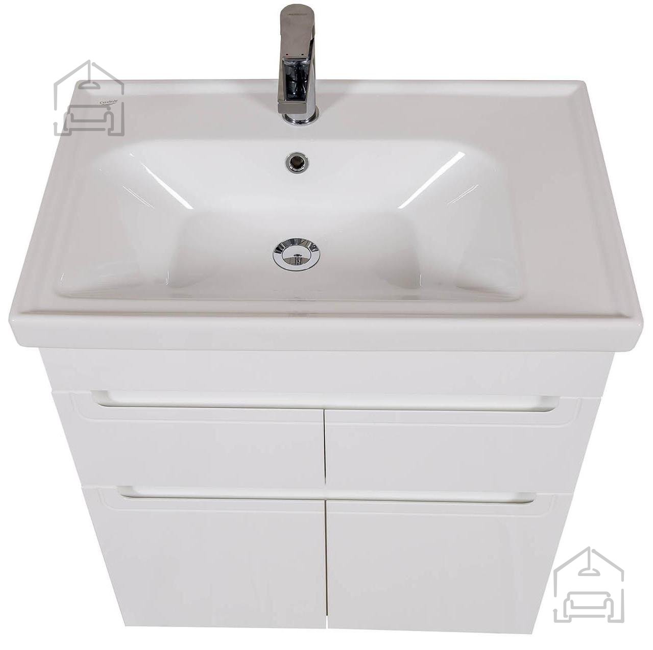 Izdelek je izdelan iz vrhunskih materialov, ki zagotavljajo odpornost in dolgoletno obstojnost. Keramični umivalnik je enostaven za čiščenje, odporen na praske in ohranja brezhibno belino skozi čas. Omarica je narejena iz MDF in iverne plošče debeline 16 mm, kar poskrbi za stabilnost konstrukcije in estetski videz. Površina je premazana z visokokakovostno barvo znanega italijanskega proizvajalca ICA, ki ščiti les pred vlago ter omogoča enostavno vzdrževanje.