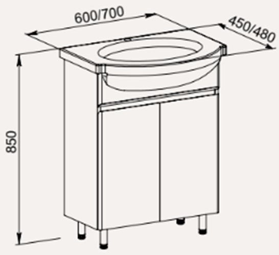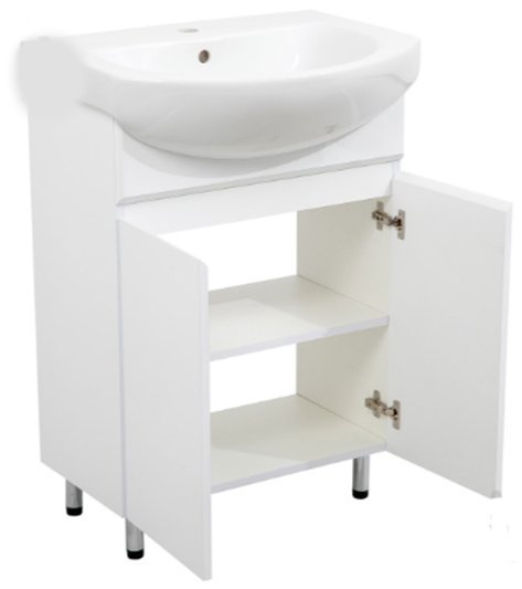 Posebnost tega modela je v tem, da združuje estetiko s funkcionalnostjo – prostoren umivalnik iz keramike se popolno prilega omarici, nogice pa so že vključene v komplet, kar olajša postavitev in prilagoditev višine. Zasnova omogoča, da imate vse potrebščine vedno na dosegu roke, ne da bi pri tem žrtvovali urejen videz kopalnice.