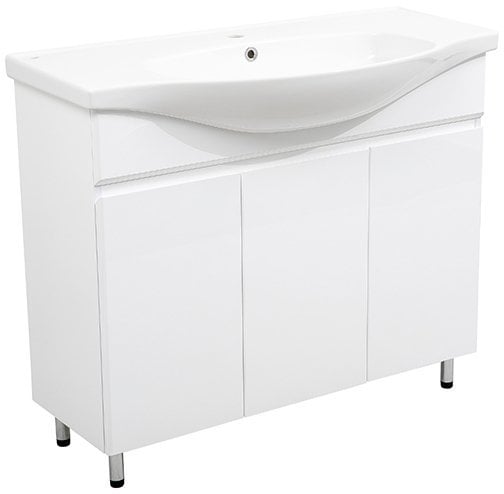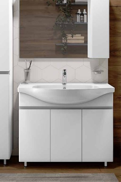 Bela barva omarice ustvarja občutek svežine in čistosti, ki se popolnoma ujema z različnimi stili notranje opreme – od minimalističnega do klasičnega. Prostoren keramični umivalnik Lila 100 omogoča udobno vsakodnevno uporabo, hkrati pa s svojo gladko površino olajša čiščenje in preprečuje nabiranje madežev. Talna montaža zagotavlja stabilnost, nogice, ki so priložene kompletu, pa omogočajo enostavno namestitev in prilagajanje višine. To pomeni, da boste izdelek lahko popolnoma prilagodili svojim potrebam in prostoru.