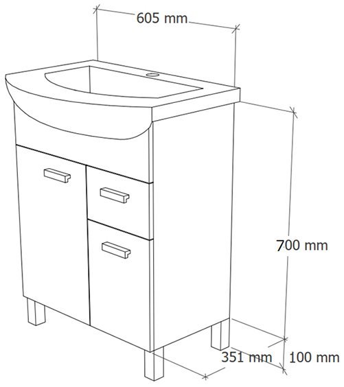 Izdelana je v priznani tovarni Aqua Rodos v Ukrajini, ki slovi po visoki kakovosti in natančni obdelavi. Fasada je narejena iz MDF plošč debeline 16 mm, ki so lakirane s kakovostno površinsko obdelavo EGGER. Stranice in ohišje so iz iverala 16 mm, prav tako lakiranega, kar zagotavlja trpežnost in odpornost na vsakodnevno uporabo. Umivalnik iz fine bele keramike se popolnoma ujema z minimalistično obliko omarice, hkrati pa je enostaven za čiščenje in dolgotrajen. Aluminijasti ročaji in nogice dajejo pohištvu sodoben pridih ter poskrbijo za stabilnost in lahkotno uporabo.