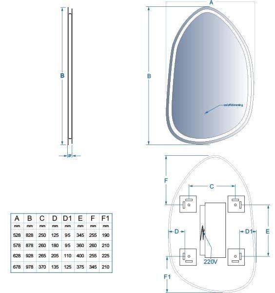 Ogledalo dimenzij 55x85 cm je zasnovano tako, da se odlično prilega tako manjšim kot večjim kopalnicam. Srebrna barva okvirja daje čist, minimalističen in sodoben videz, ki se brez težav ujema z različnimi stili notranje opreme. Posebnost ogledala pa je napredna LED osvetlitev, ki ustvarja prijetno svetlobo v barvnem tonu 4000K – to je naravno bela svetloba, ki je popolna za vsakodnevno nego obraza, ličenje ali britje.