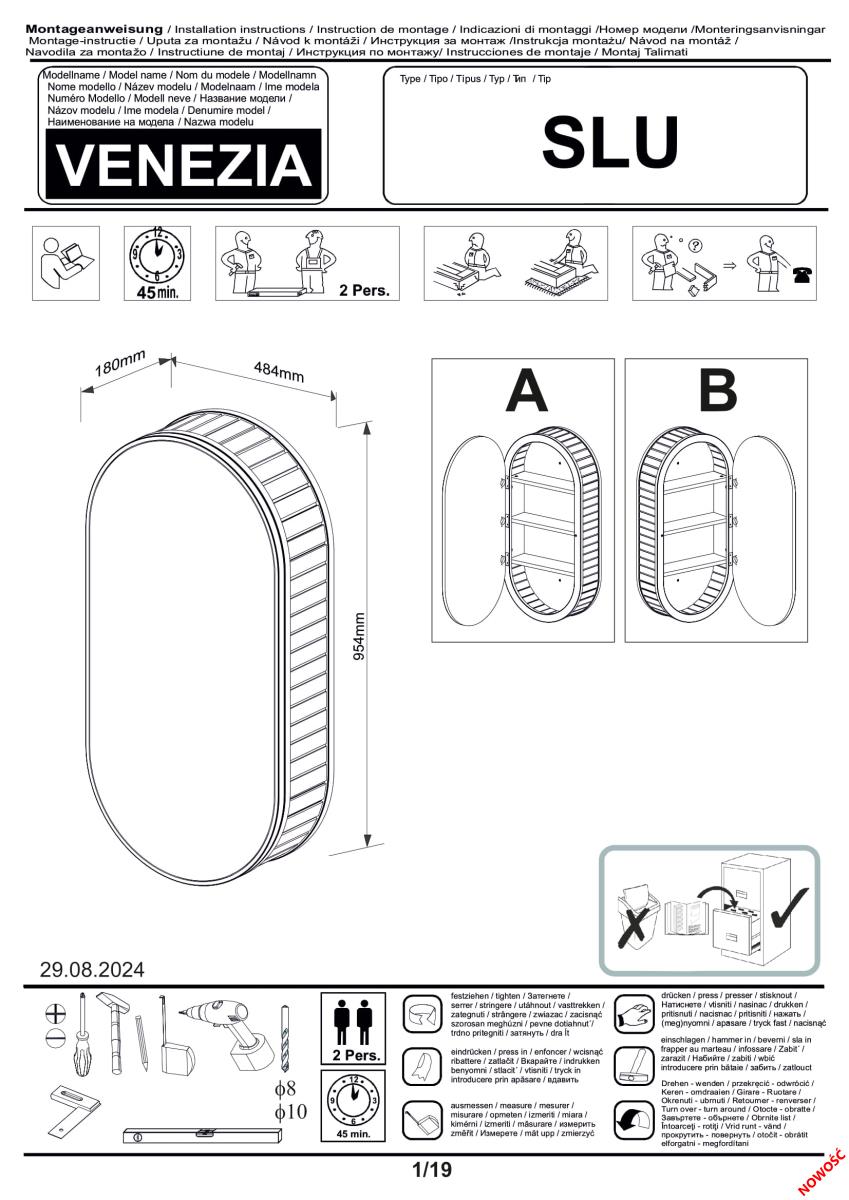 Model Venezia 1D je zasnovan za vsakodnevno uporabo v manjših in večjih kopalnicah. Zahvaljujoč kompaktni globini 19 cm ne ovira gibanja, hkrati pa ponuja presenetljivo veliko prostora za shranjevanje. Odsotnost ročajev in čiste linije omogočajo, da se omarica vizualno zlije s steno, kar ustvarja občutek zračnosti in prostornosti. Zaradi svoje univerzalne zasnove jo je mogoče kombinirati z drugimi elementi iz iste kolekcije Venezia ali z različnim kopalniškim pohištvom drugih linij.