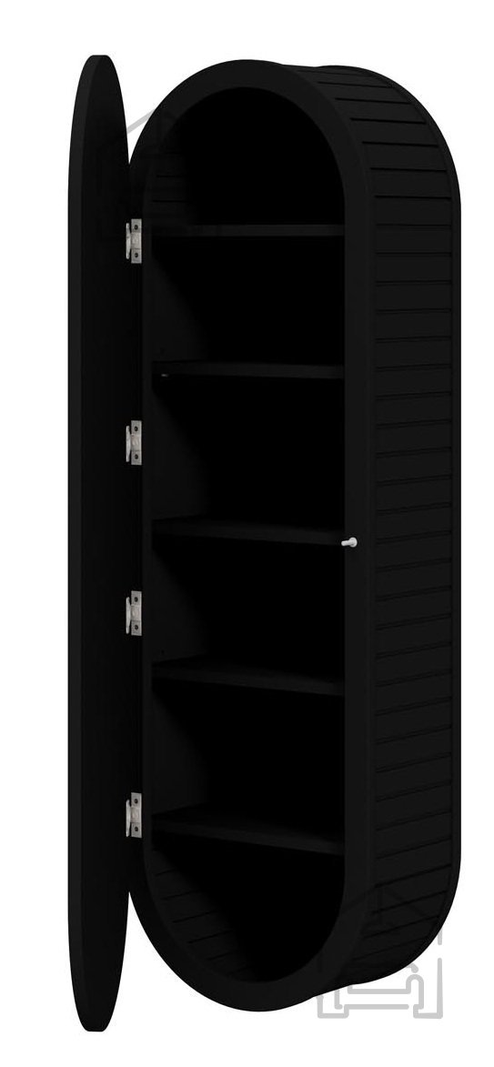 Omara Venezia 1D je zasnovana kot stebriček, kar pomeni, da se navpično prilega prostoru in tako omogoča optimalno izrabo višine prostora. Zaradi ozke globine 25 cm ne zavzame veliko prostora, a kljub temu nudi dovolj notranje prostornine za shranjevanje brisač, kozmetike ali čistilnih pripomočkov. Vrata omare so opremljena z naprednim soft close mehanizmom, ki omogoča tiho zapiranje brez trkov, ter push to open sistemom, ki olajša odpiranje brez ročajev – preprosto s pritiskom na površino vrat. Tako omara ohranja čist, brezčasno eleganten videz brez vidnih ročajev ali nepotrebnih okraskov.