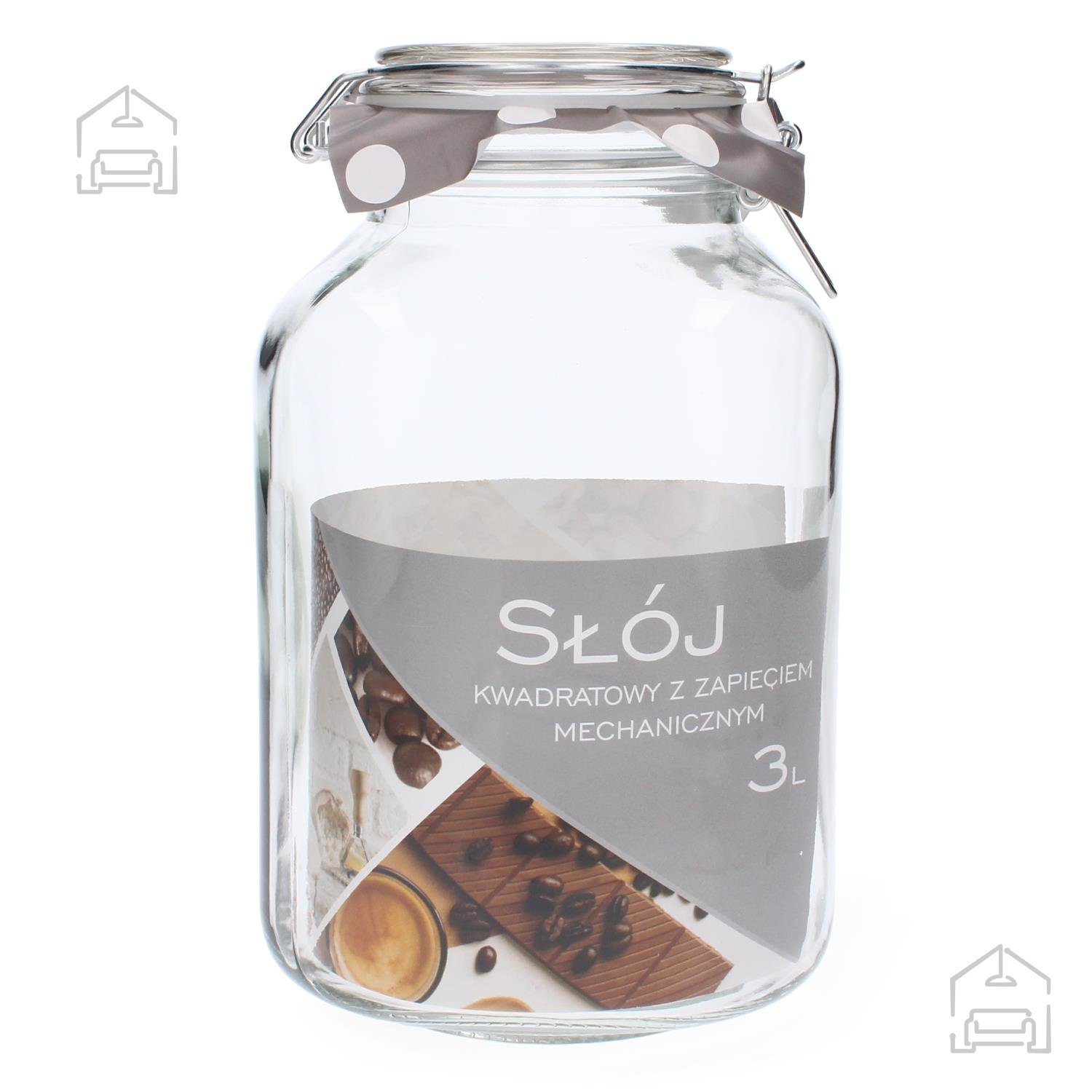 Kozarec s prostornino 3 l v kvadratni obliki, opremljen z mehanskim zapiranjem, je idealna rešitev za shranjevanje medu, marmelad, začimb in drugih izdelkov.