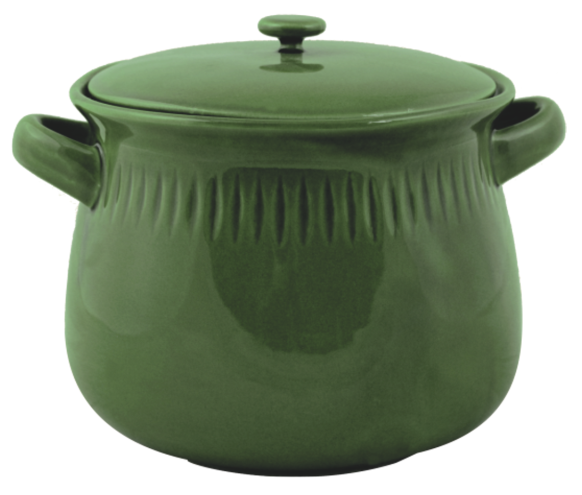 Zelena barva lonca deluje pomirjujoče in simbolizira povezanost z naravo. V kombinaciji s sijočo glazuro tvori prijeten kontrast, ki dopolnjuje tako svetle kot temne kuhinjske pulte. Mehke linije in enostavna, a elegantna oblika omogočata, da lonec ni le uporabni predmet, temveč tudi dekorativen kos, ki ga lahko pustite na odprti polici ali kuhinjskem pultu kot del celostne podobe prostora.