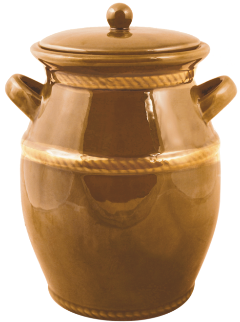 Sod 4L lončena medena je izdelan iz kakovostne keramike, ki je znana po svoji trpežnosti, nevtralnosti do živil in sposobnosti ohranjanja stabilne temperature vsebine. Lončeni izdelki so že stoletja nepogrešljiv del kuhinj in shrambe, saj so odlični za shranjevanje naravnih živil brez tveganja za absorpcijo vonjev ali okusov. Površina s tipično medeno glazuro daje izdelku topel, prijeten videz, ki se lepo poda k lesenim policam, naravnim tkaninam in drugim rustikalnim elementom notranje opreme.